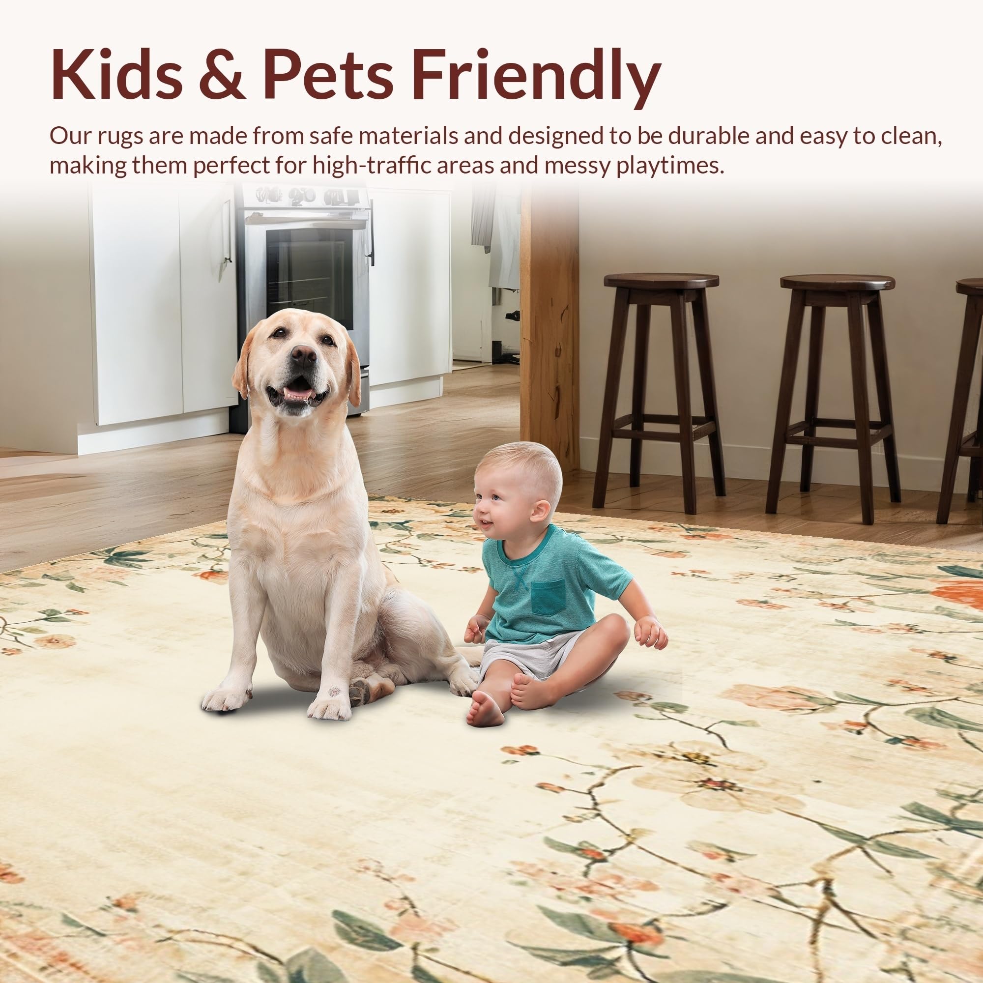 Ultra Soft Area Rug, Non Slip, Stain Resistant, Washable Area Rugs for Living Room, Bedroom, Retro Nostalgic Floral Beige Area Classic Accent(Beige) Overview: