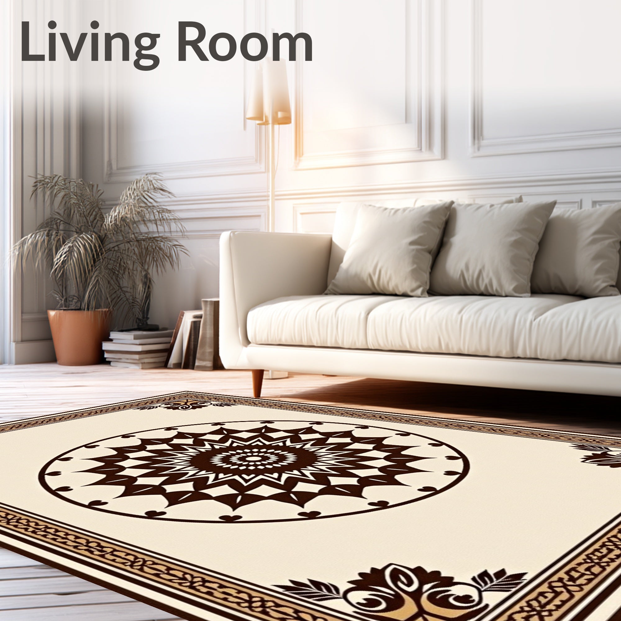 Ultra Soft Area Rug, Non Slip, Stain Resistant, Washable Area Rugs for Living Room, Bedroom, Retro Sunburst Medallion Tapestry(Beige) Overview: