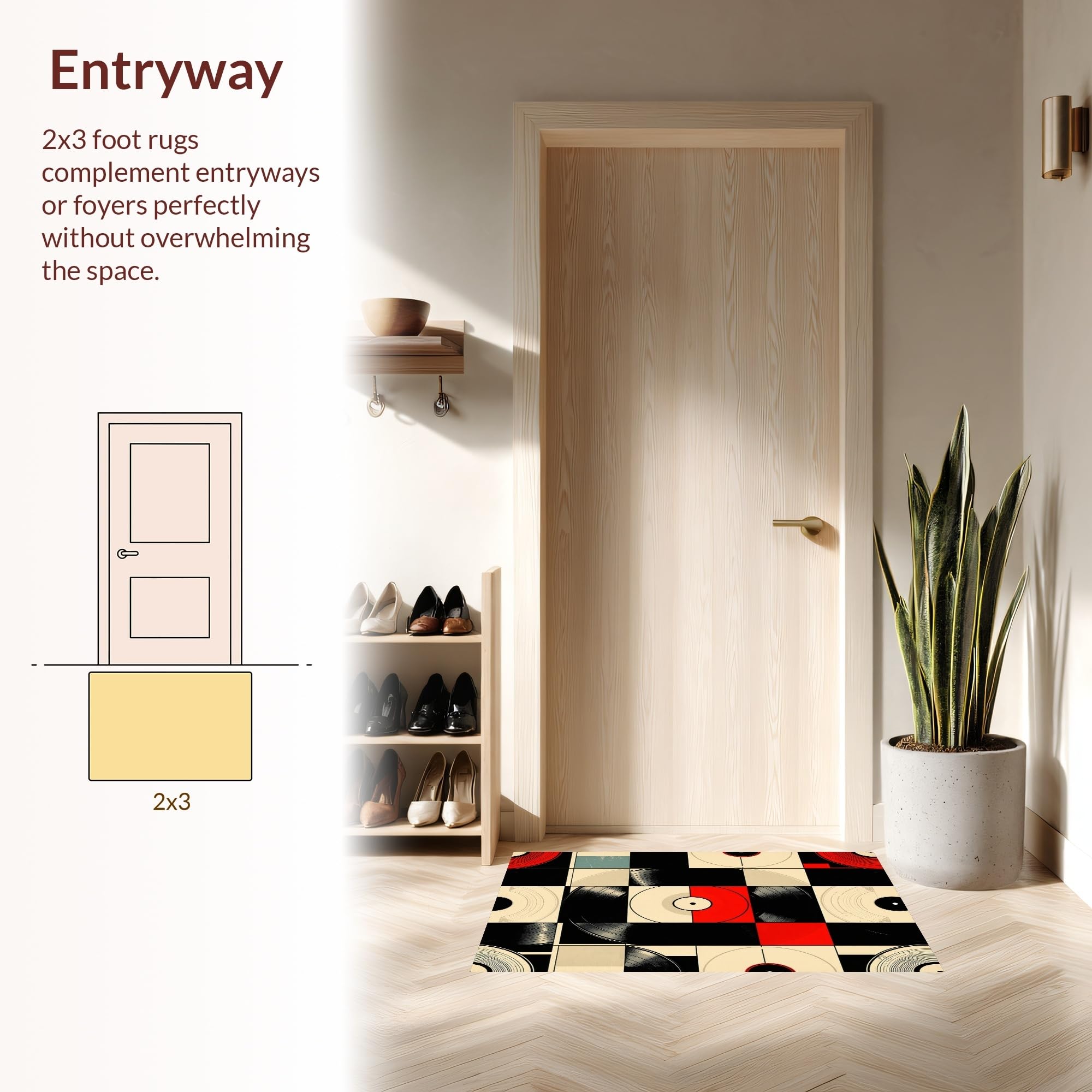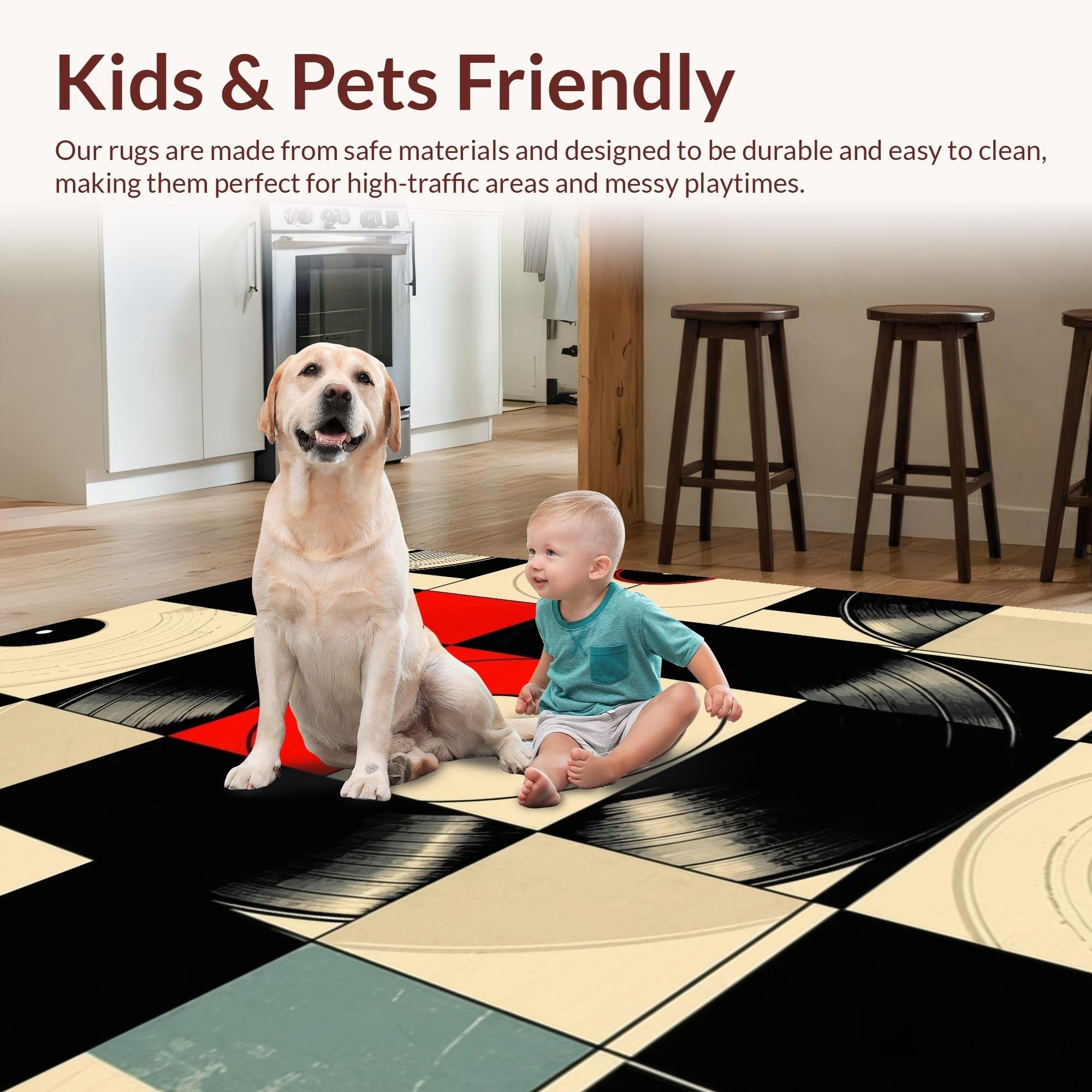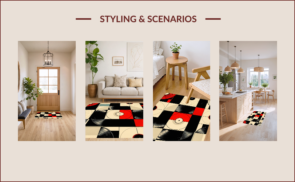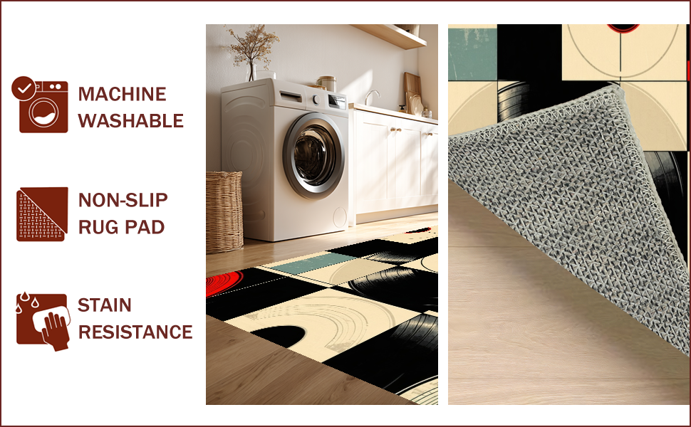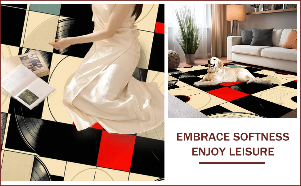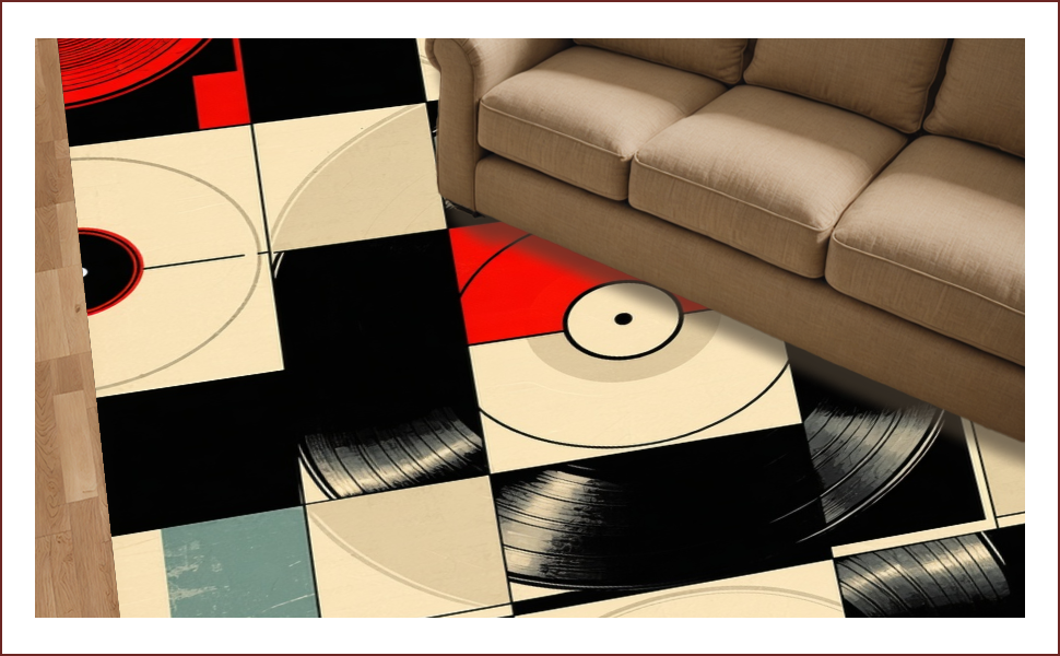 Ultra Soft Area Rug, Non Slip, Stain Resistant, Washable Area Rugs for Living Room, Bedroom, Retro Vinyl Record Artistry(Black) Overview: