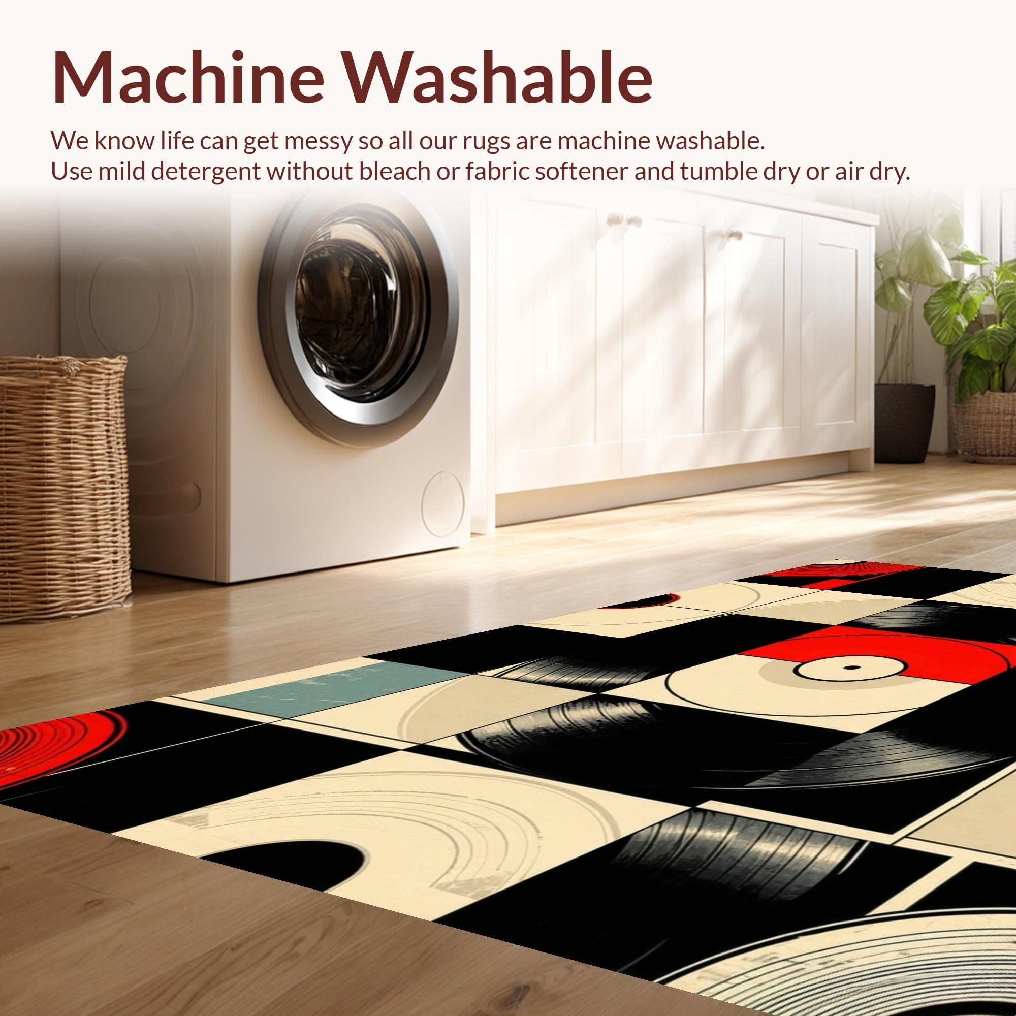 - Machine Washable: Our rugs can be easily thrown in the wash machine.