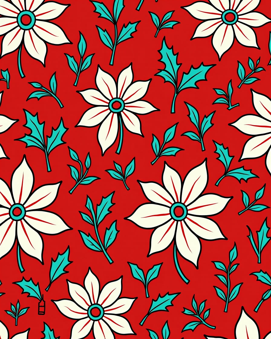 Retro Winter Botanical Tapestry Low Pile(Red)