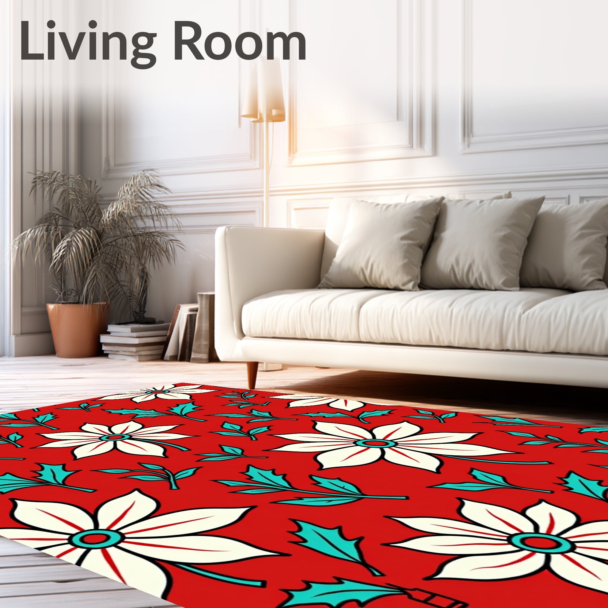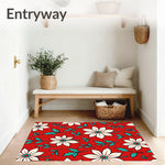 Ultra Soft Area Rug, Non Slip, Stain Resistant, Washable Area Rugs for Living Room, Bedroom, Retro Winter Botanical Tapestry Low Pile(Red) Overview: