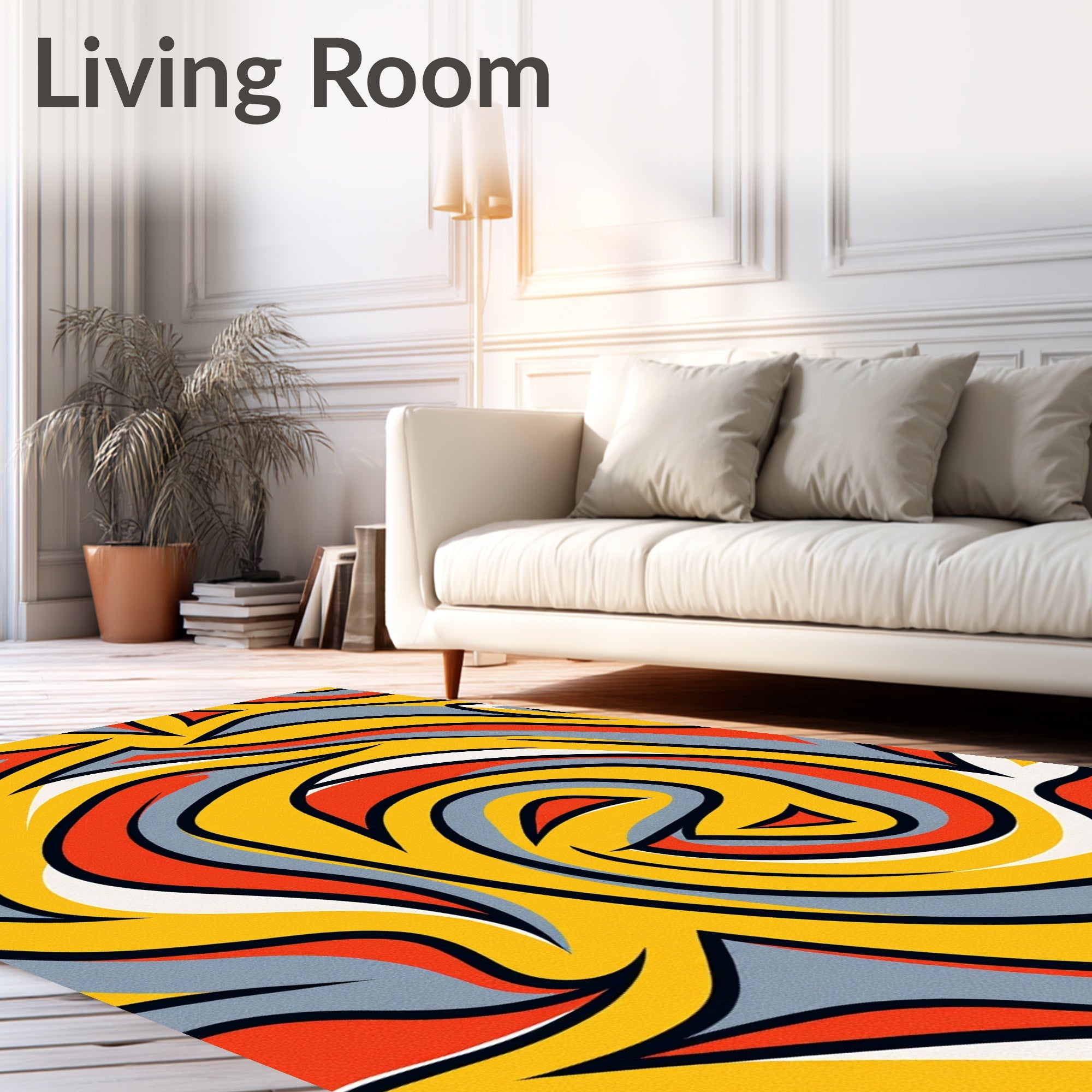 Ultra Soft Area Rug, Non Slip, Stain Resistant, Washable Area Rugs for Living Room, Bedroom, Rhythmic Undulation Expressive Avant garde Decorative(Yellow) Overview: