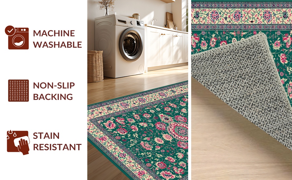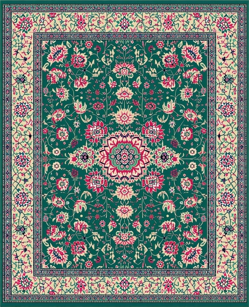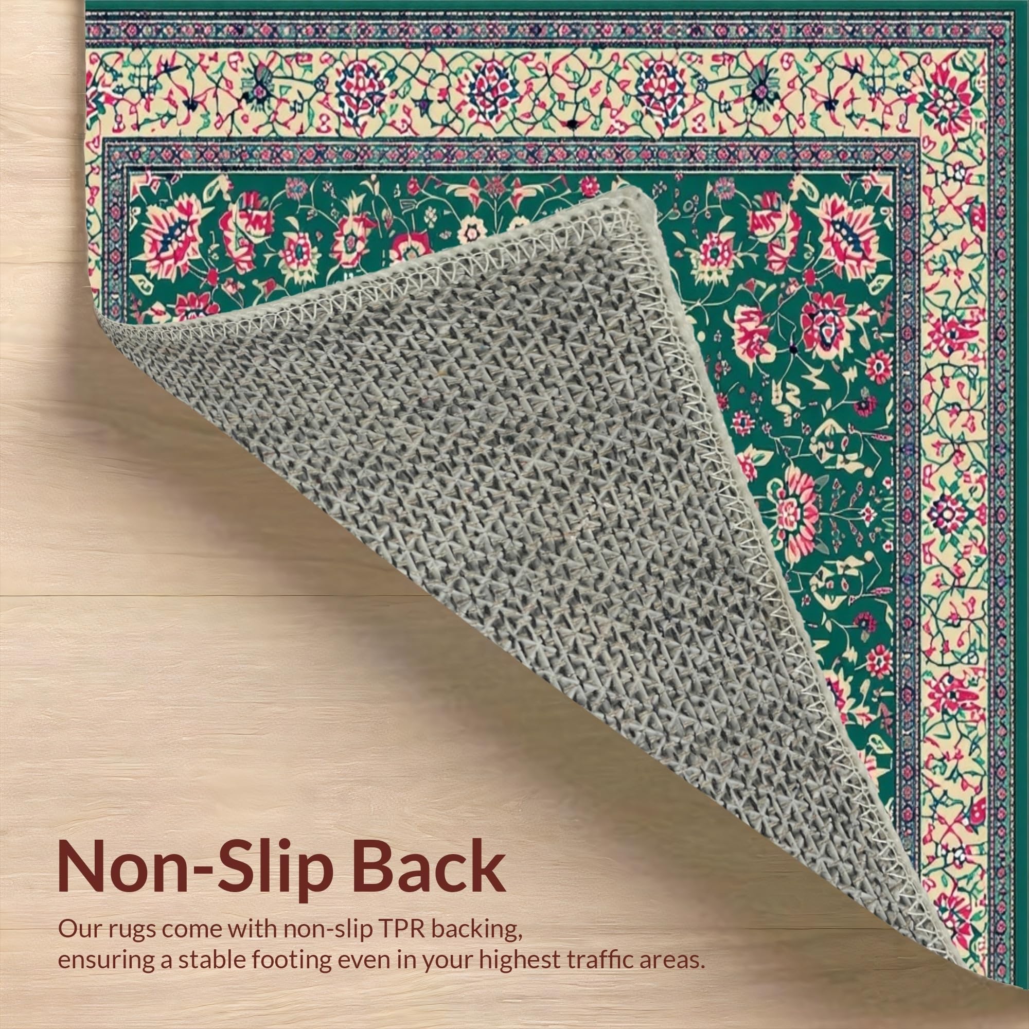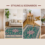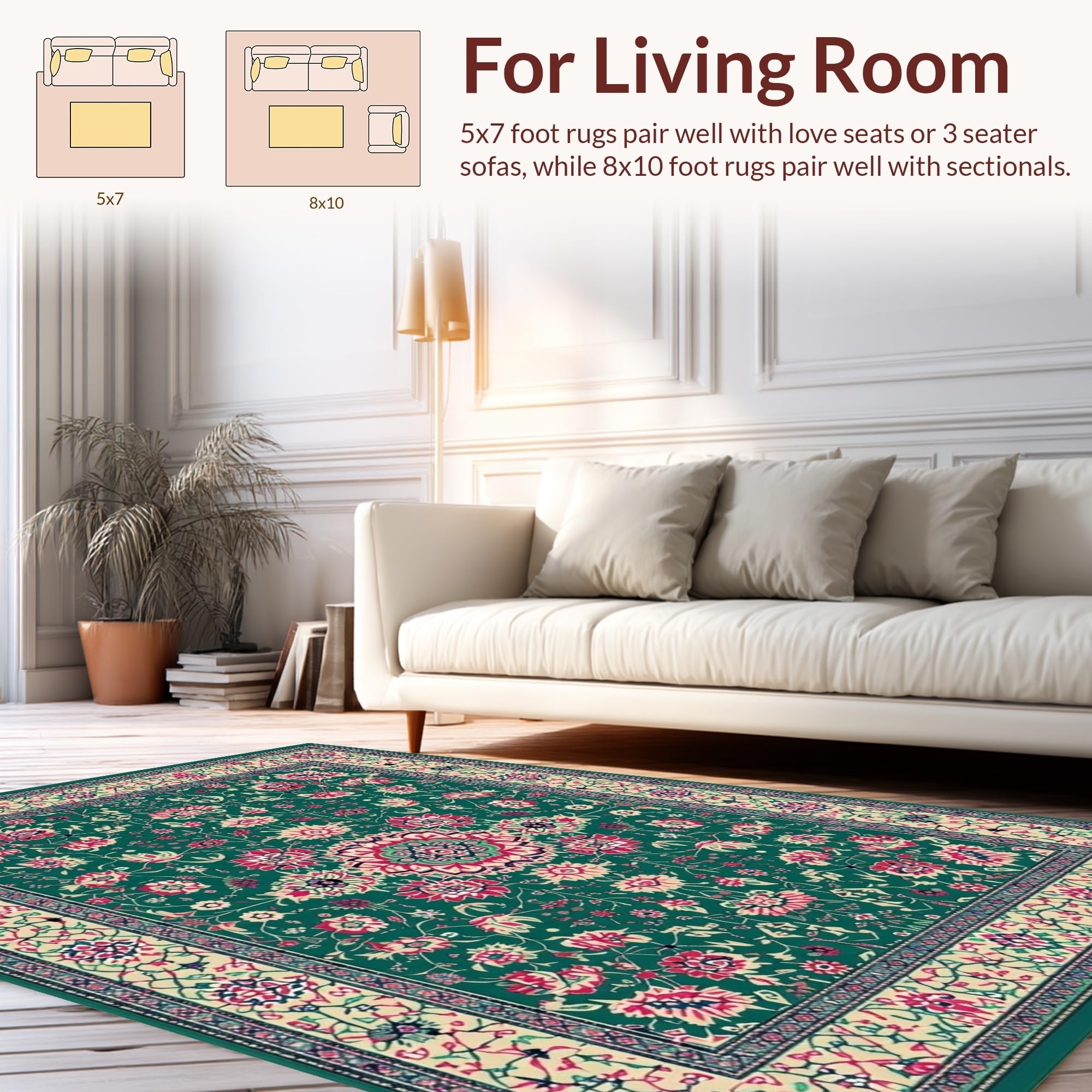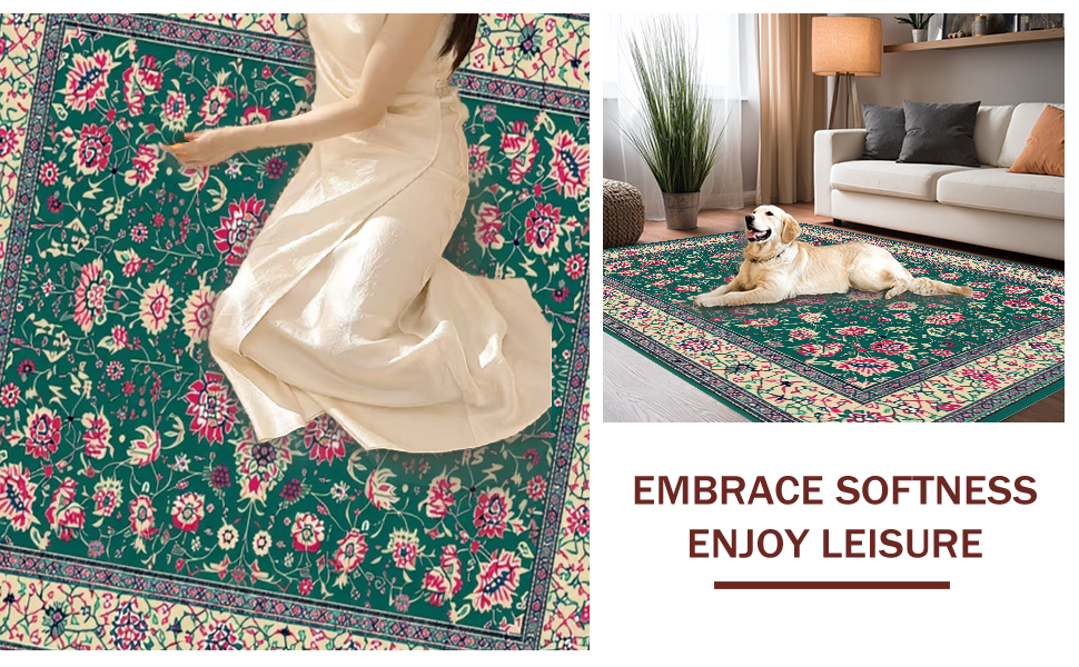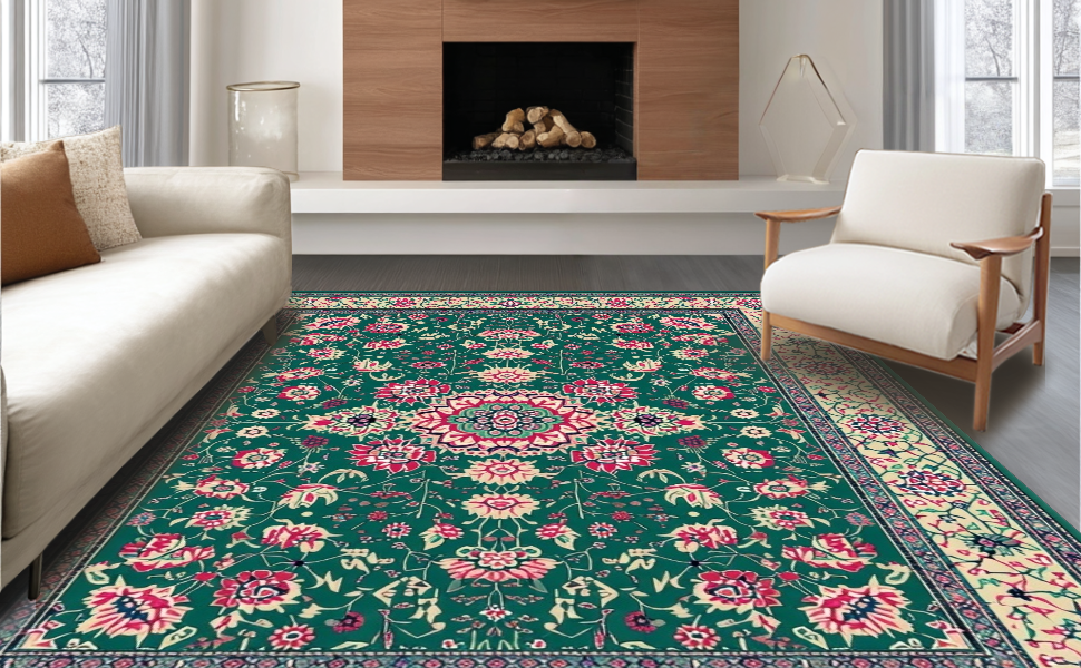 Ultra Soft Area Rug, Non Slip, Stain Resistant, Washable Area Rugs for Living Room, Bedroom, Rich Emerald Rustic Charm Motif(Green) Overview: