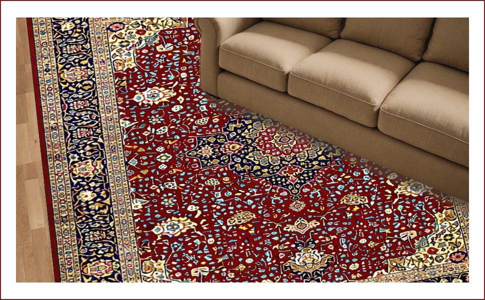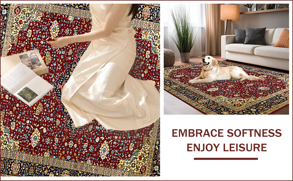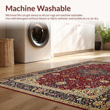Ultra Soft Area Rug, Non Slip, Stain Resistant, Washable Area Rugs for Living Room, Bedroom, Rich Red Vintage Floral Design(Red) Overview: