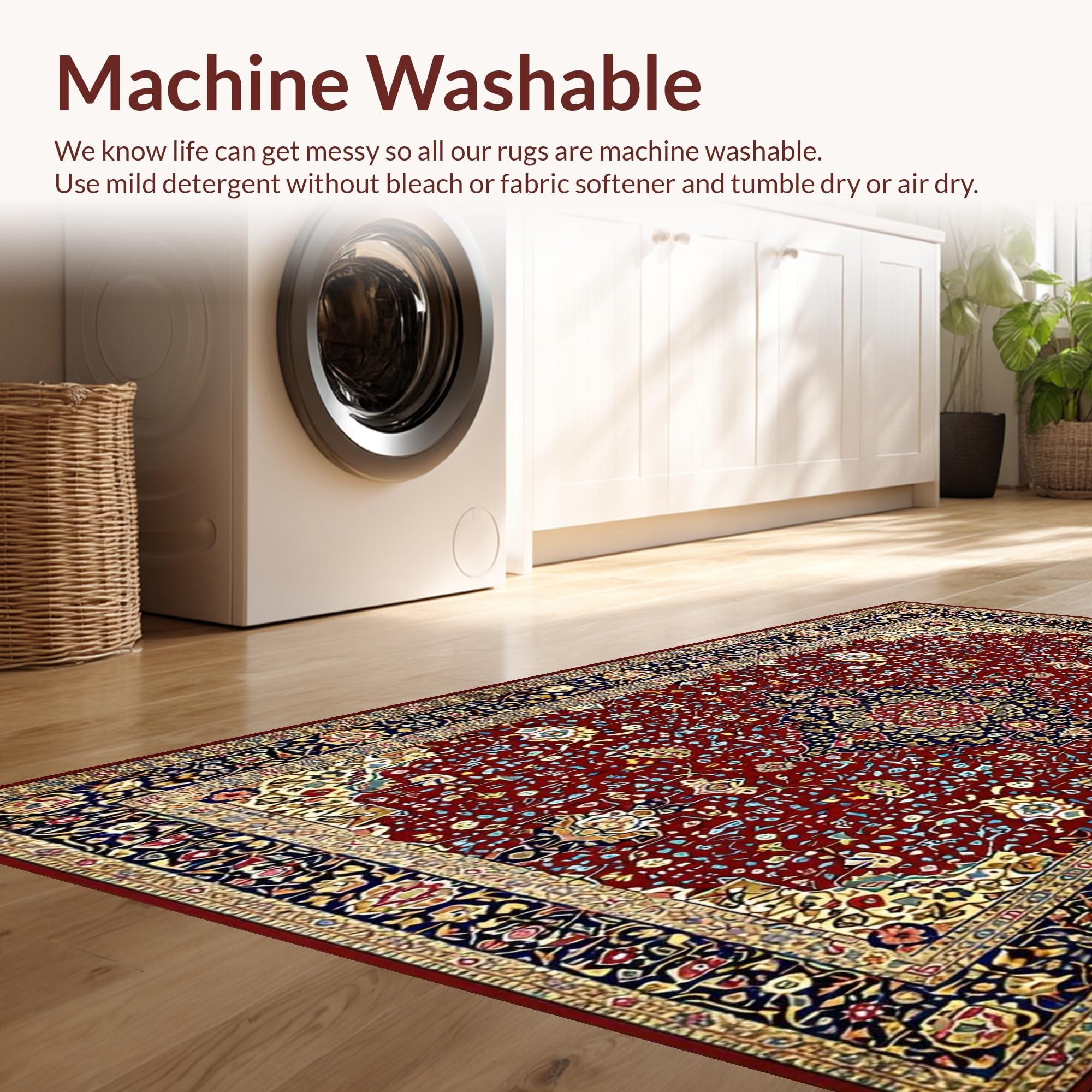 - Machine Washable: Our rugs can be easily thrown in the wash machine.