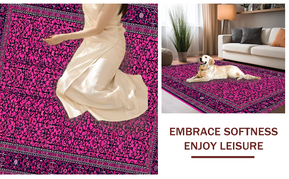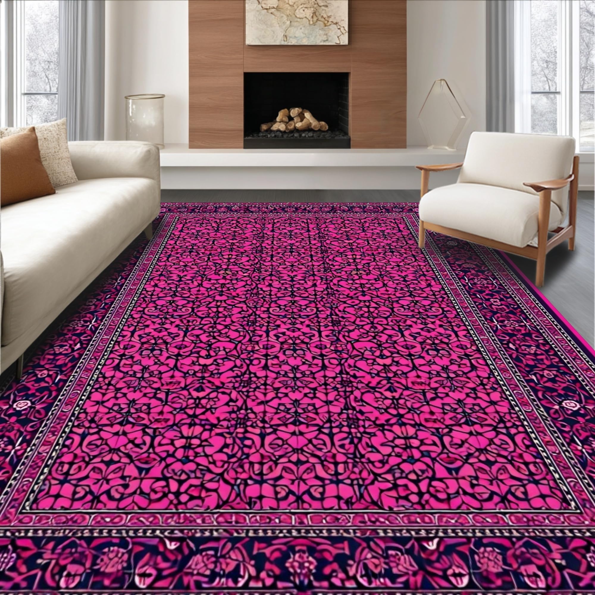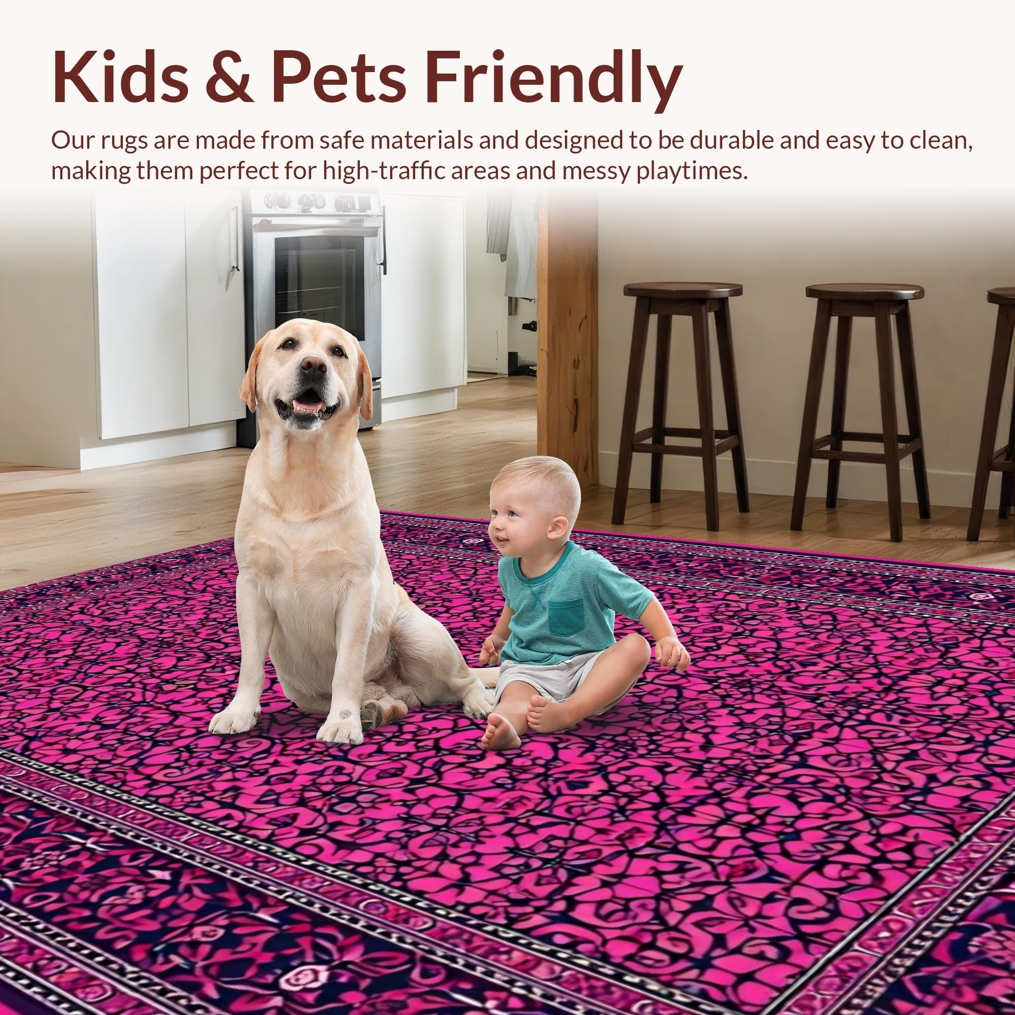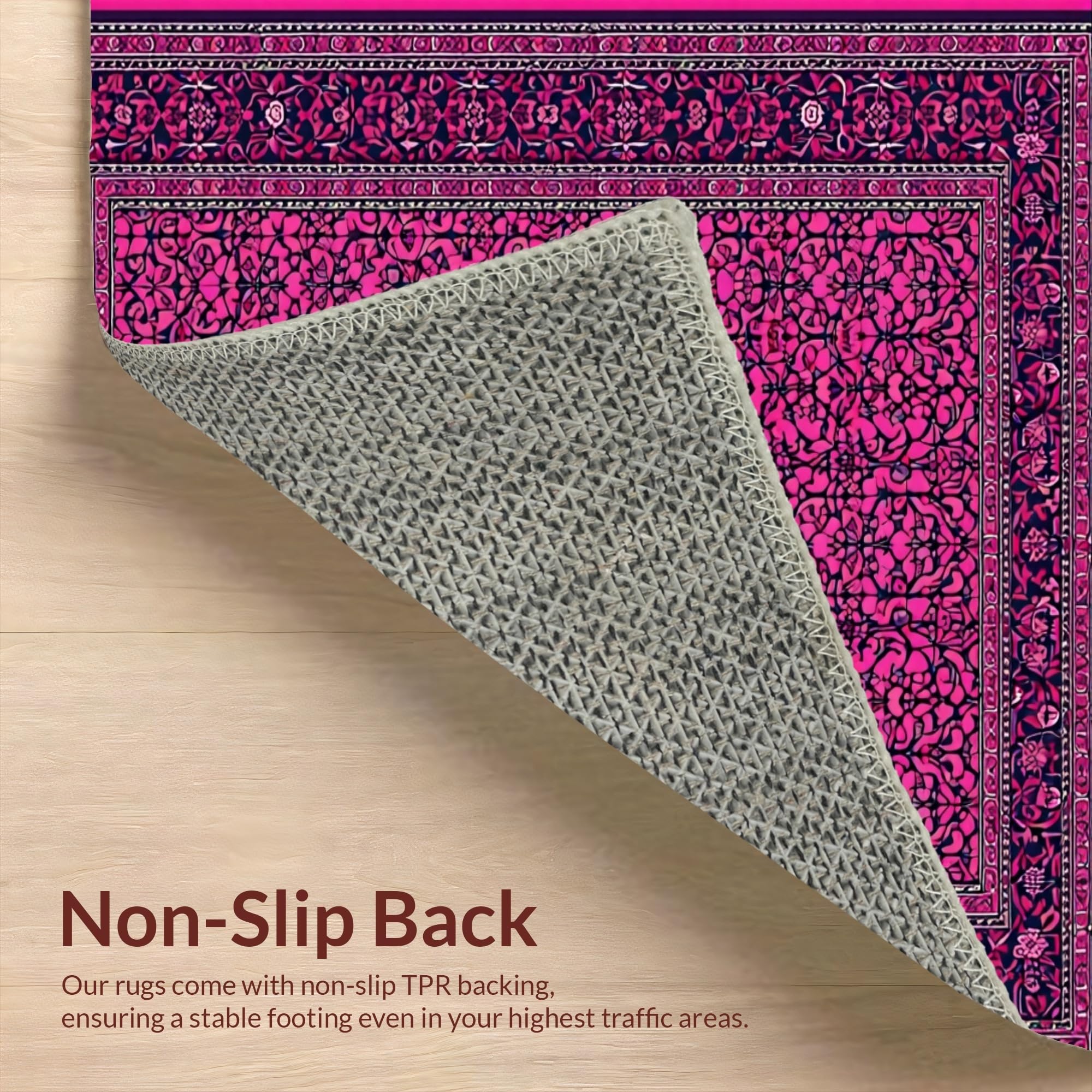 Ultra Soft Area Rug, Non Slip, Stain Resistant, Washable Area Rugs for Living Room, Bedroom, Rich Wineberry Floral Elegance(Pink) Overview: