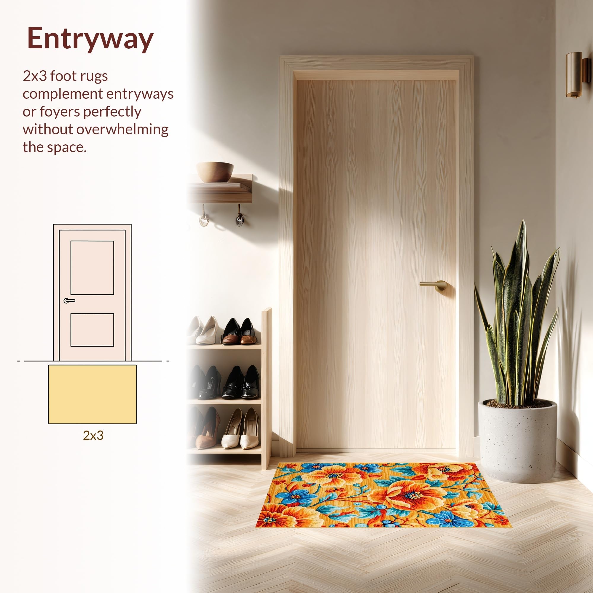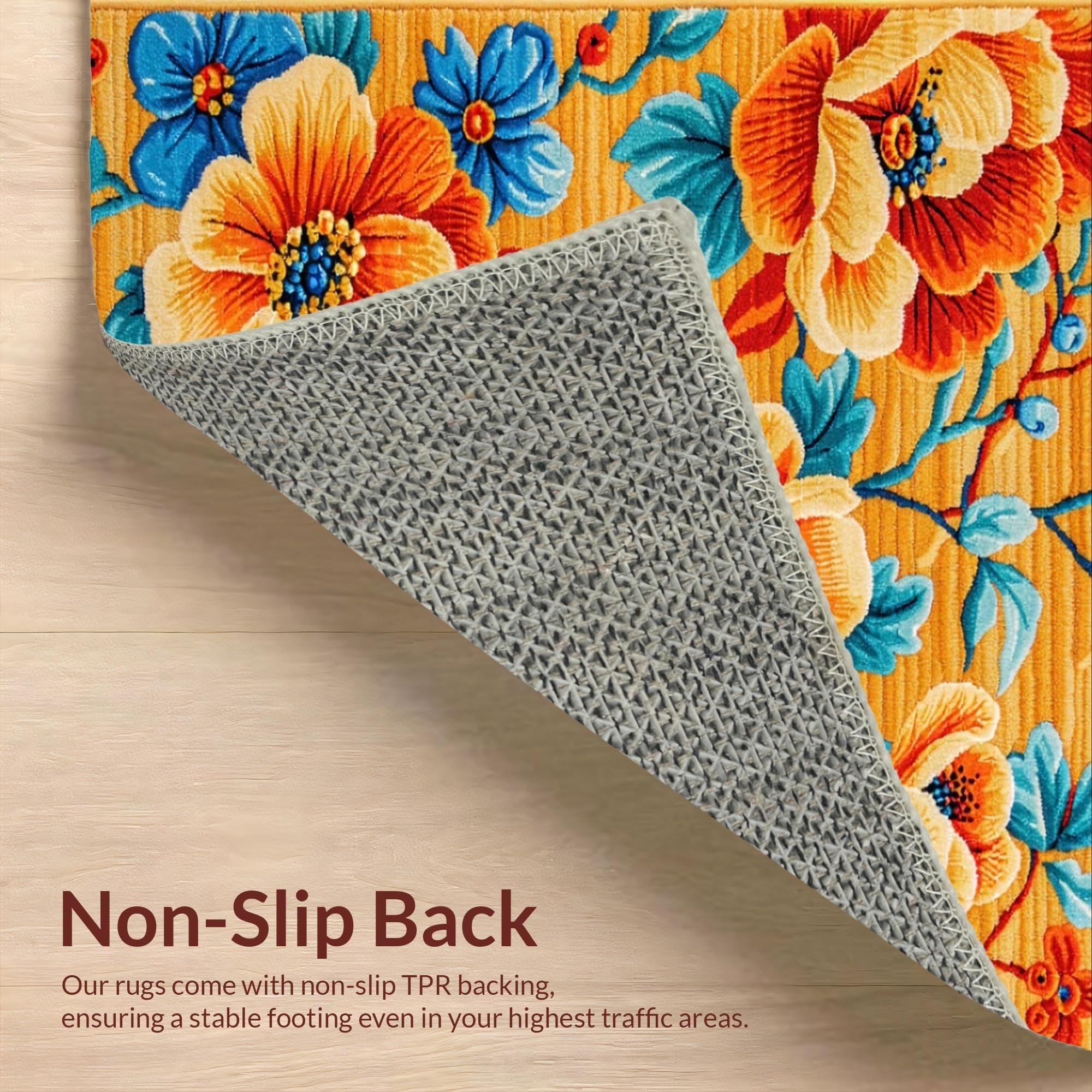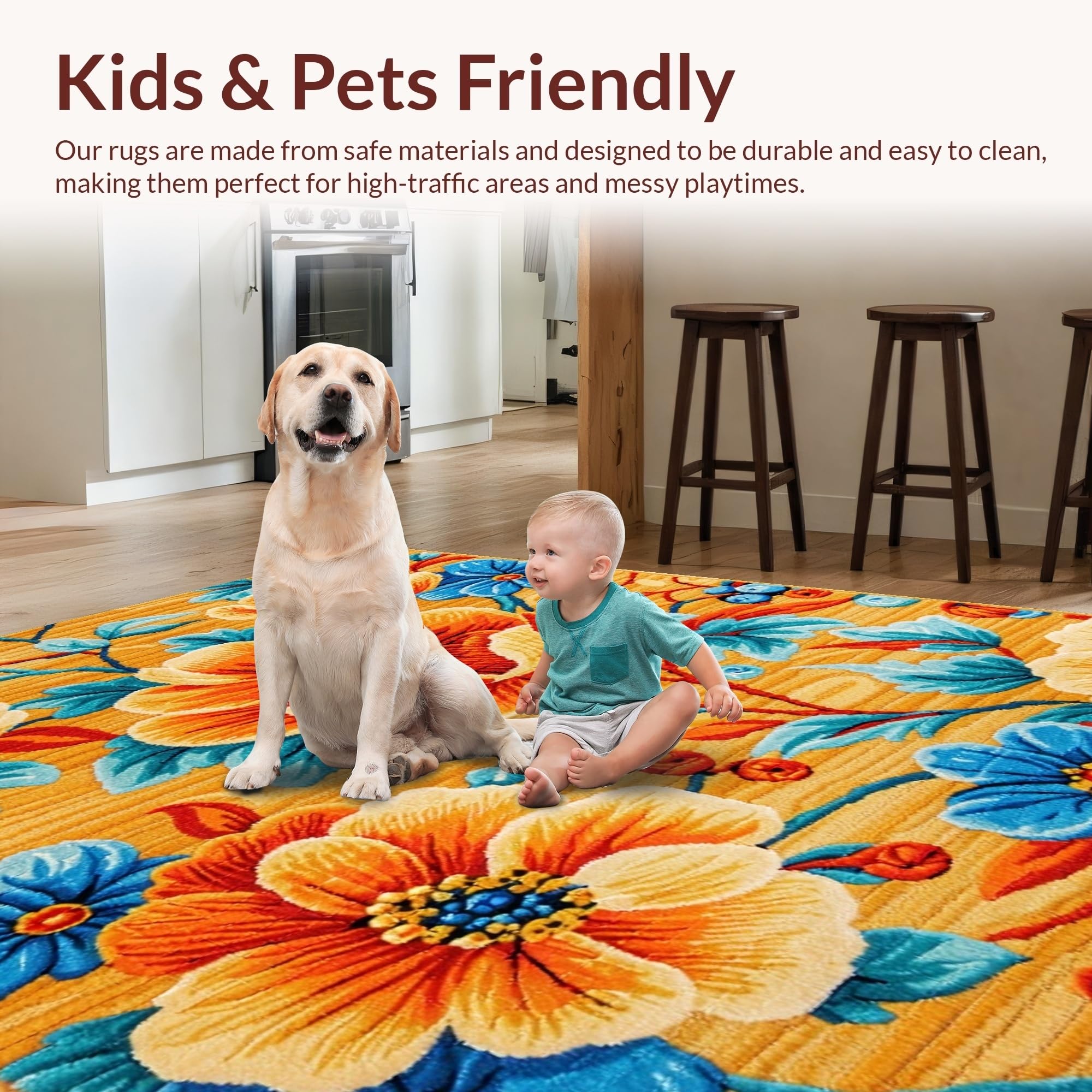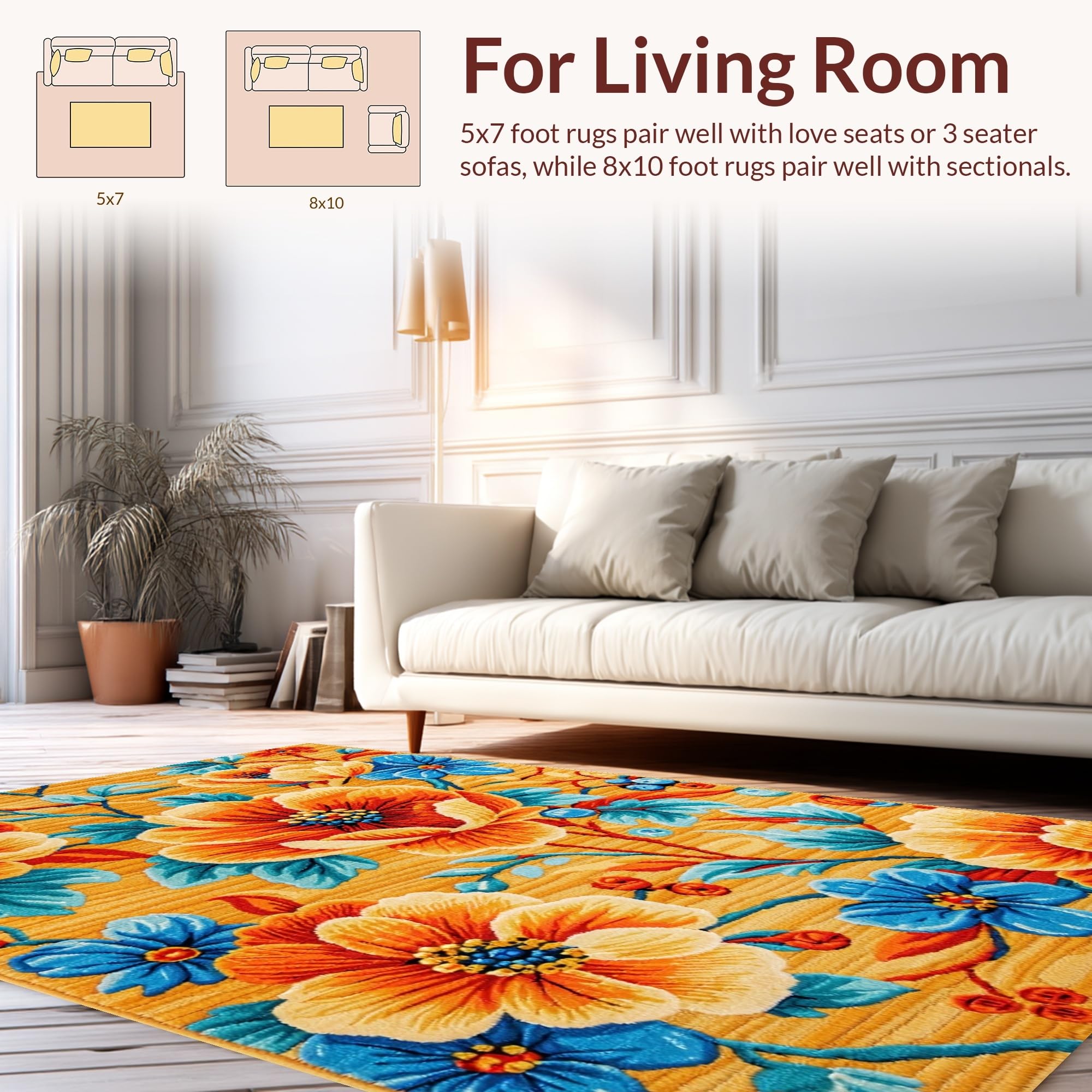 Ultra Soft Area Rug, Non Slip, Stain Resistant, Washable Area Rugs for Living Room, Bedroom, Richly Colored Abstract Floral Fusion(Orange) Overview: