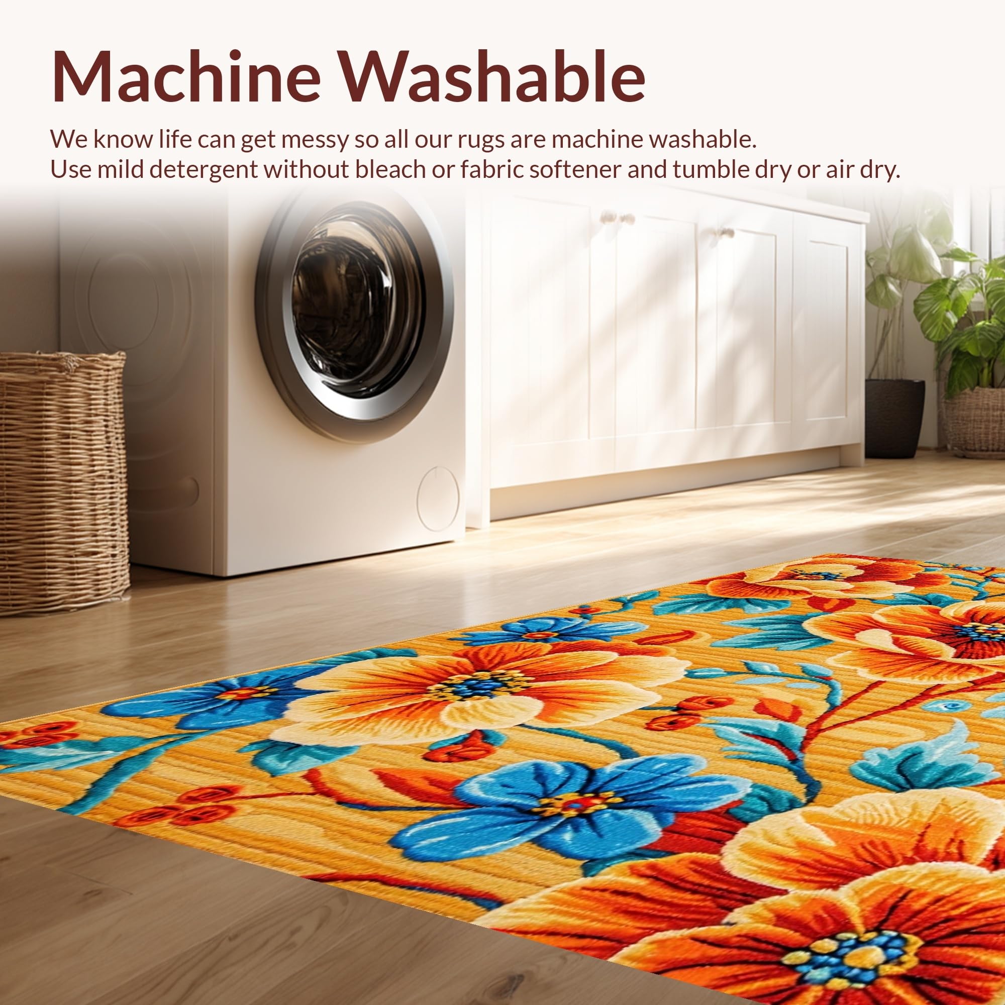 - Machine Washable: Our rugs can be easily thrown in the wash machine.