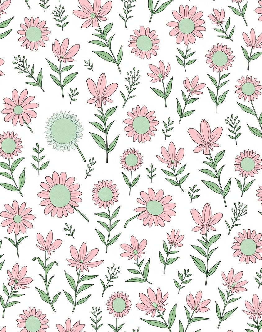 Romantic Blossom Trail with Interlocking Tendrils and Scattered Wildflowers(White)