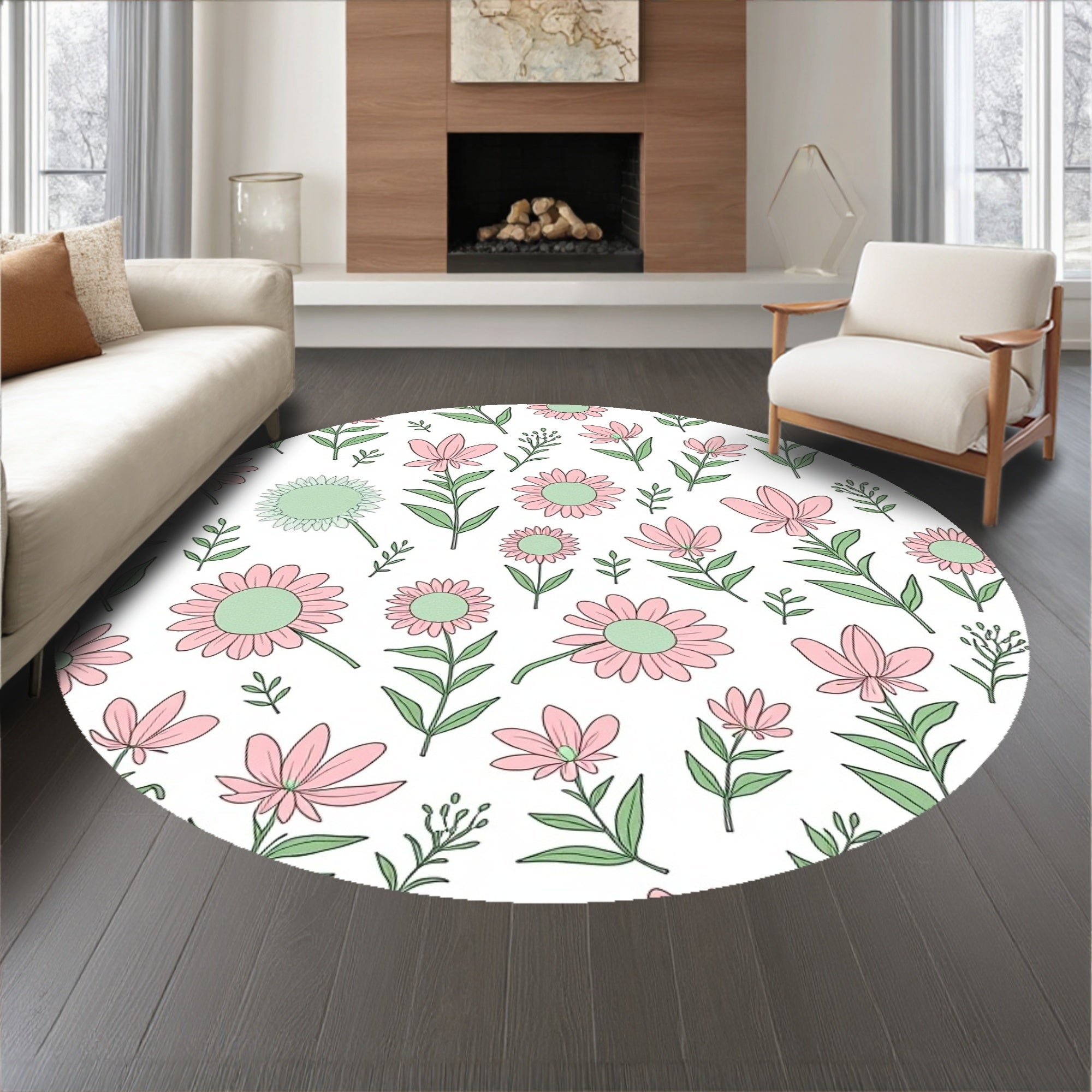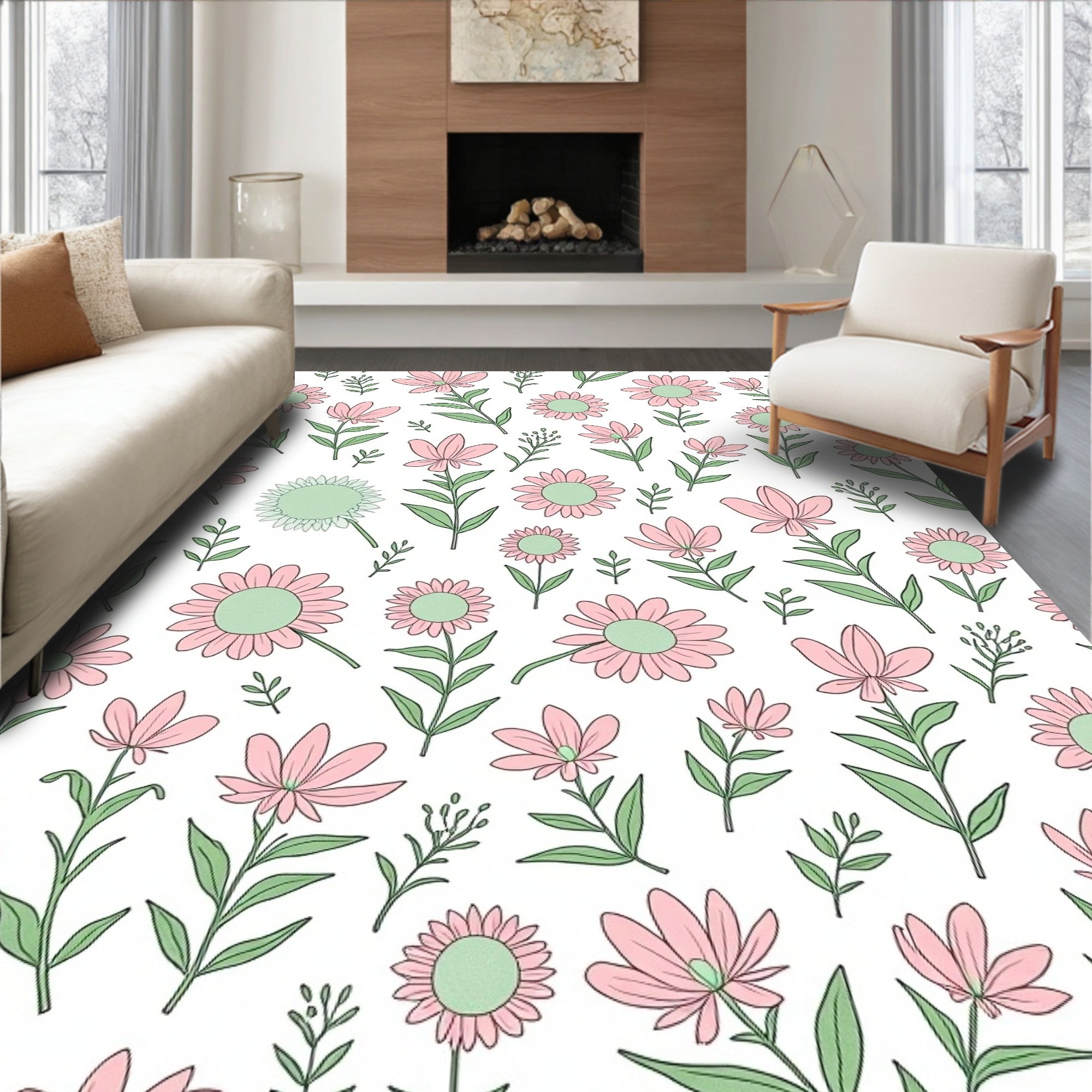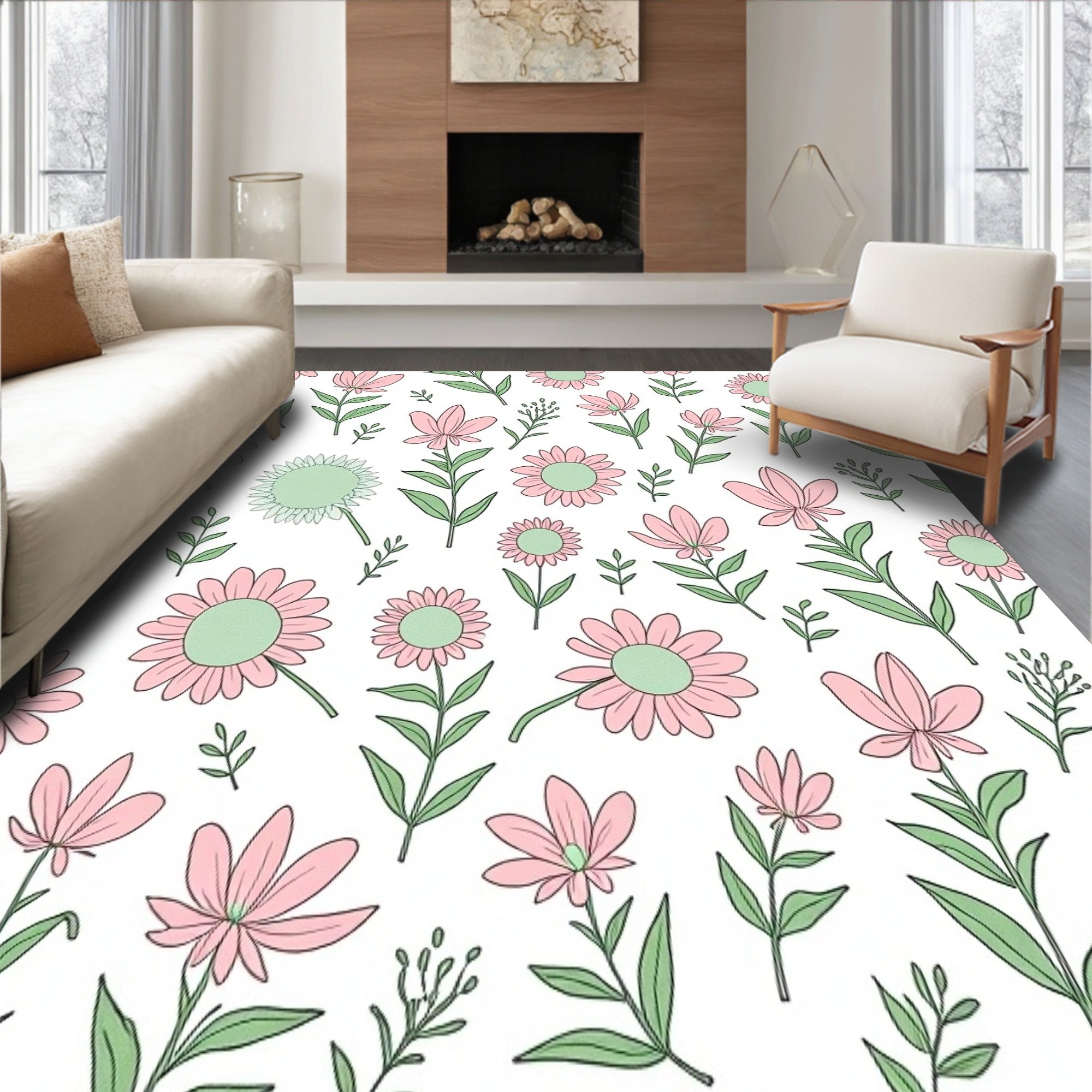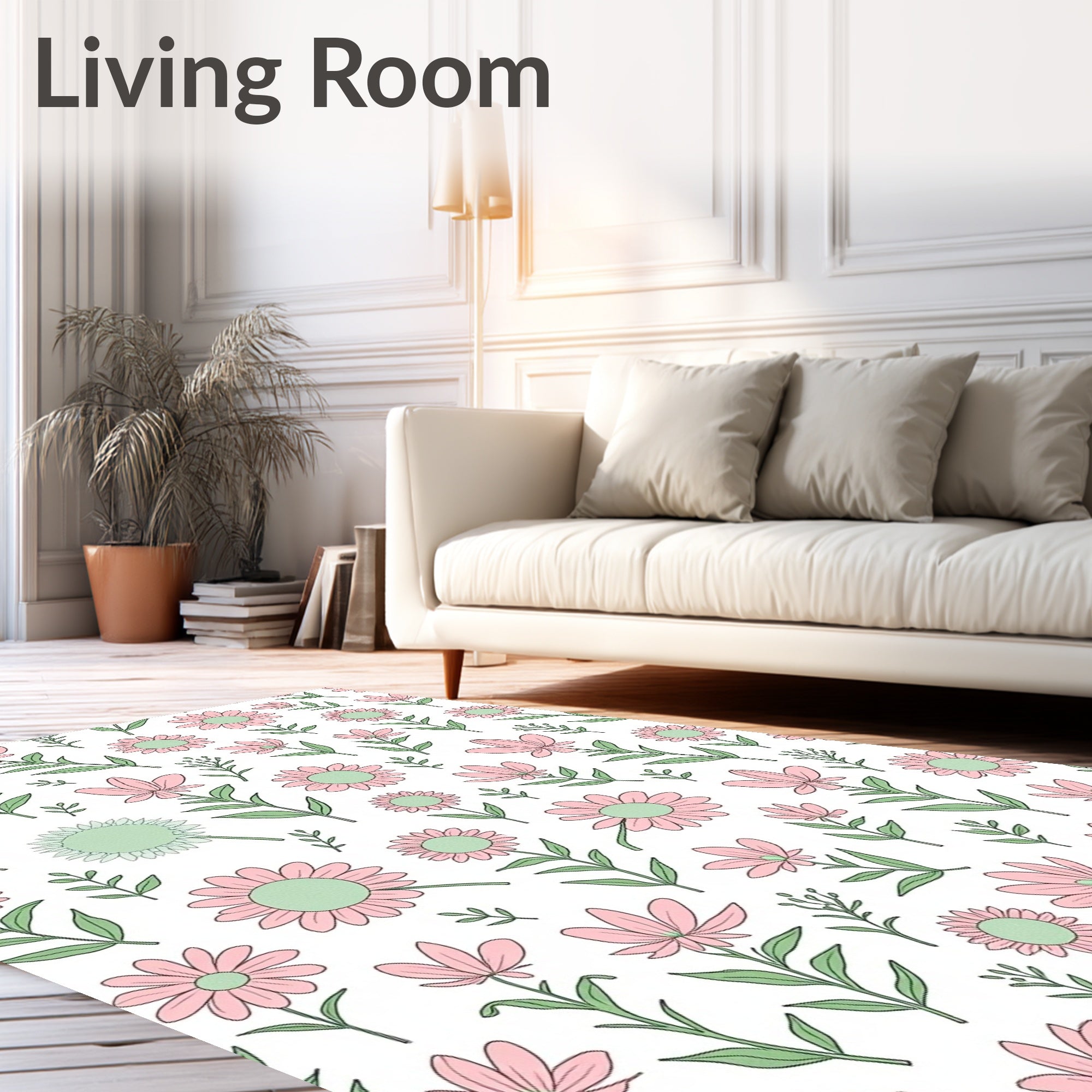 Ultra Soft Area Rug, Non Slip, Stain Resistant, Washable Area Rugs for Living Room, Bedroom, Romantic Blossom Trail with Interlocking Tendrils and Scattered Wildflowers(White) Overview: