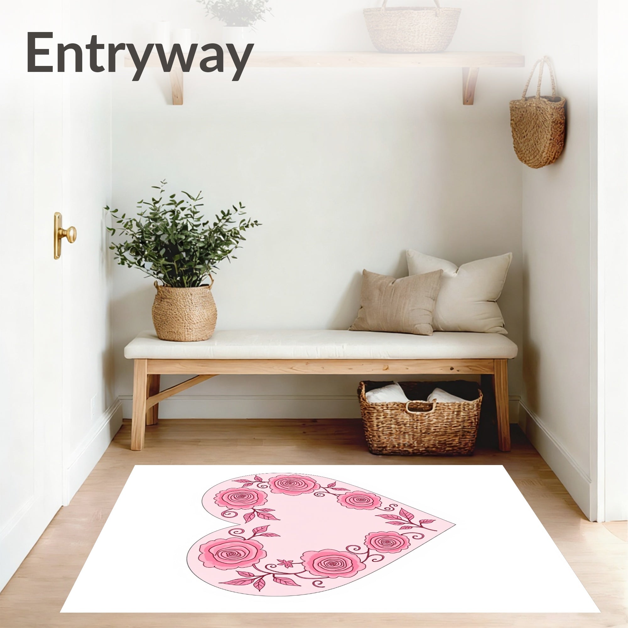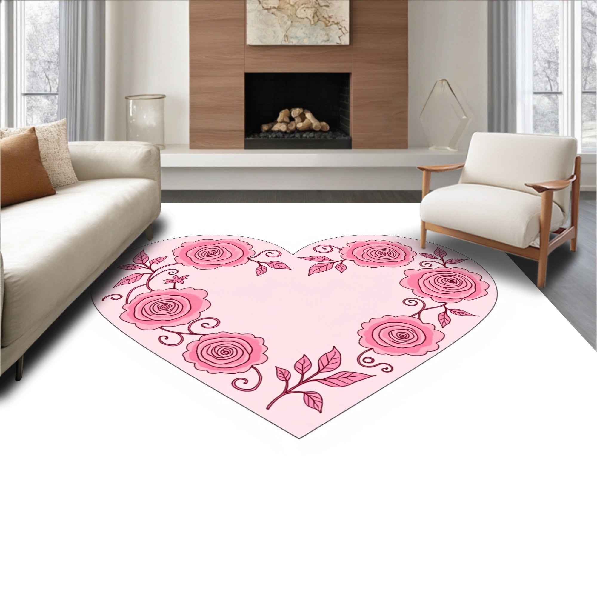 Flatwoven High Traffic Area Rug, Romantic Petal Motif with Delicate Swirl Accents and Floral Embellishments, Non Slip, Stain Resistant, Washable Area Rugs for Living Room, Bedroom (Pink) Overview: