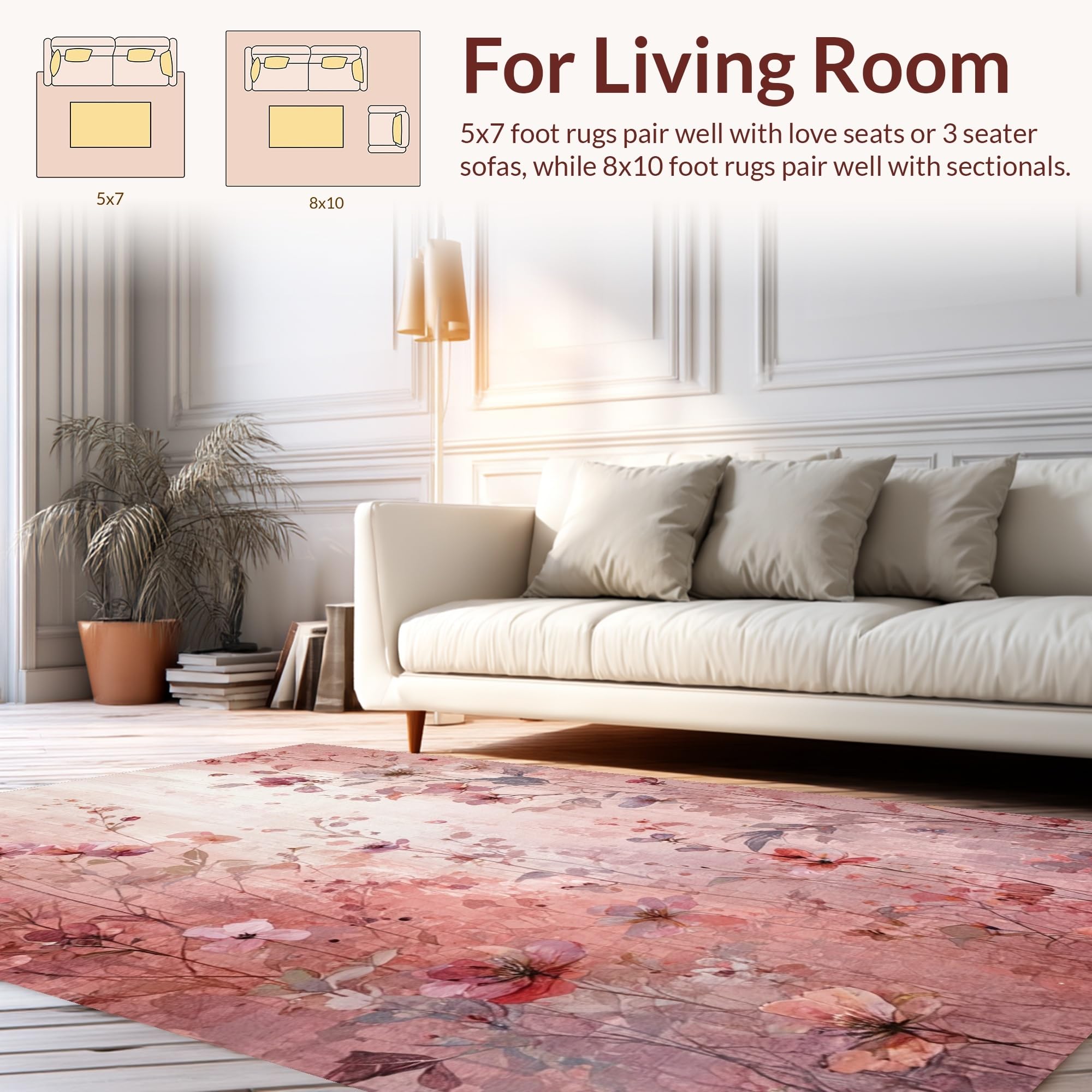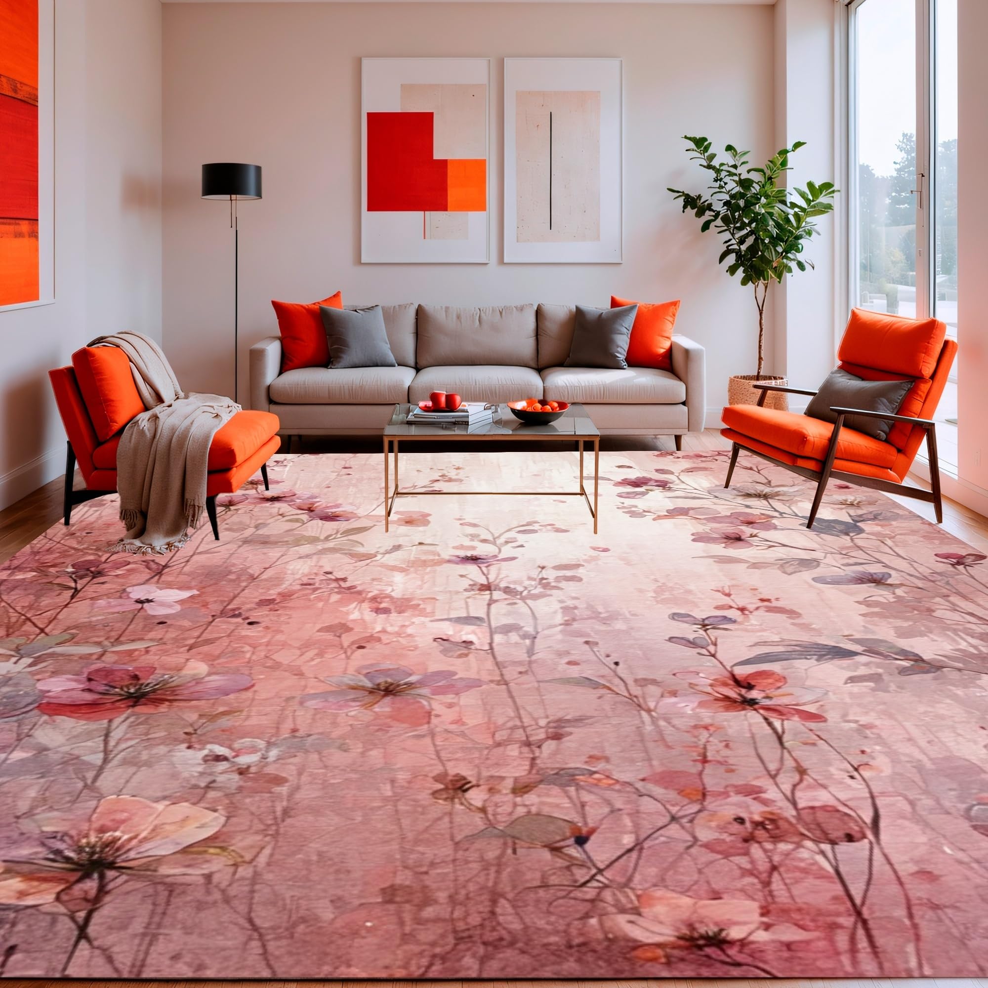 Ultra Soft Area Rug, Non Slip, Stain Resistant, Washable Area Rugs for Living Room, Bedroom, Roseate Bloom Carpet Mauve Floral Whisper Rug Soft Accent(Pink) Overview: