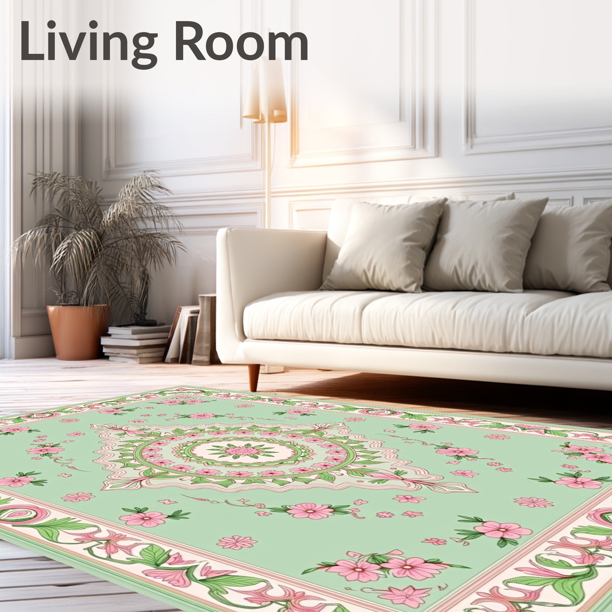 Ultra Soft Area Rug, Non Slip, Stain Resistant, Washable Area Rugs for Living Room, Bedroom, Rosemarie Vintage Floral Medallion Heritage Collection(Pink) Overview: