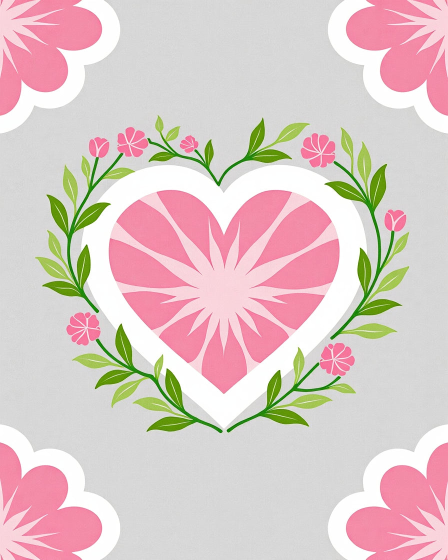 Rosy Petal Motif with Delicate Vine Embellishments(Pink)