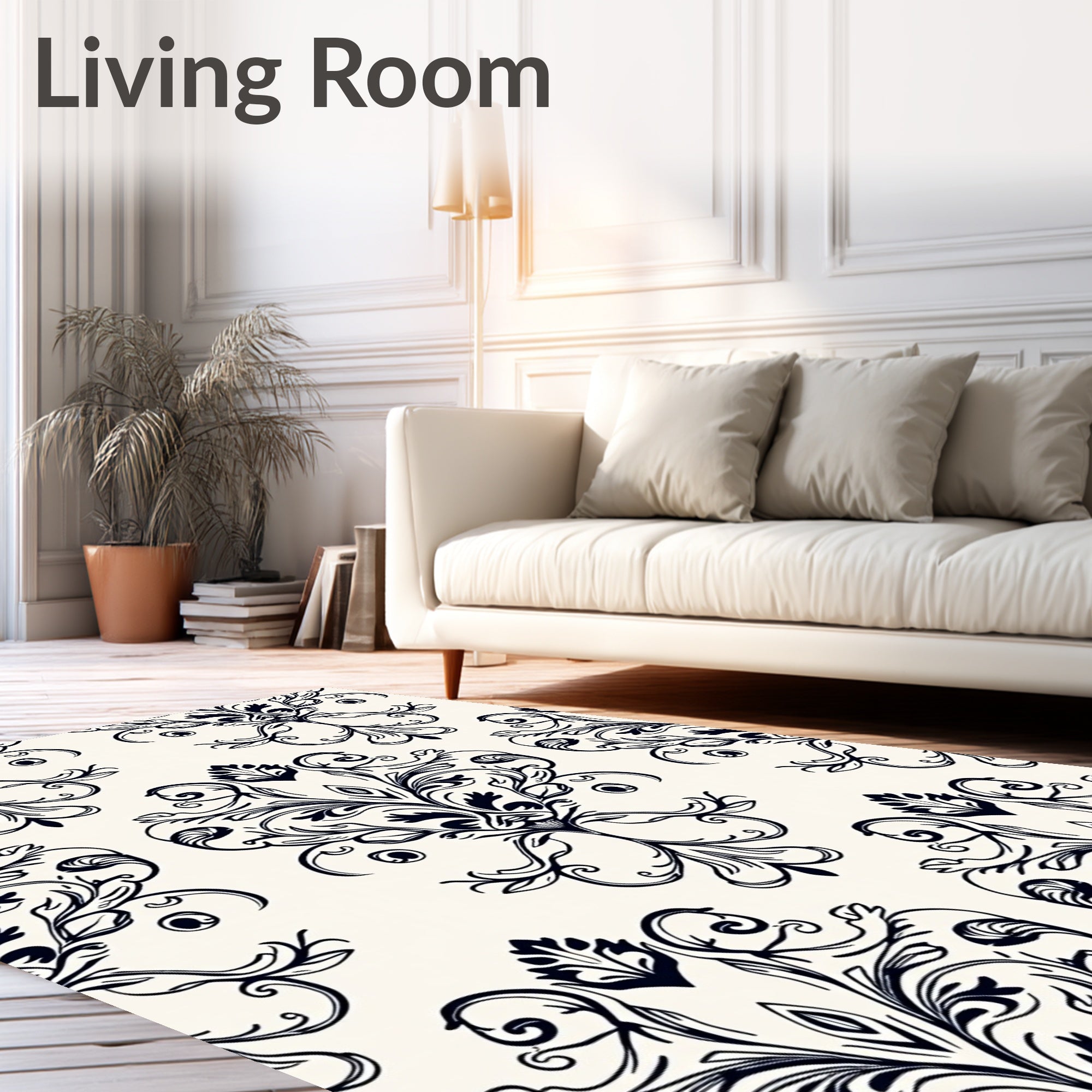 Ultra Soft Area Rug, Non Slip, Stain Resistant, Washable Area Rugs for Living Room, Bedroom, Rotana Floral Damask Vintage Inspired(Black) Overview:
