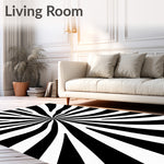 Ultra Soft Area Rug, Non Slip, Stain Resistant, Washable Area Rugs for Living Room, Bedroom, Rotating Pinwheel Spin Effect Trickery Floor(Black) Overview: