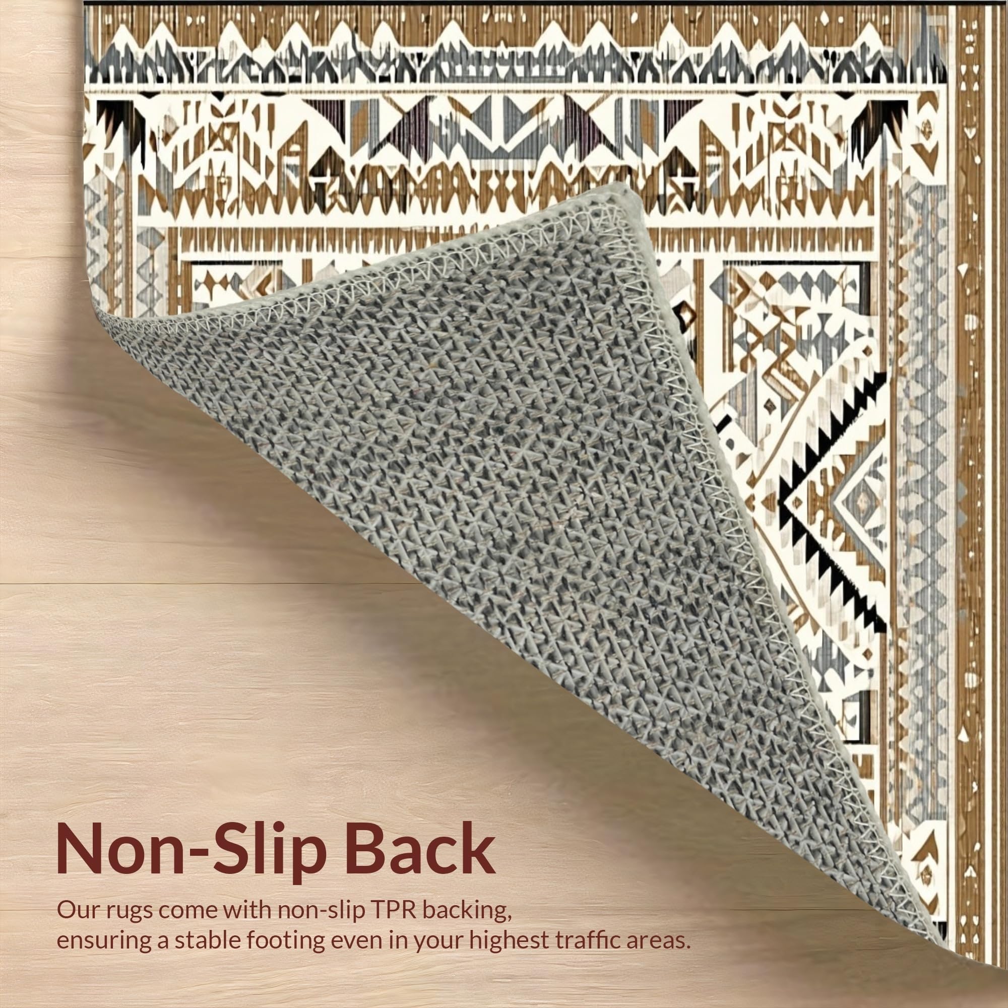Ultra Soft Area Rug, Non Slip, Stain Resistant, Washable Area Rugs for Living Room, Bedroom, Round Cozy Rustic Motif(Beige) Overview: