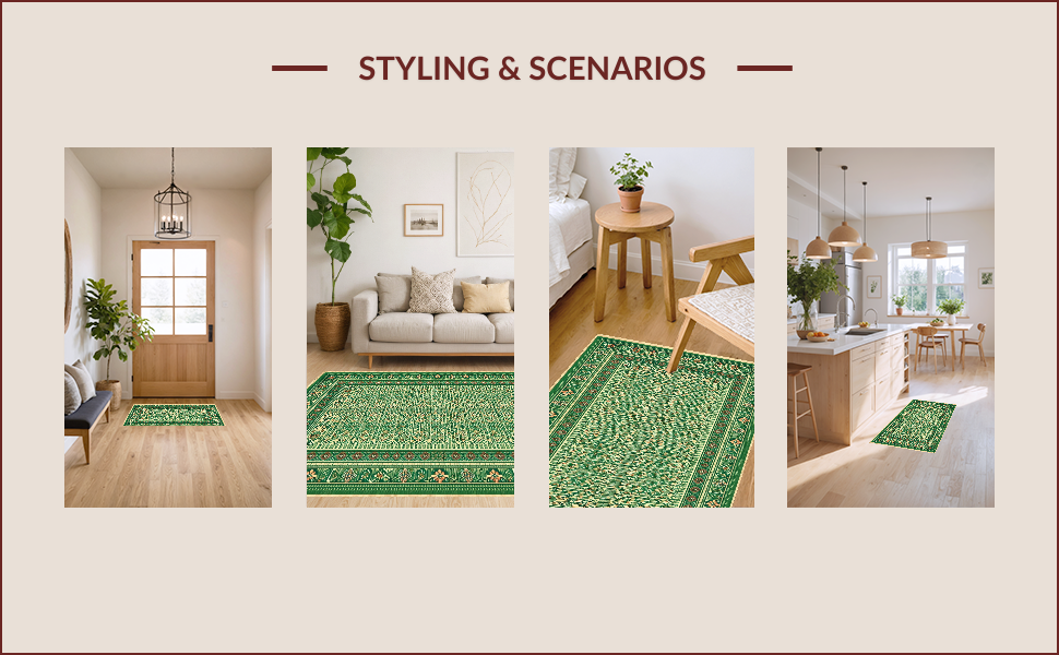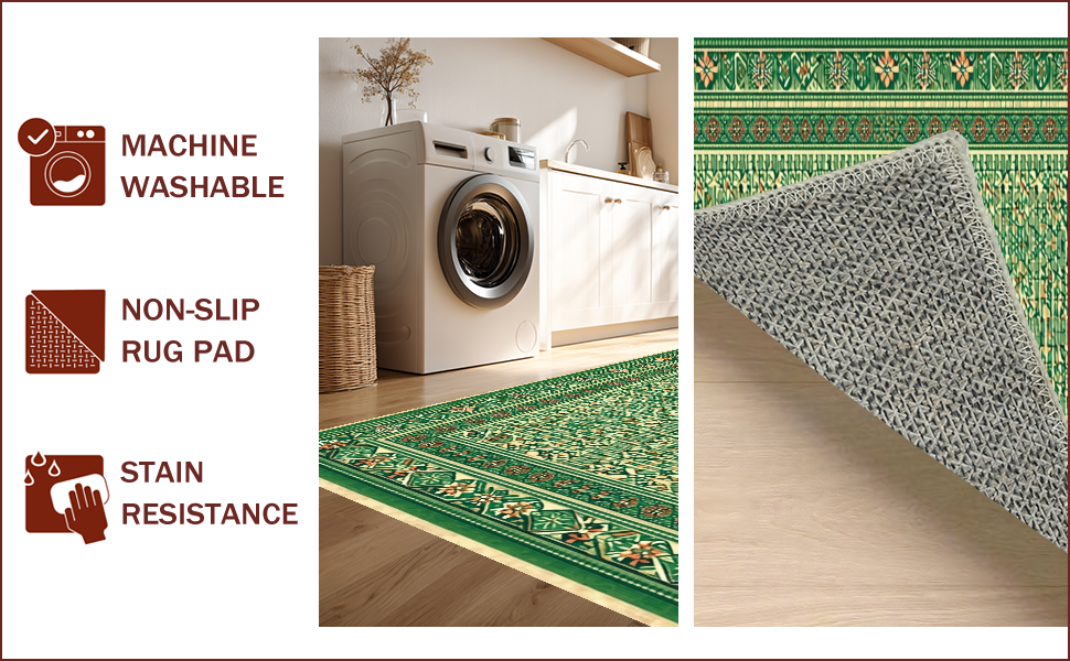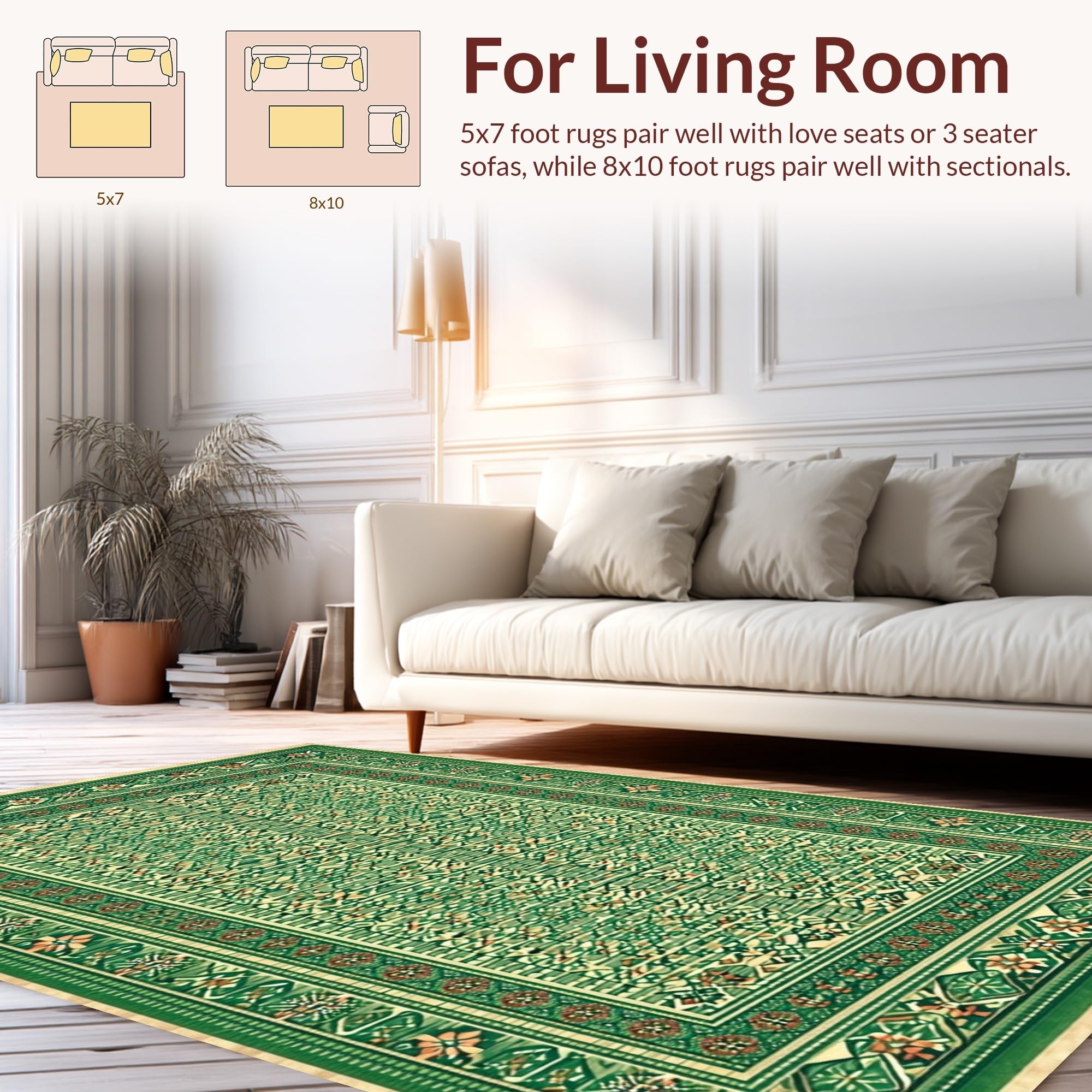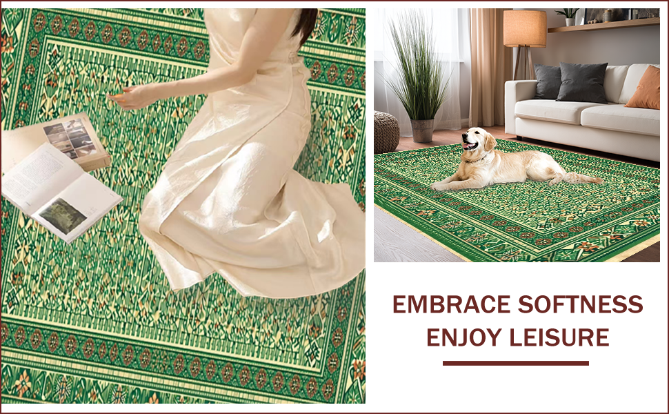 Ultra Soft Area Rug, Non Slip, Stain Resistant, Washable Area Rugs for Living Room, Bedroom, Rust Green Dining Room Home Office Area Rug(Green) Overview: