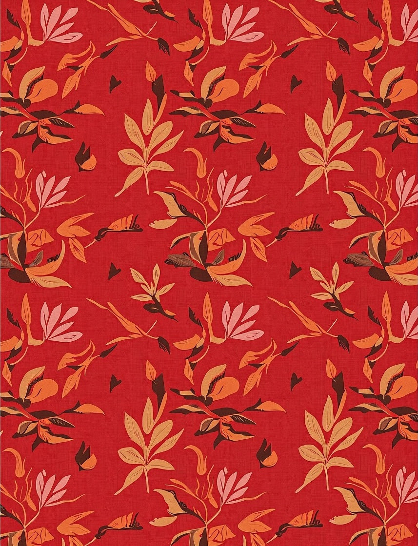 Rustic Abstract Floral Mosaic with Seasonal Leaf Detailing(Red)
