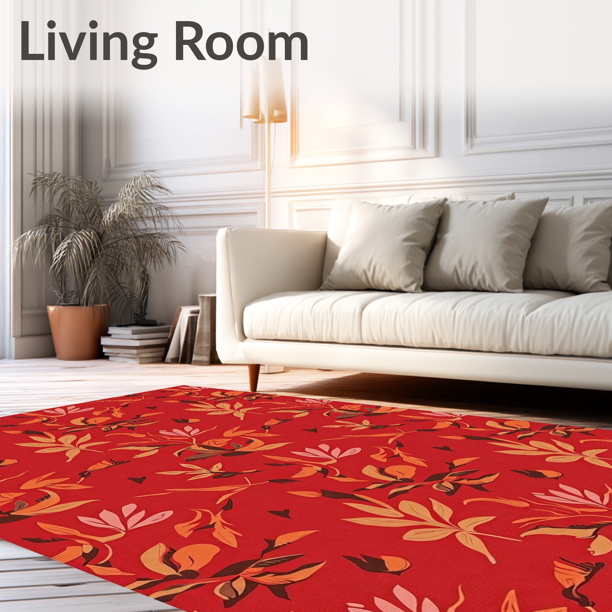 Ultra Soft Area Rug, Non Slip, Stain Resistant, Washable Area Rugs for Living Room, Bedroom, Rustic Abstract Floral Mosaic with Seasonal Leaf Detailing(Red) Overview: