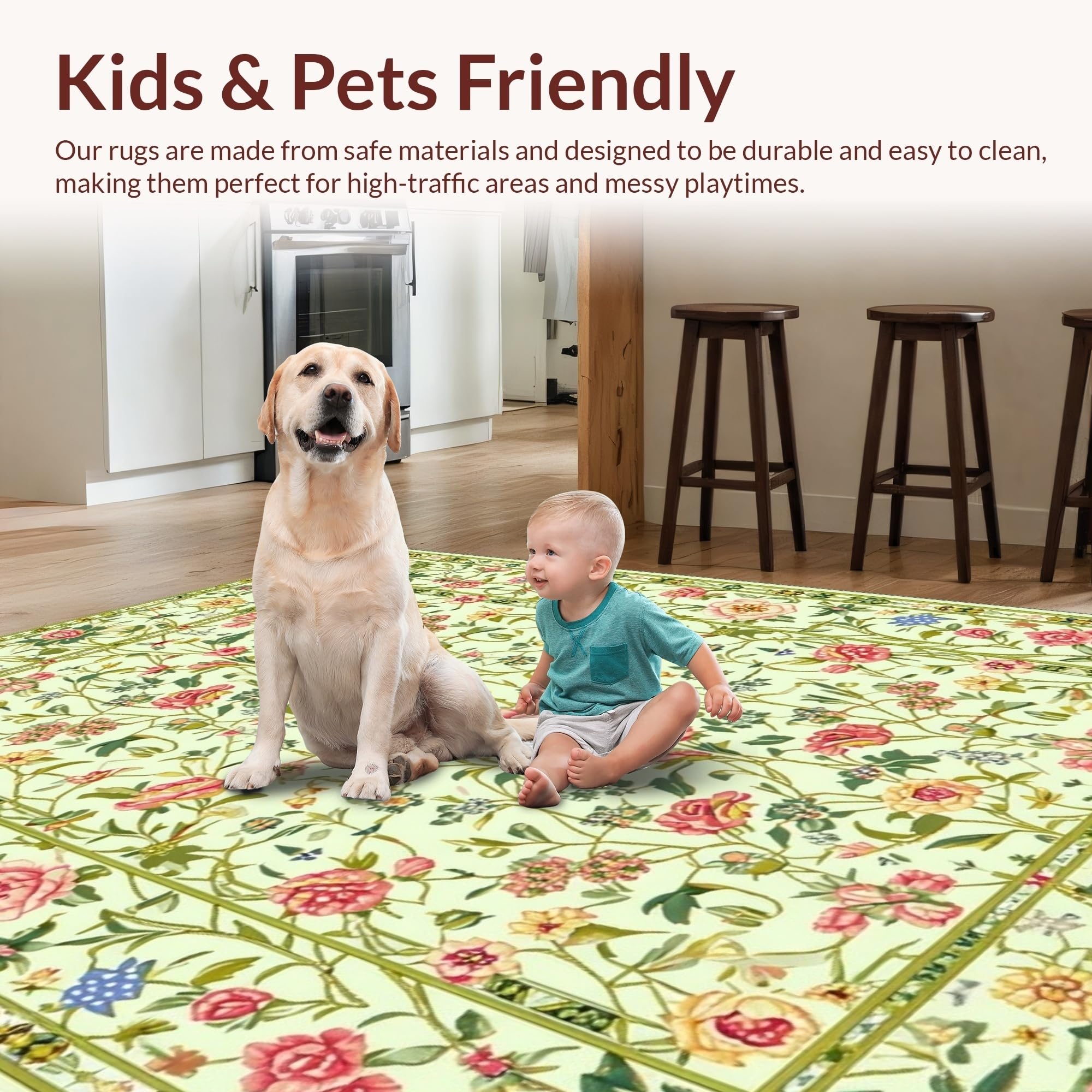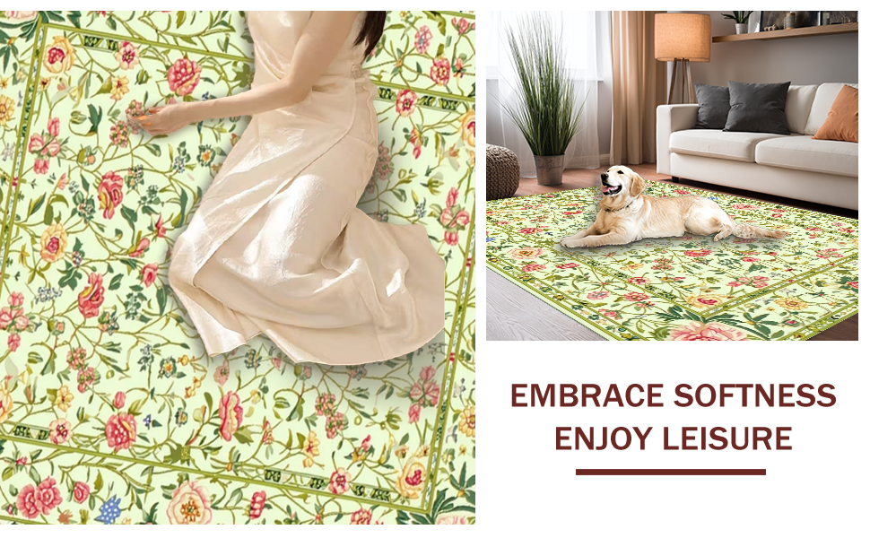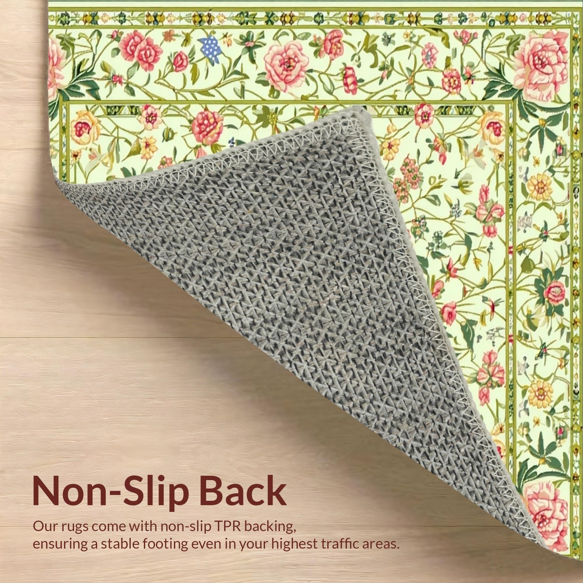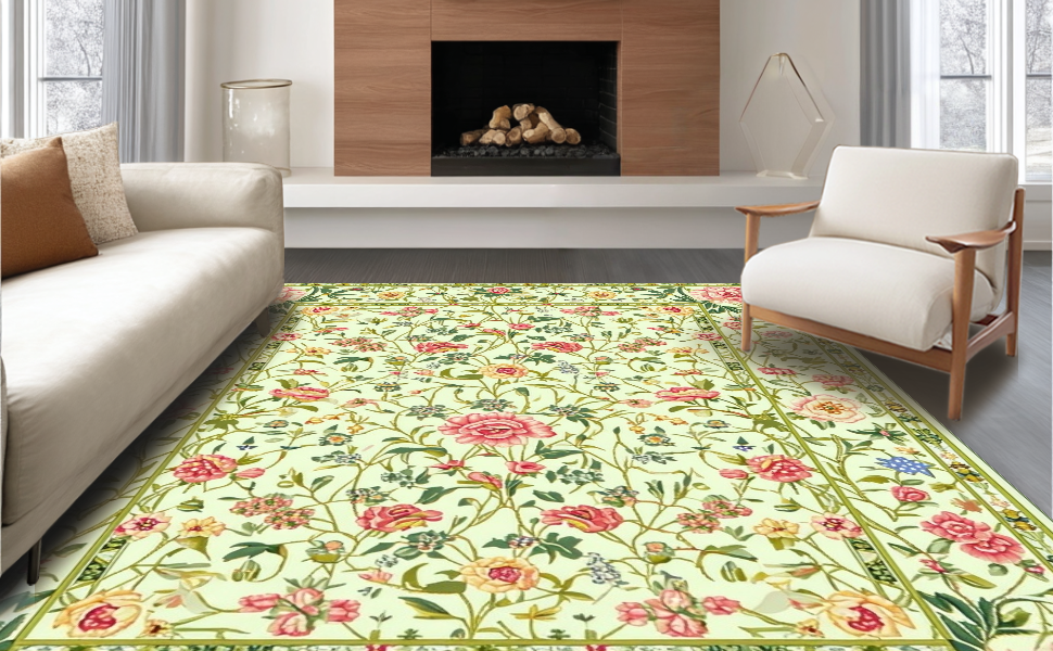 Ultra Soft Area Rug, Non Slip, Stain Resistant, Washable Area Rugs for Living Room, Bedroom, Rustic Antique Blossom Arrangement(Ivory) Overview: