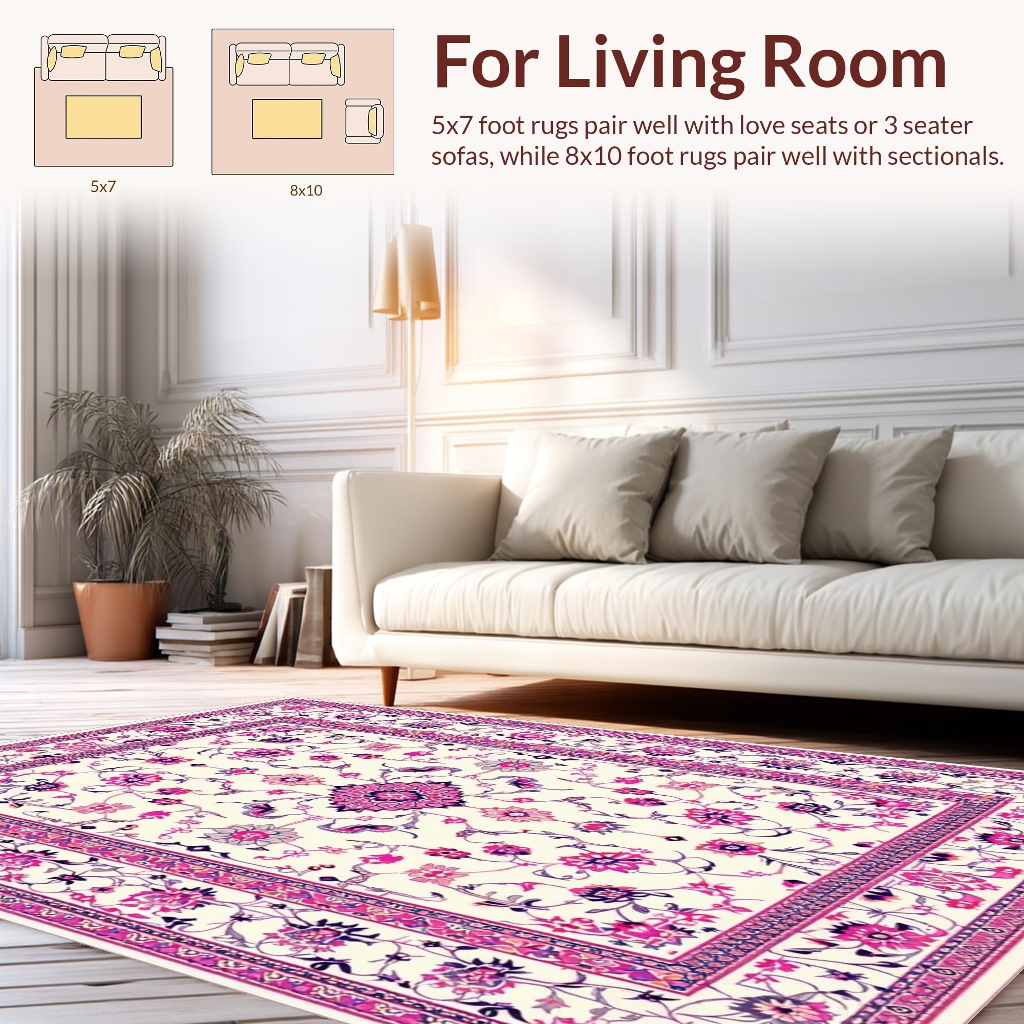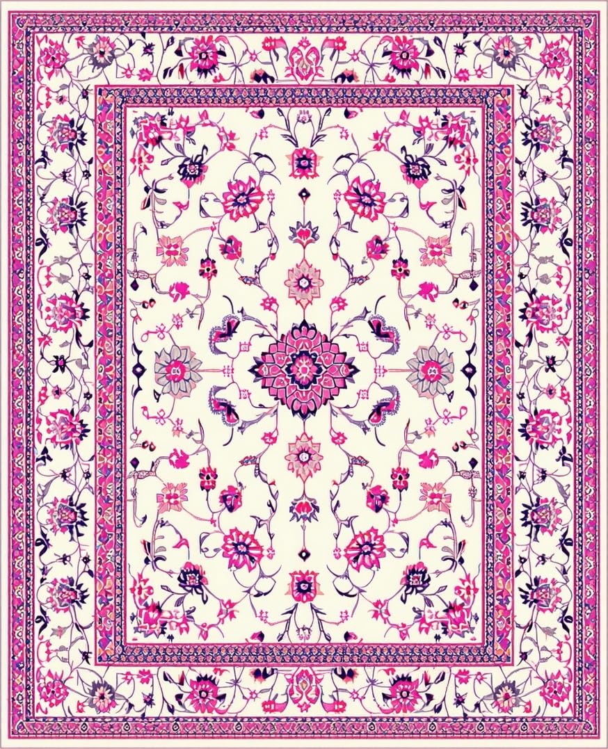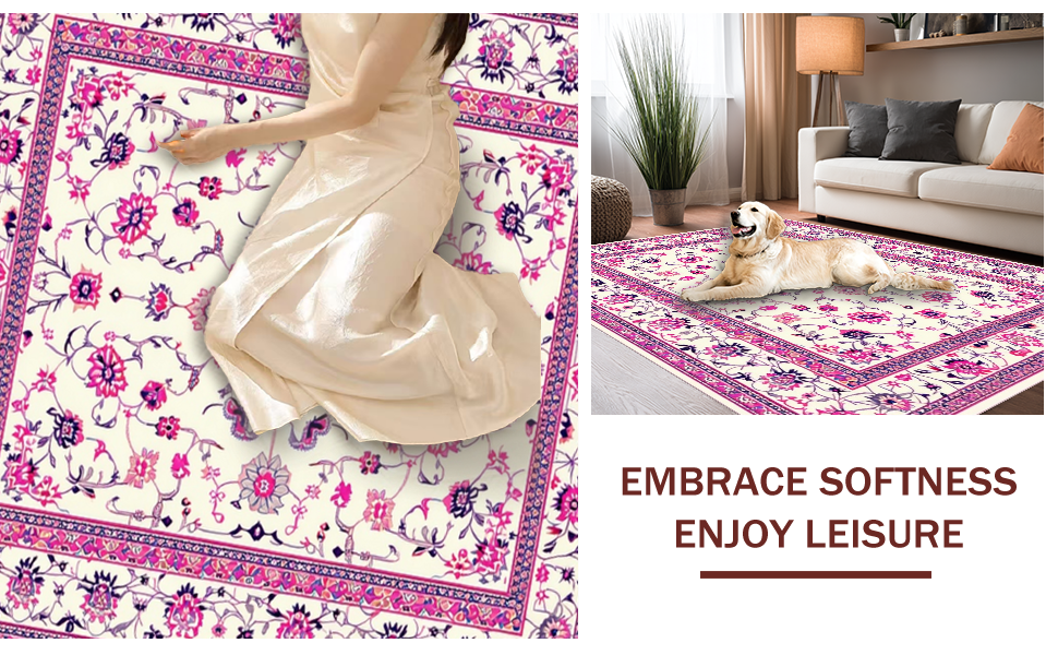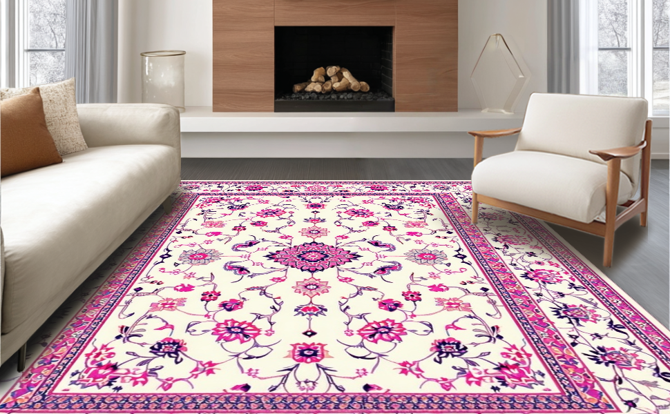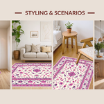 Ultra Soft Area Rug, Non Slip, Stain Resistant, Washable Area Rugs for Living Room, Bedroom, Rustic Botanical Motif Decor(White) Overview: