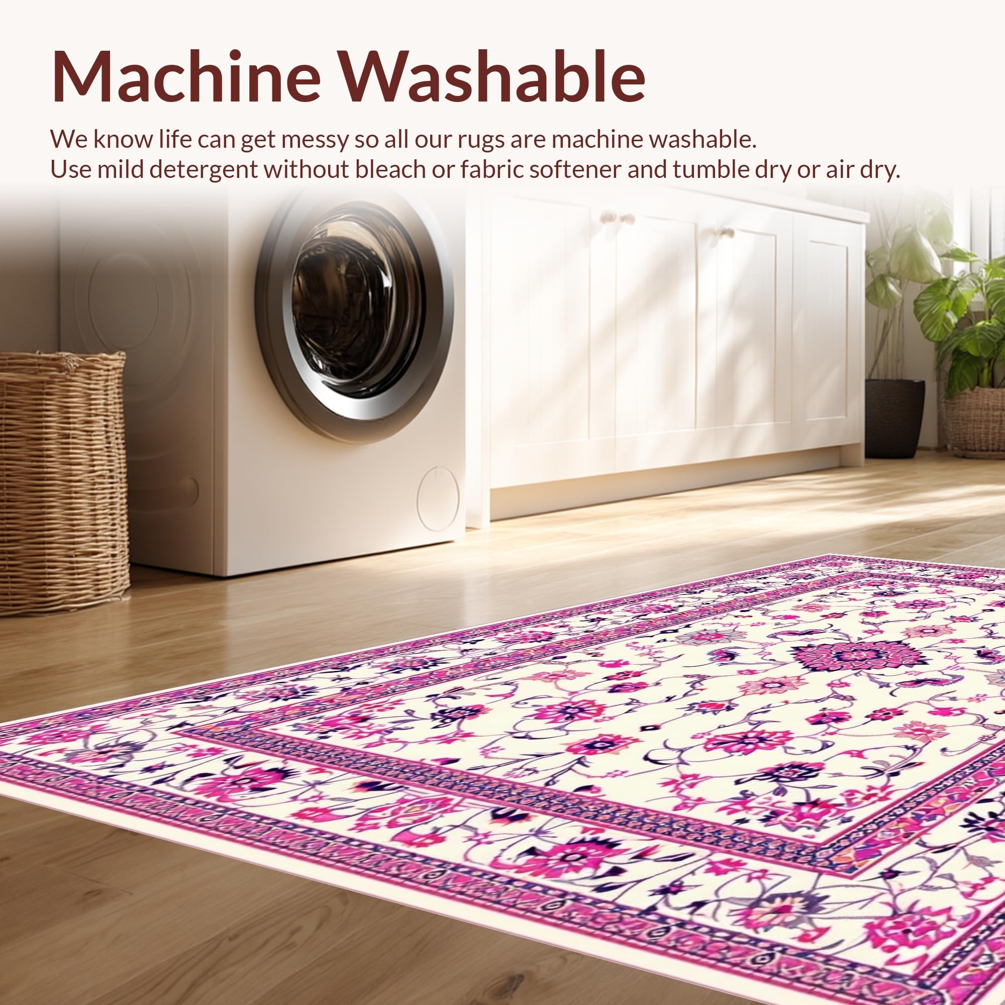 - Machine Washable: Our rugs can be easily thrown in the wash machine.