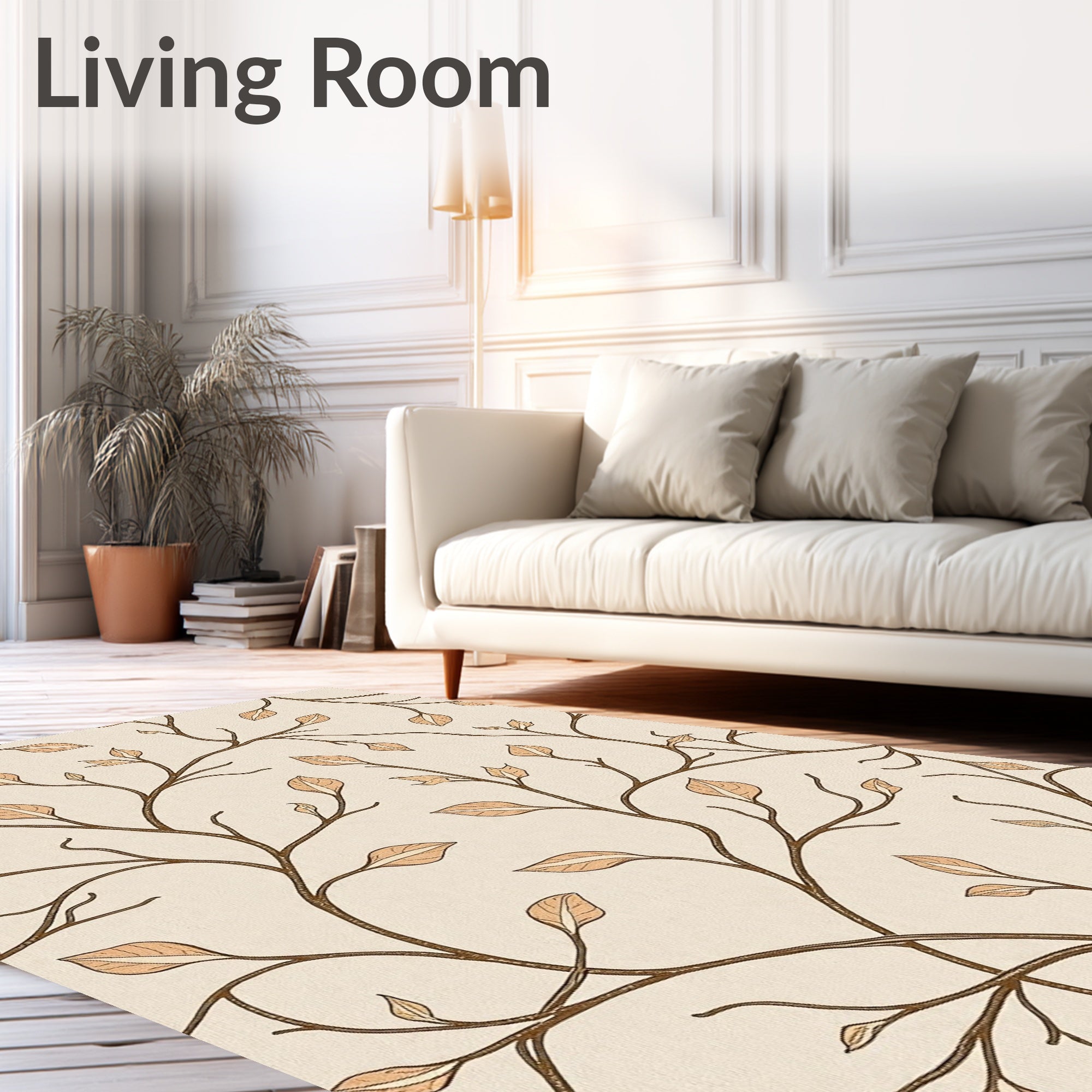 Ultra Soft Area Rug, Non Slip, Stain Resistant, Washable Area Rugs for Living Room, Bedroom, Rustic Botanical Vine Artisan Jacquard(Beige) Overview: