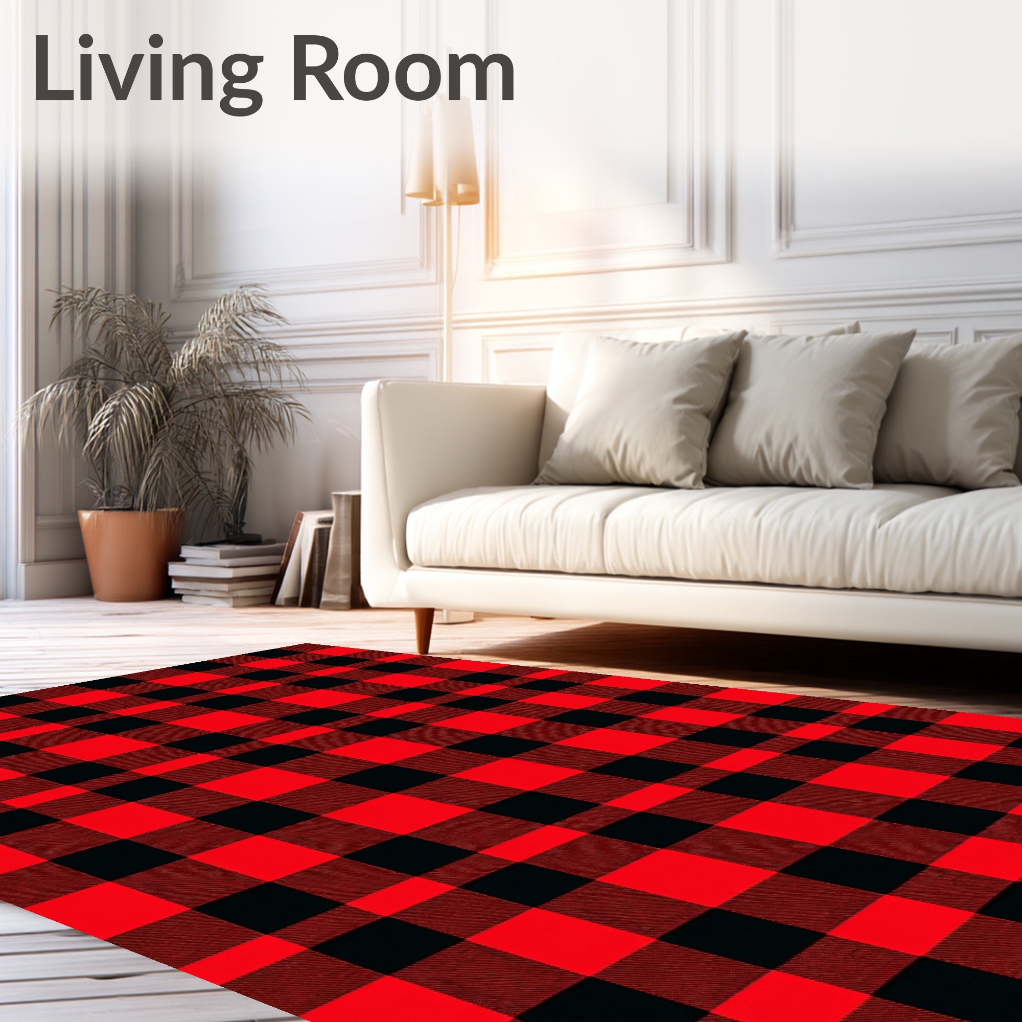 Ultra Soft Area Rug, Non Slip, Stain Resistant, Washable Area Rugs for Living Room, Bedroom, Rustic Buffalo Check Farmhouse Decorative Elegant Holiday Bath(Red) Overview: