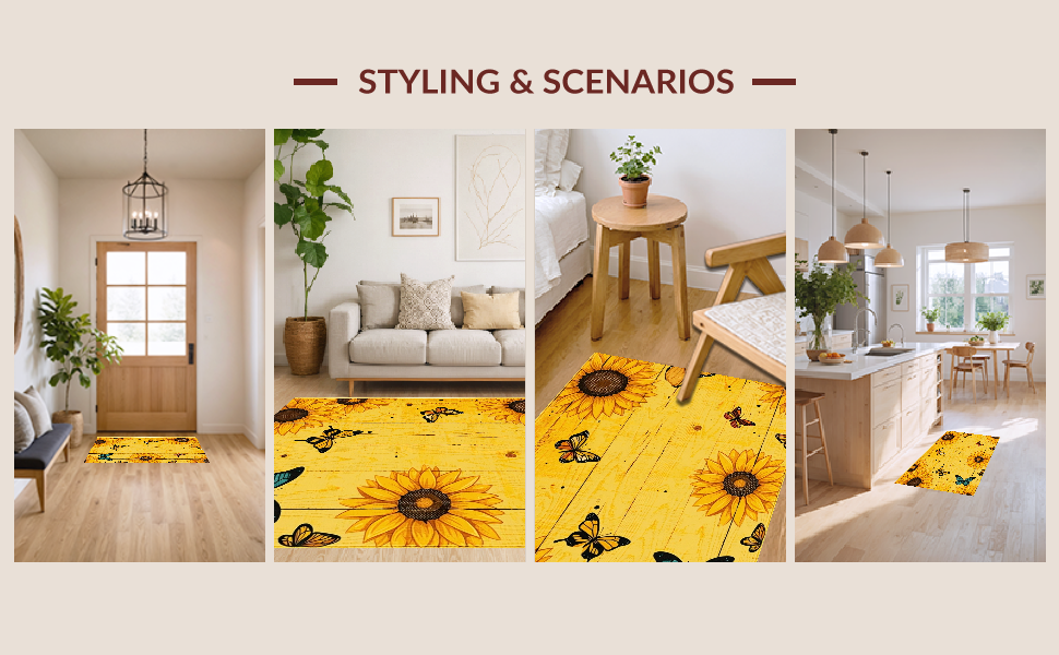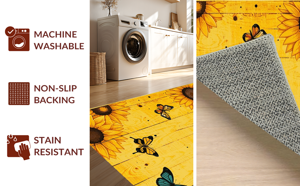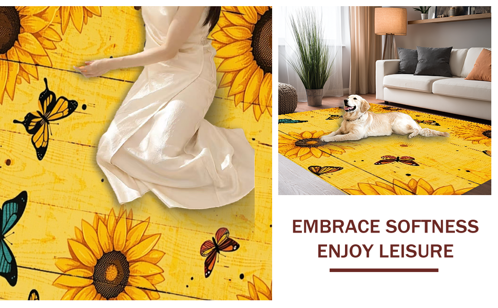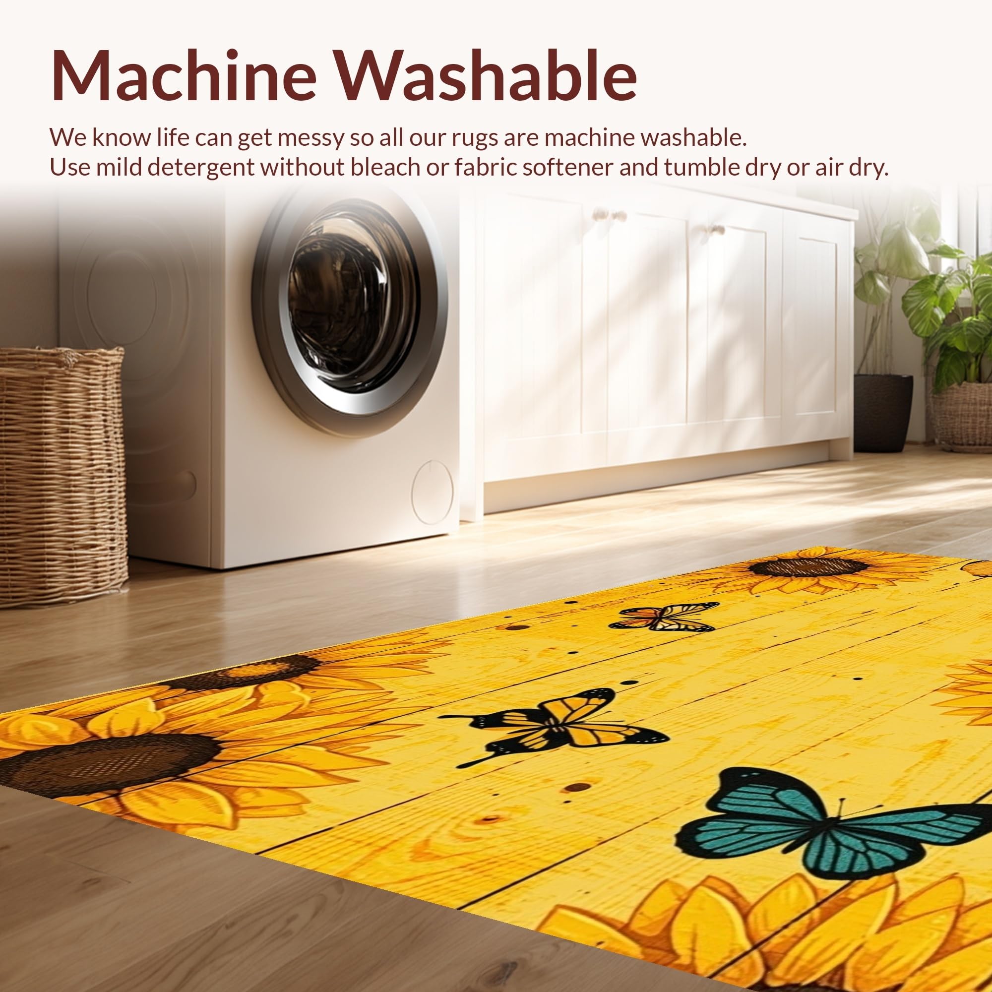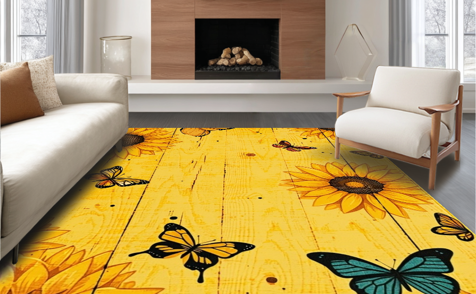 Ultra Soft Area Rug, Non Slip, Stain Resistant, Washable Area Rugs for Living Room, Bedroom, Rustic Butterfly Floral Fusion(Yellow) Overview: