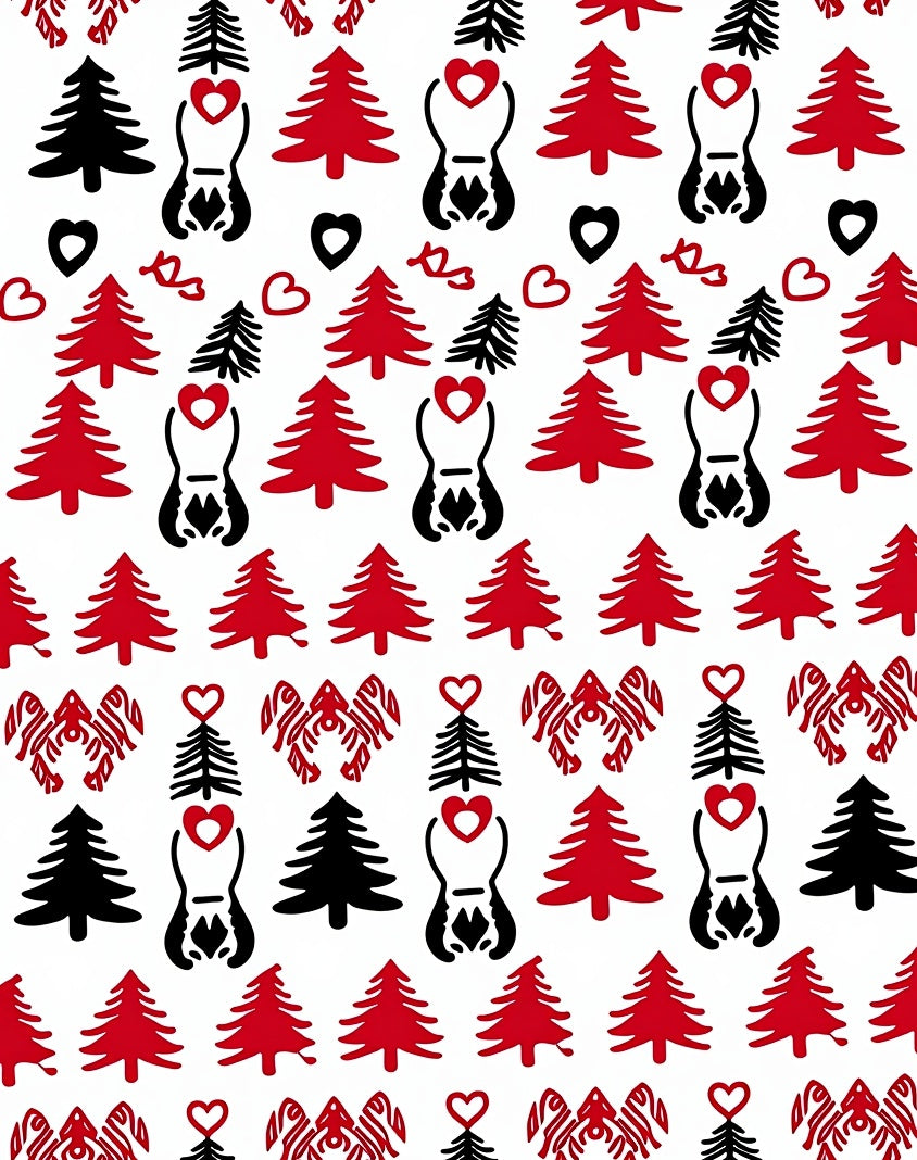 Rustic Cabin Motif with Interlocking Pine Trees and Tiny Embellishments(White)