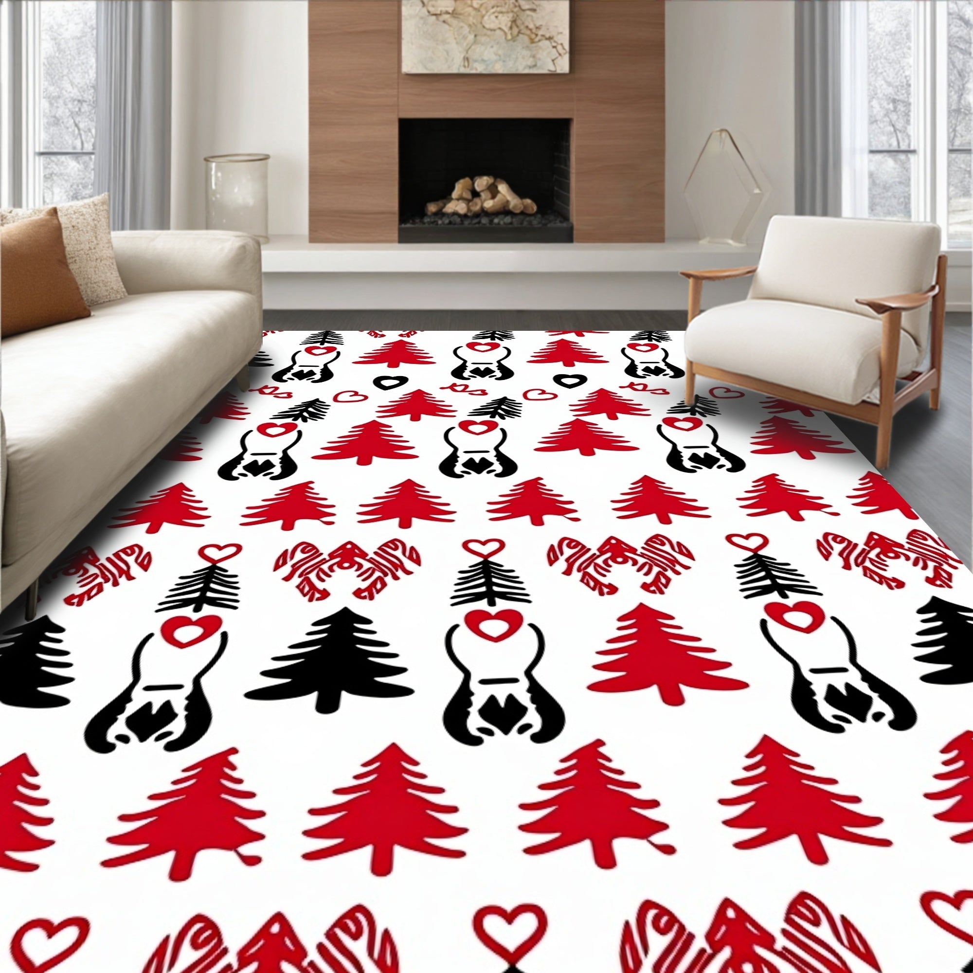 Ultra Soft Area Rug, Non Slip, Stain Resistant, Washable Area Rugs for Living Room, Bedroom, Rustic Cabin Motif with Interlocking Pine Trees and Tiny Embellishments(White) Overview: