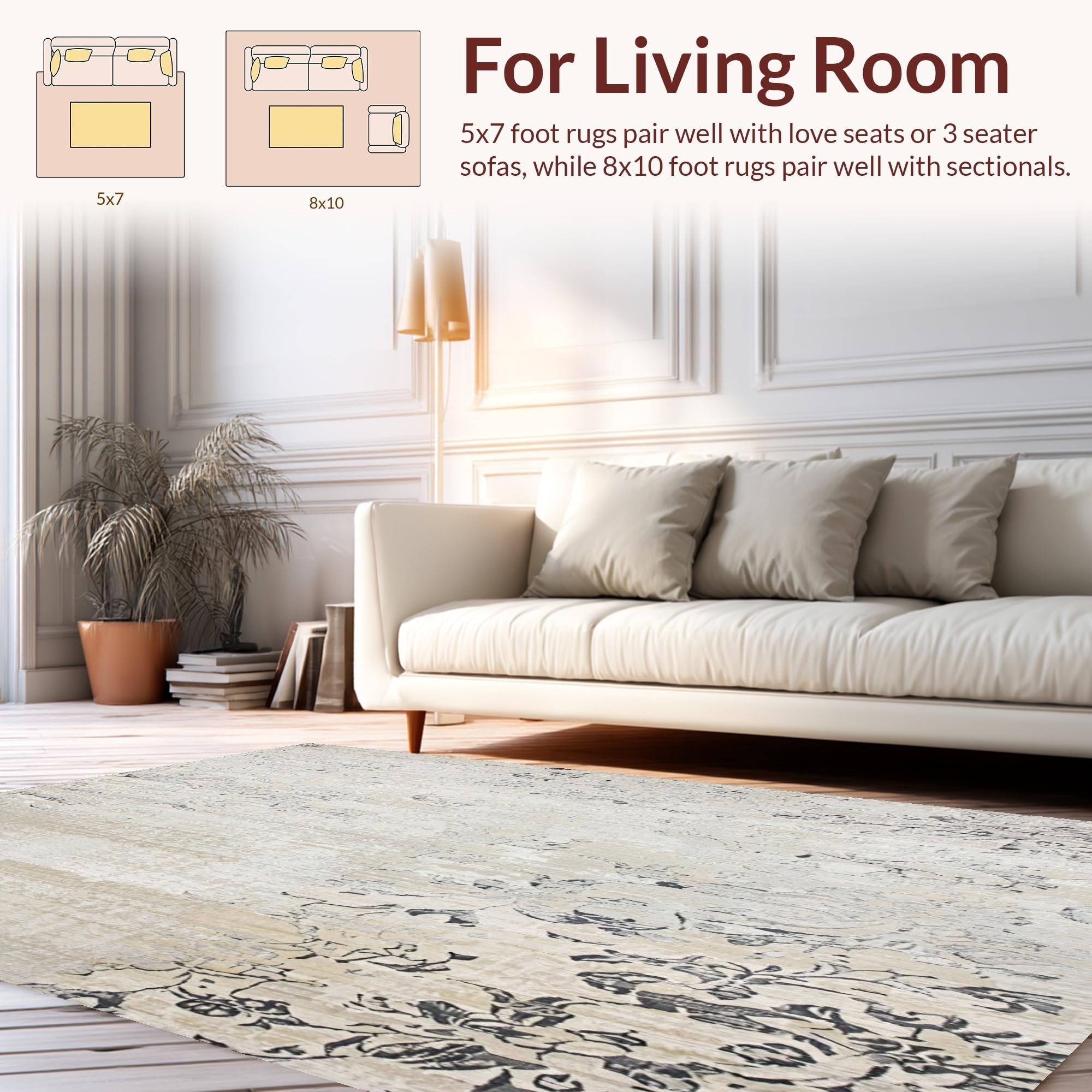 Ultra Soft Area Rug, Non Slip, Stain Resistant, Washable Area Rugs for Living Room, Bedroom, Rustic Chic Area Beige and Gray Floral Patchwork Design Modern Ho(Beige) Overview: