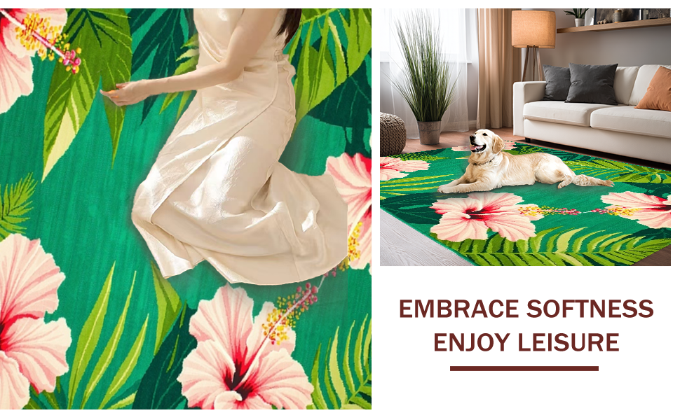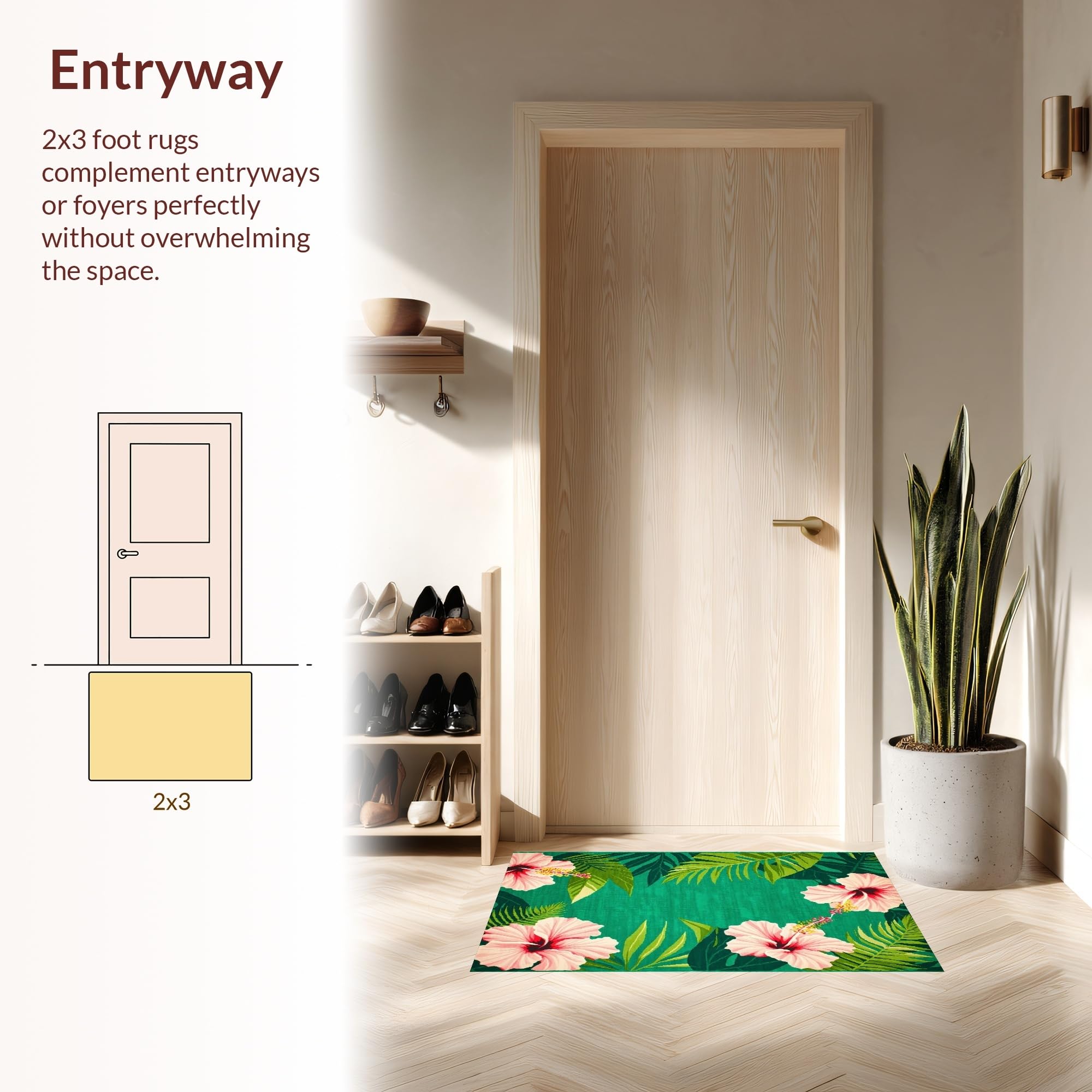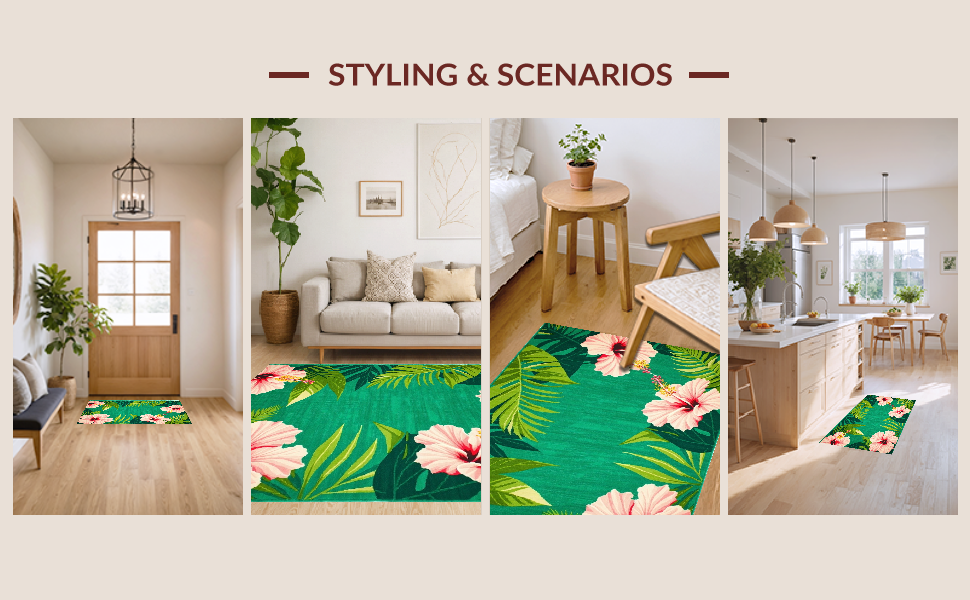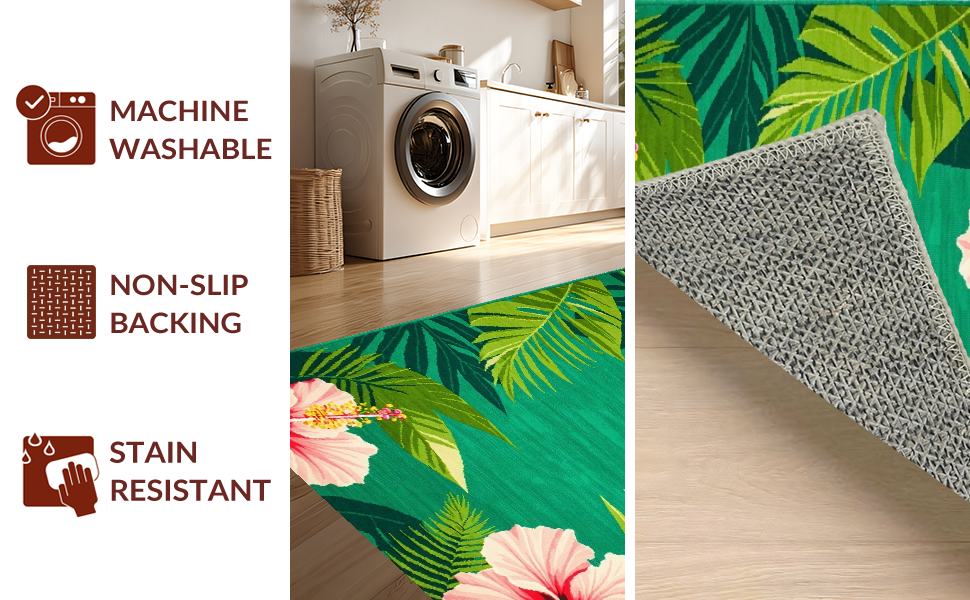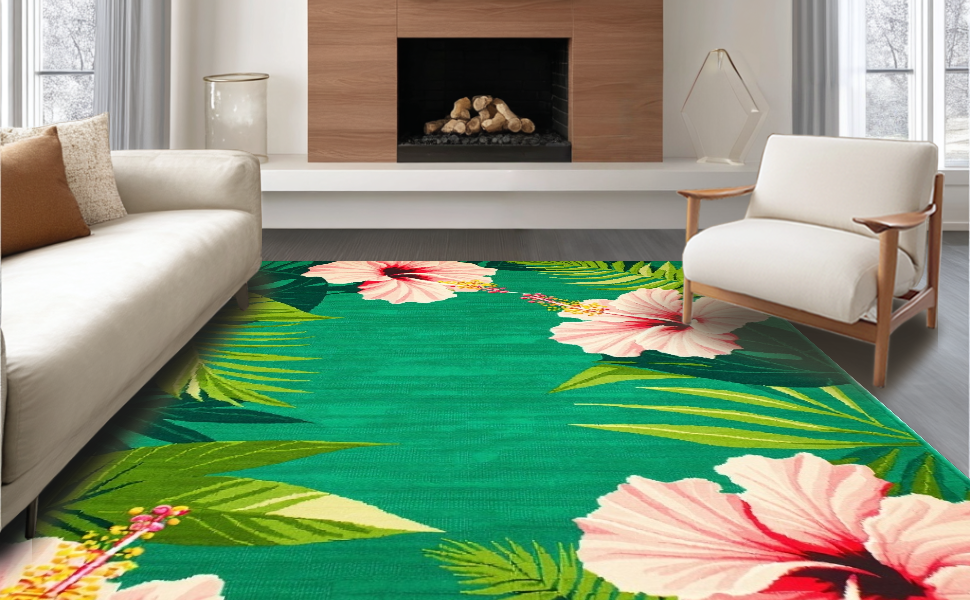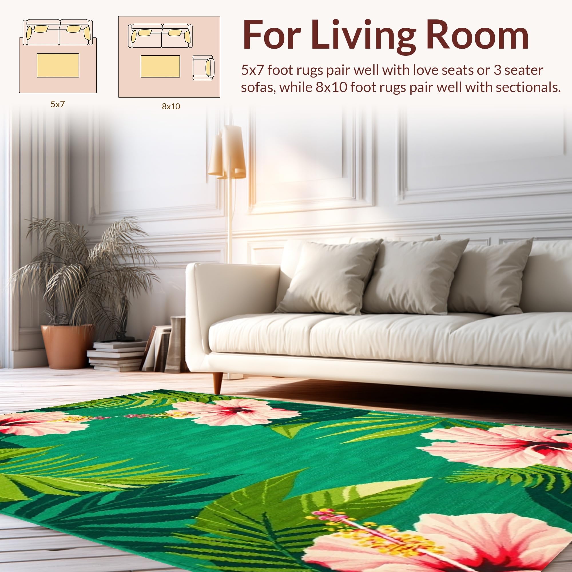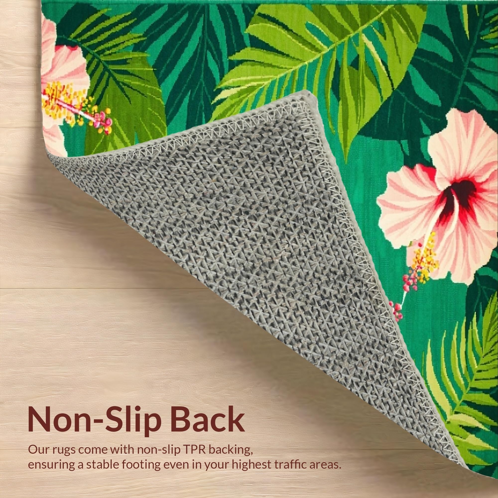 Ultra Soft Area Rug, Non Slip, Stain Resistant, Washable Area Rugs for Living Room, Bedroom, Rustic Colorful Botanical Design(Green) Overview: