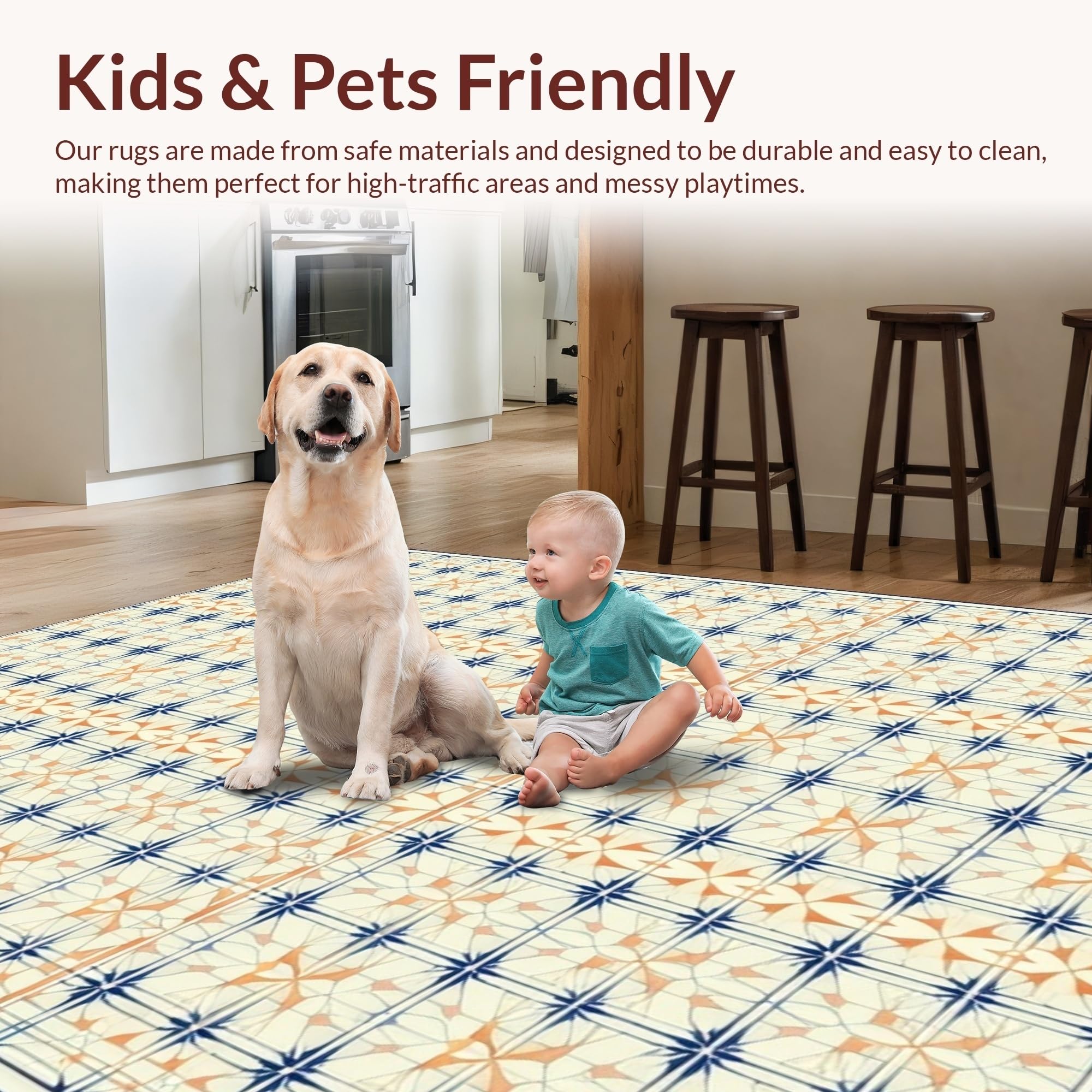 Ultra Soft Area Rug, Non Slip, Stain Resistant, Washable Area Rugs for Living Room, Bedroom, Rustic Colorful Cosmic Geometry(Beige) Overview: