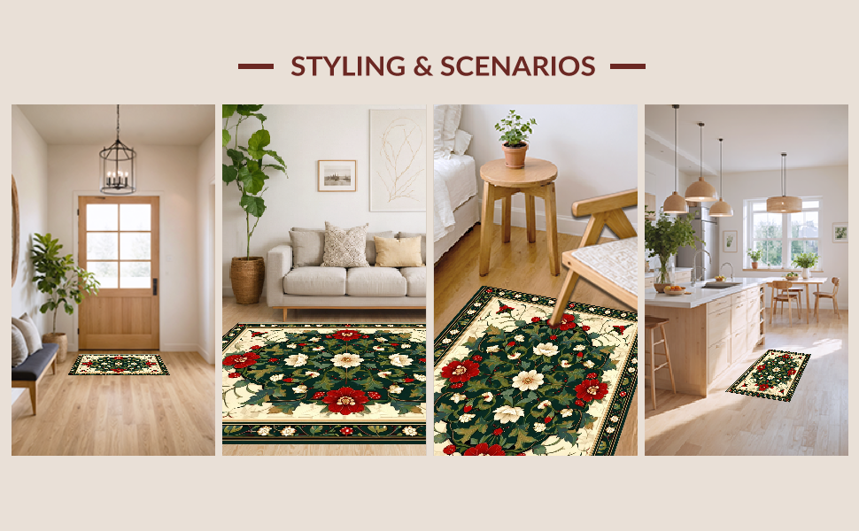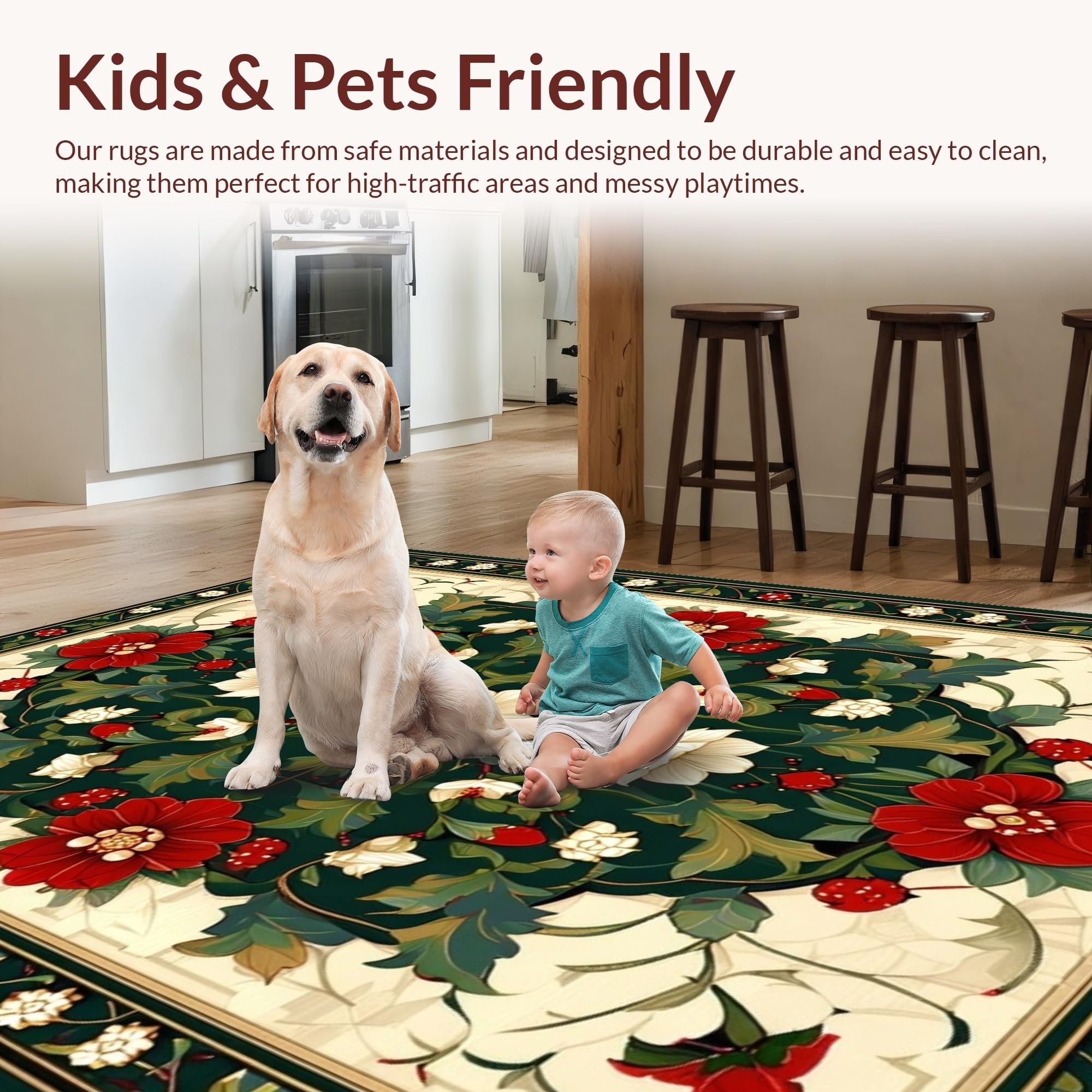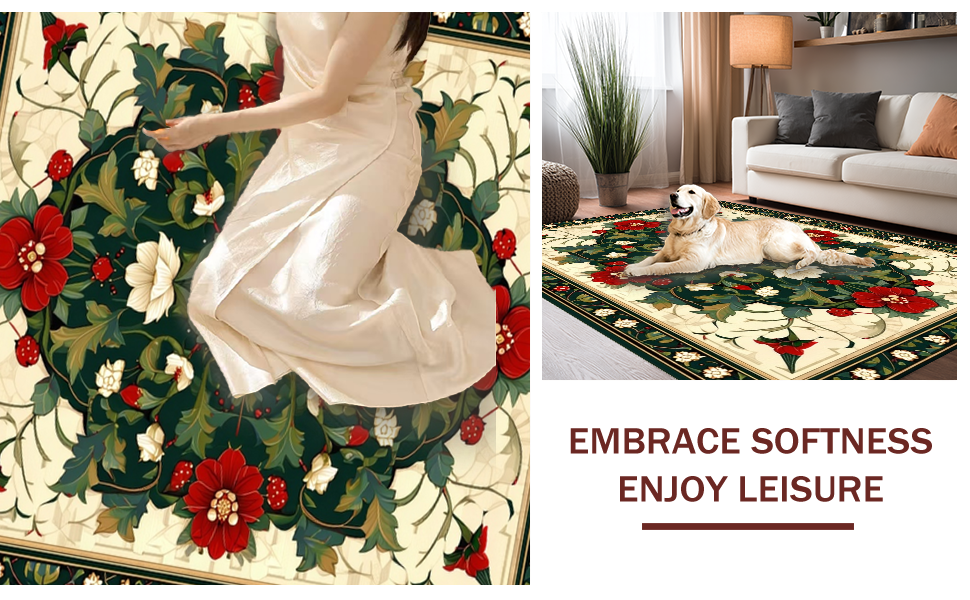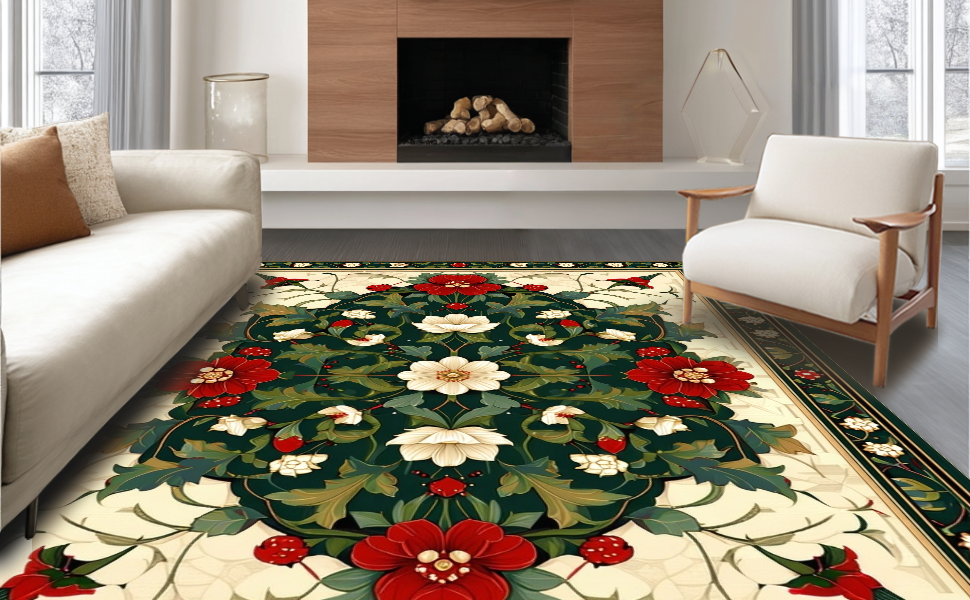 Ultra Soft Area Rug, Non Slip, Stain Resistant, Washable Area Rugs for Living Room, Bedroom, Rustic Compton Inspired Pattern(Red) Overview: