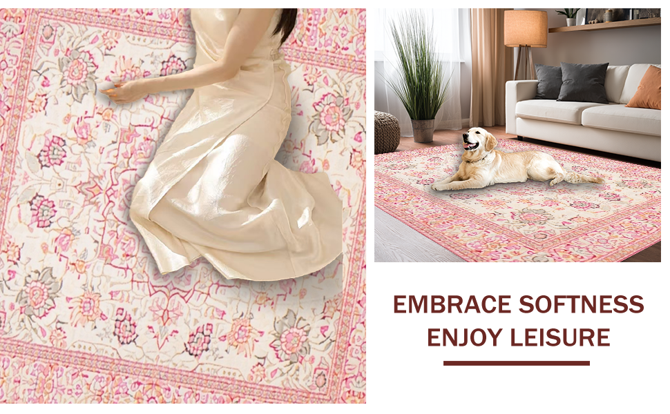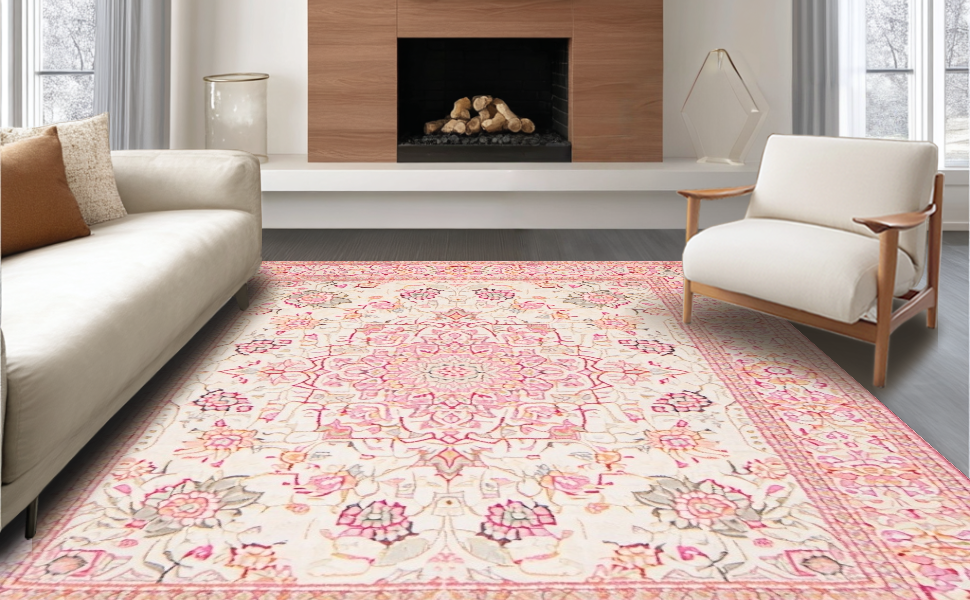 Ultra Soft Area Rug, Non Slip, Stain Resistant, Washable Area Rugs for Living Room, Bedroom, Rustic Cottage Inspired Pattern(Ivory) Overview: