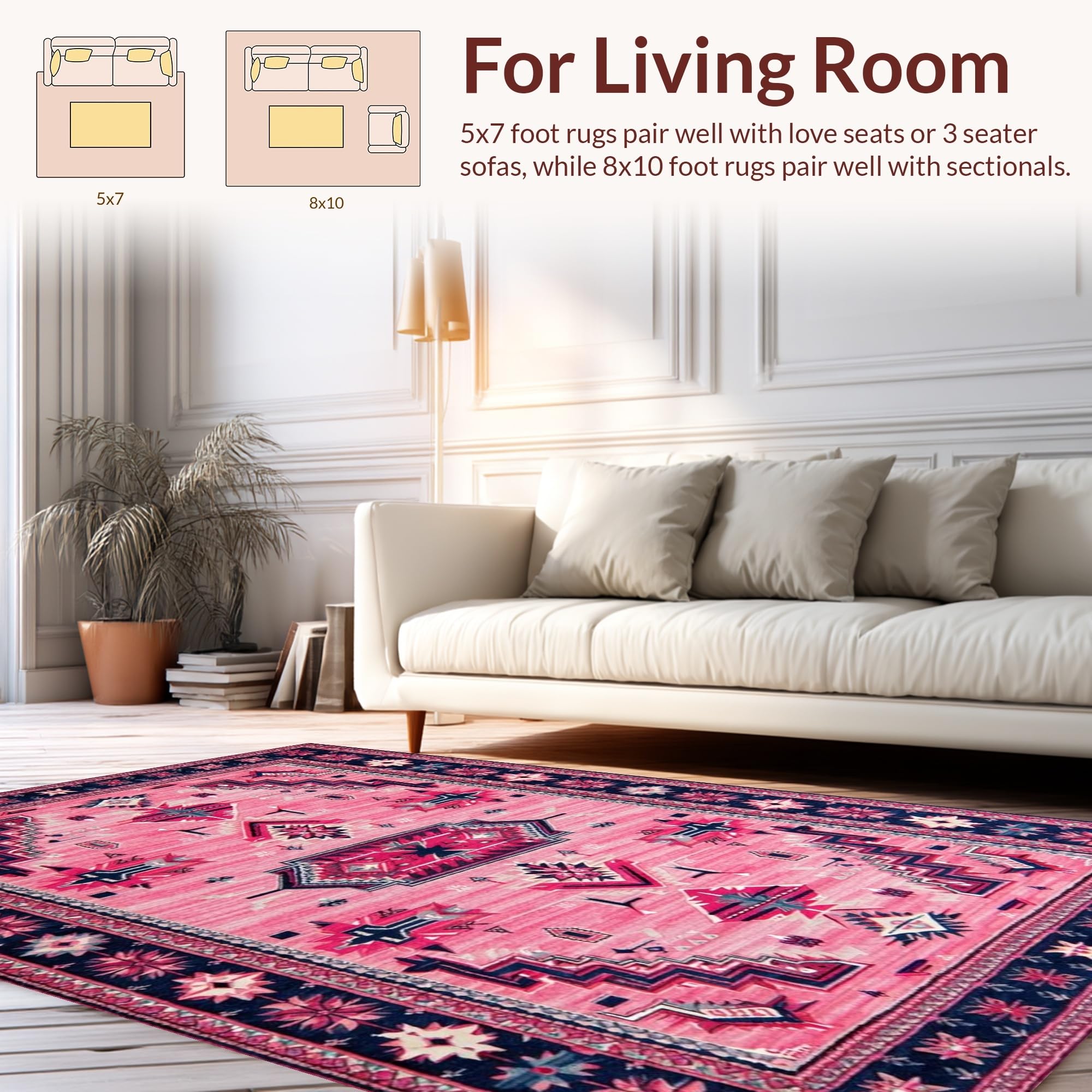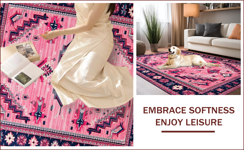 Ultra Soft Area Rug, Non Slip, Stain Resistant, Washable Area Rugs for Living Room, Bedroom, Rustic Cowgirl Aesthetic Vibes(Pink) Overview: