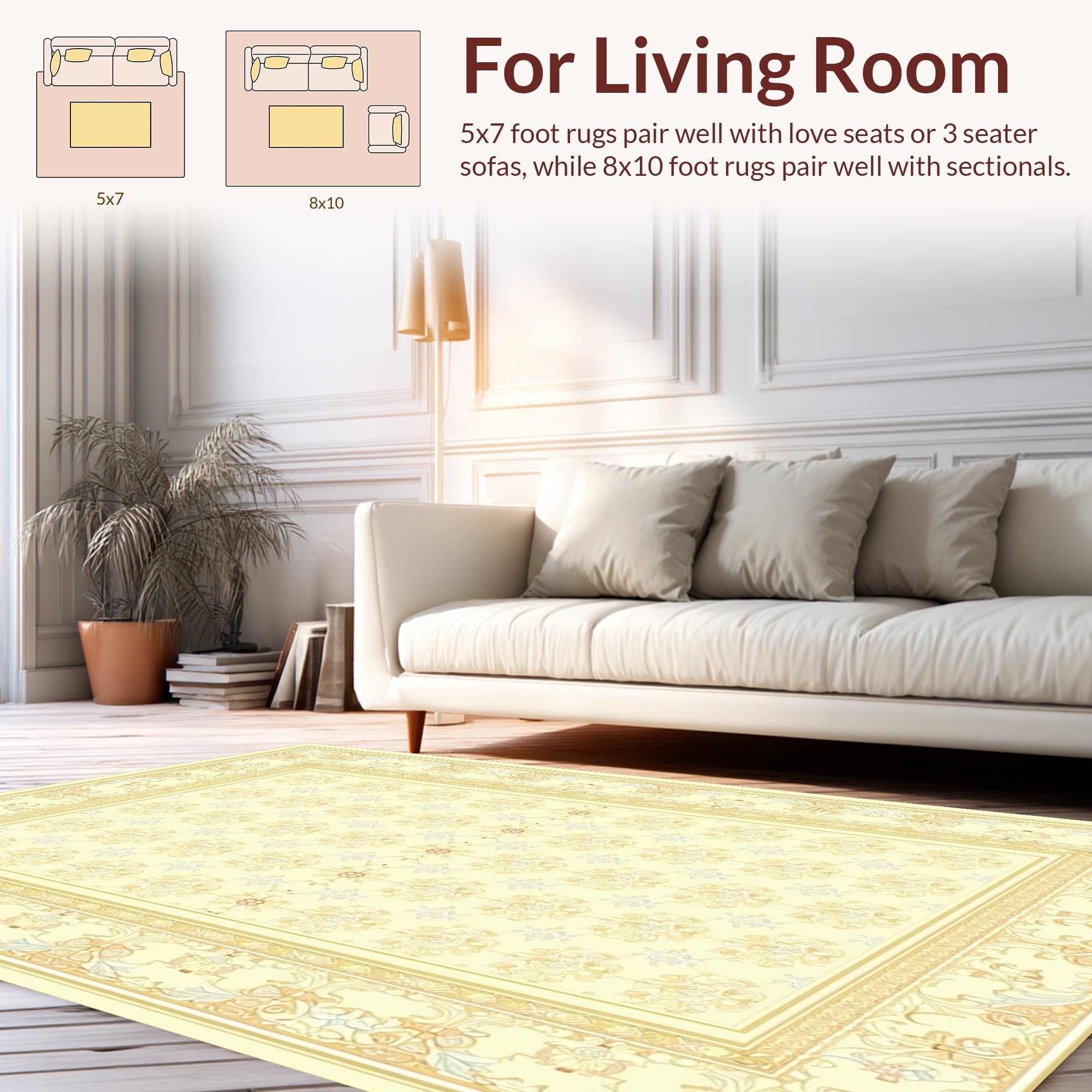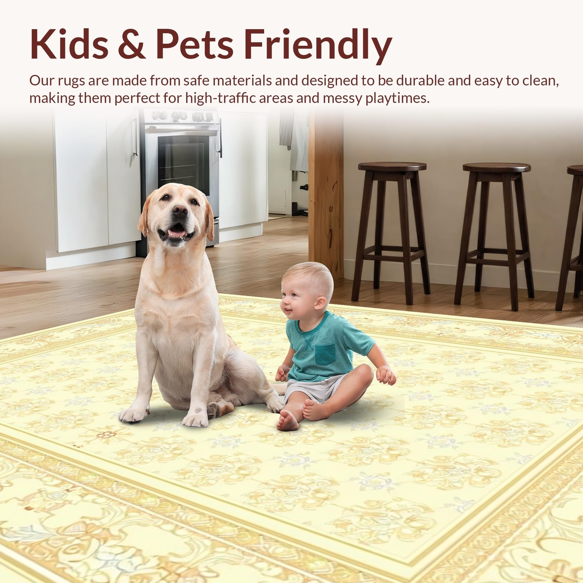 Ultra Soft Area Rug, Non Slip, Stain Resistant, Washable Area Rugs for Living Room, Bedroom, Rustic Creamy Twisted Flourish(Beige) Overview: