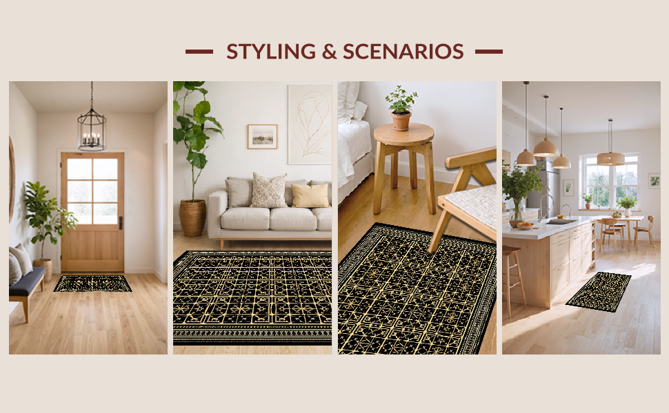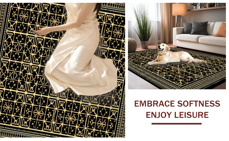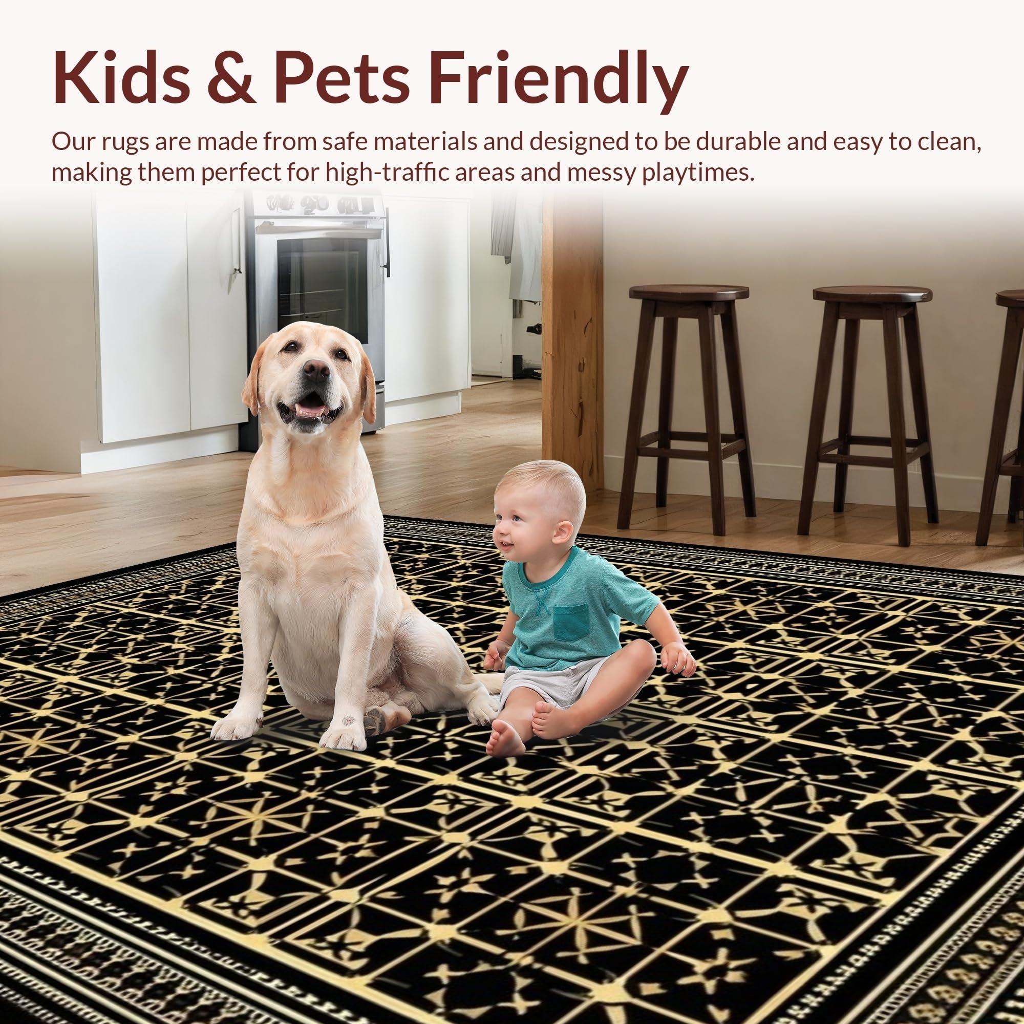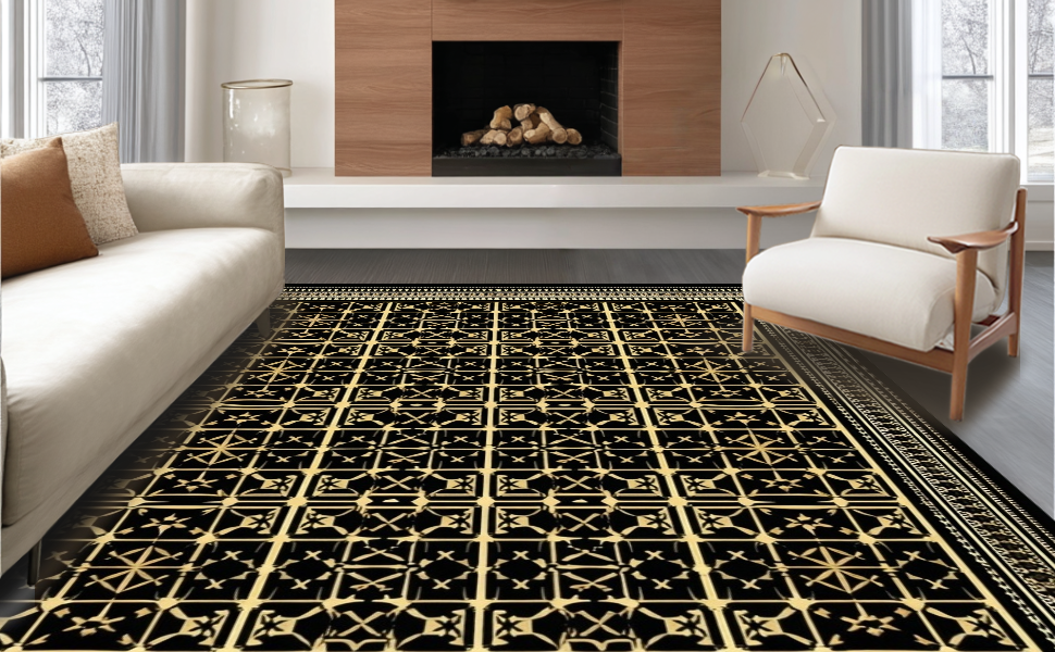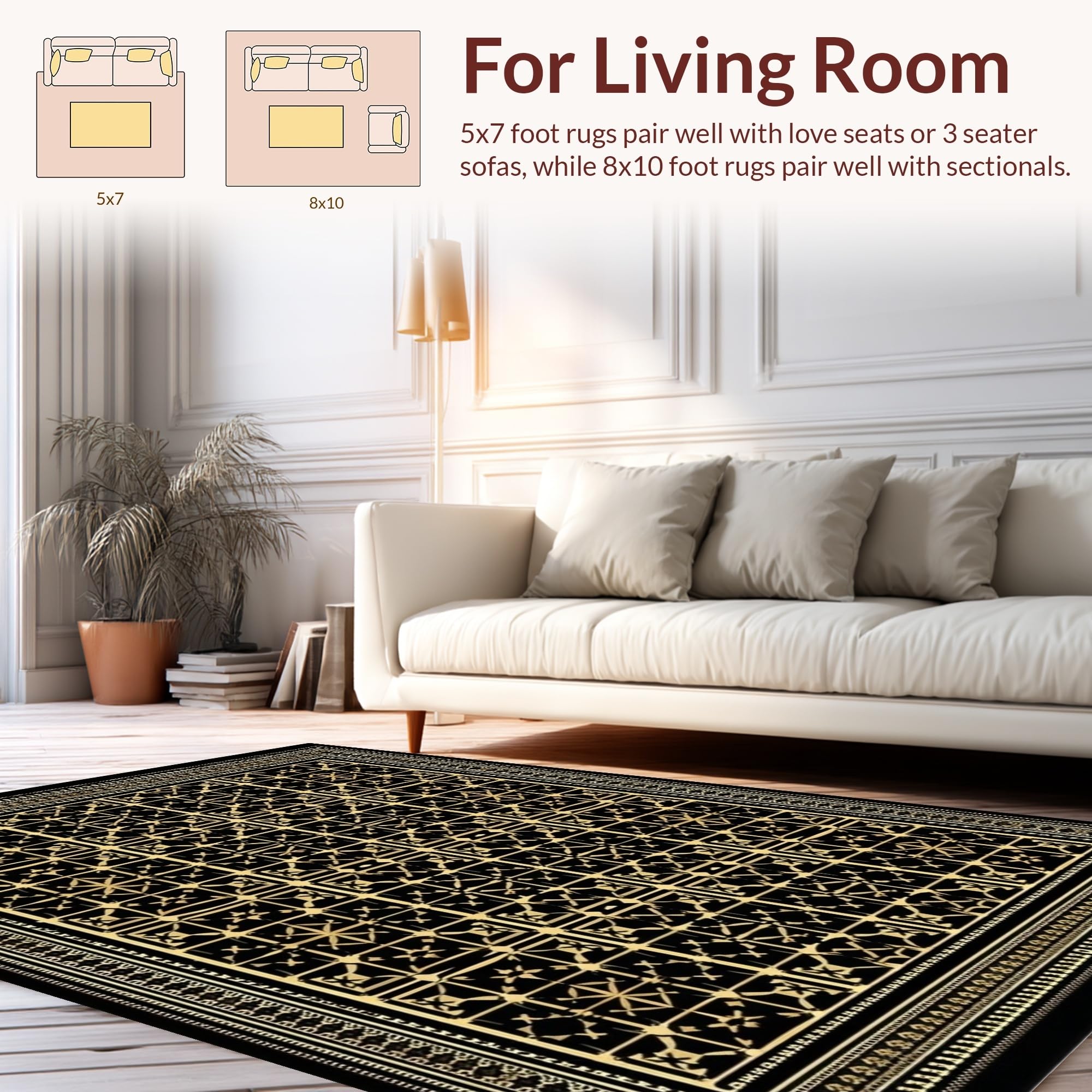 Ultra Soft Area Rug, Non Slip, Stain Resistant, Washable Area Rugs for Living Room, Bedroom, Rustic Diamond Trellis in Dark Palette(Black) Overview: