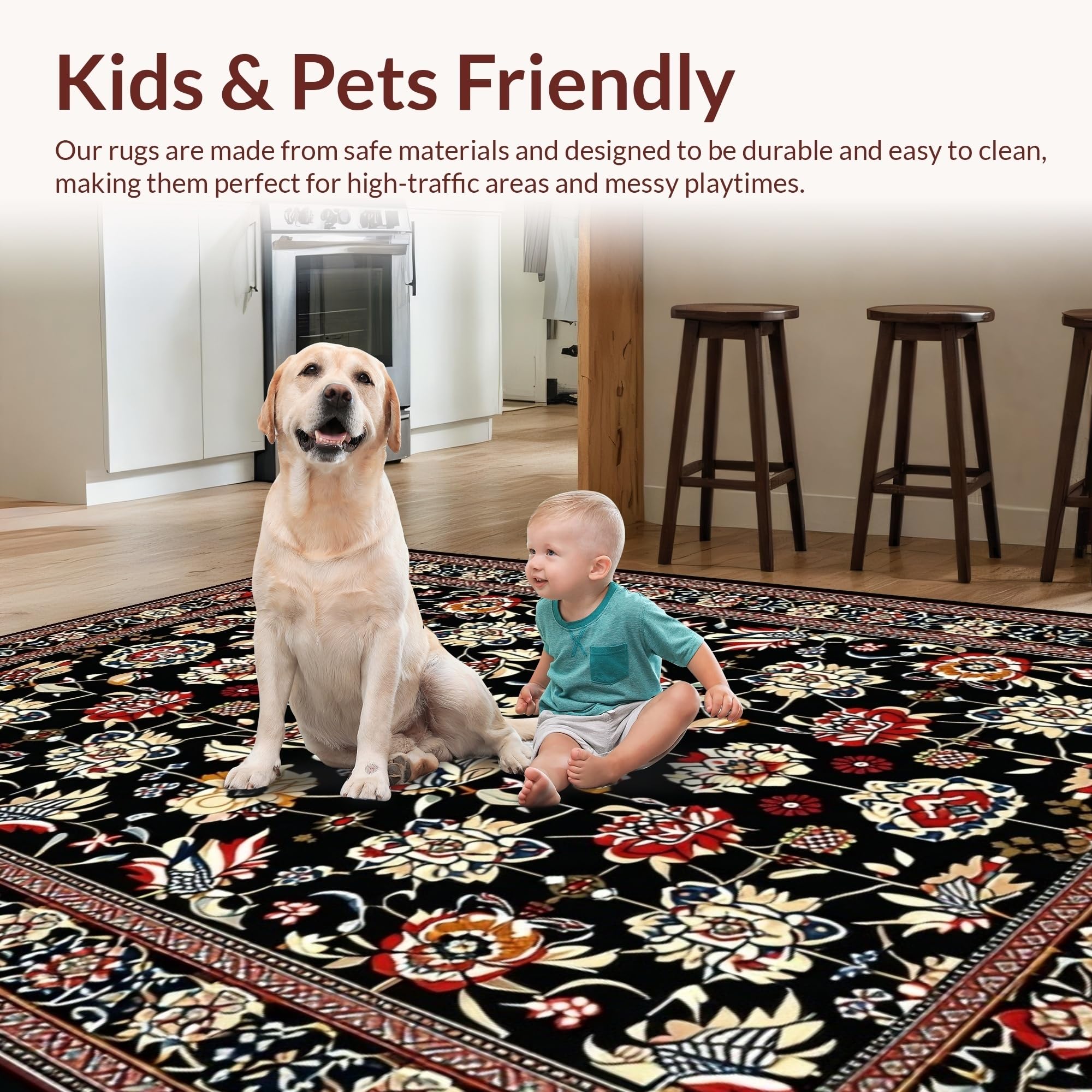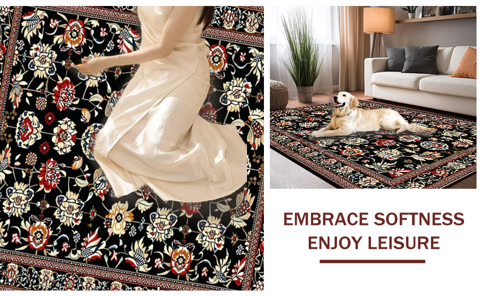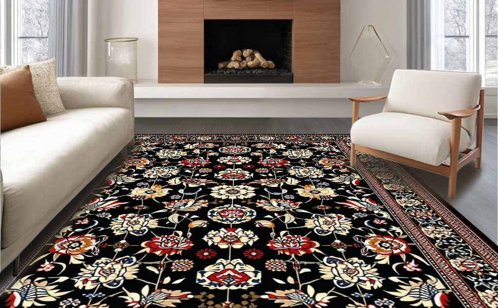 Ultra Soft Area Rug, Non Slip, Stain Resistant, Washable Area Rugs for Living Room, Bedroom, Rustic Distressed Geometric Design(Black) Overview: