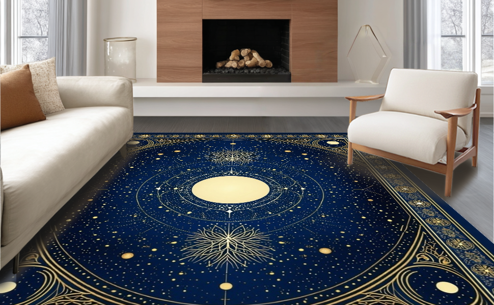 Ultra Soft Area Rug, Non Slip, Stain Resistant, Washable Area Rugs for Living Room, Bedroom, Rustic Dreamy Nightscape Aesthetic(Blue) Overview: