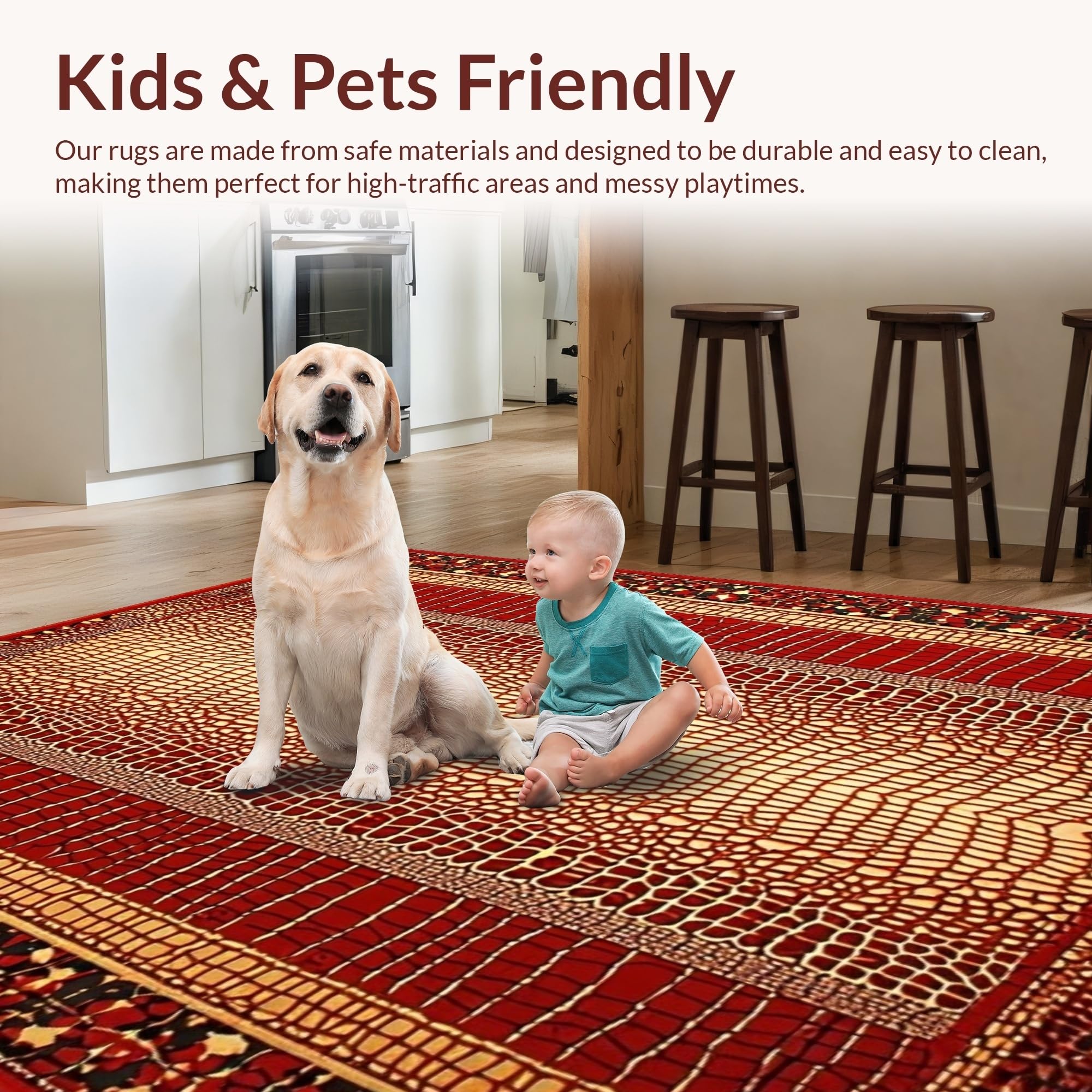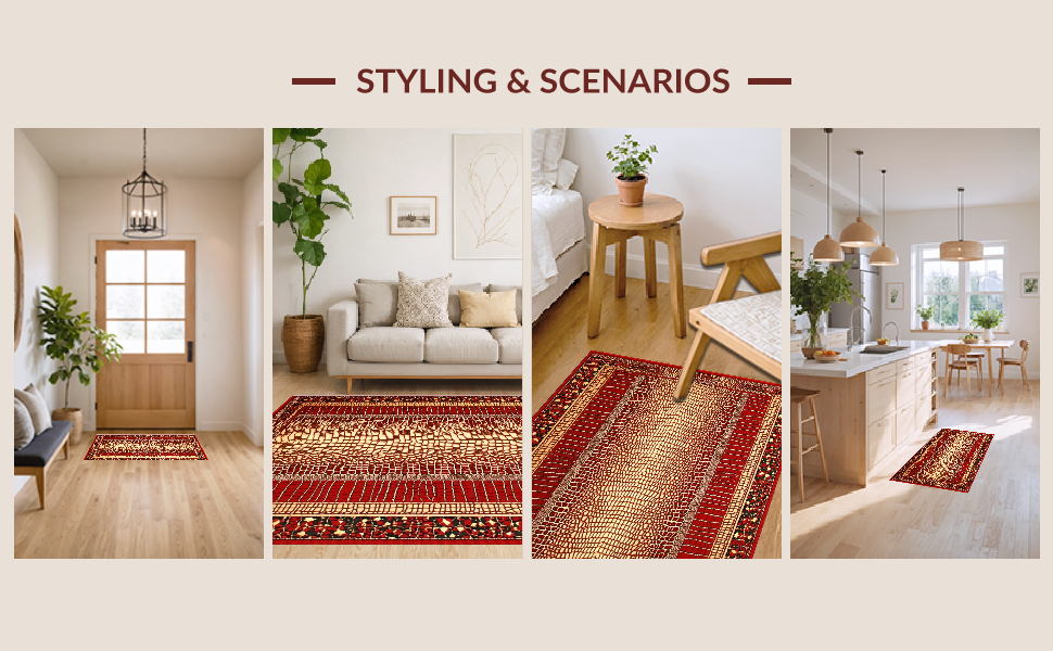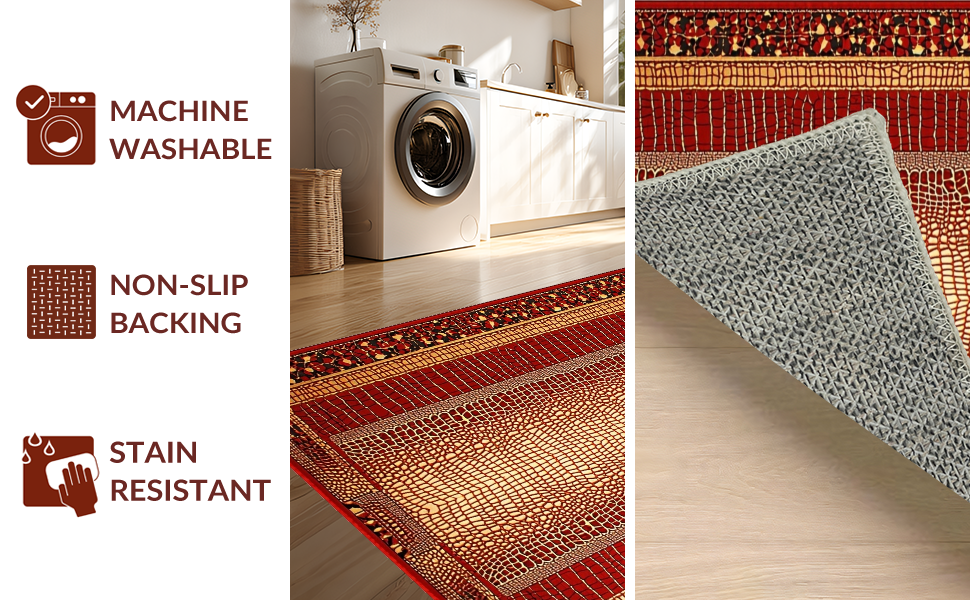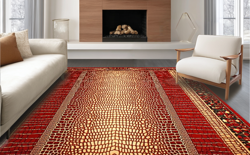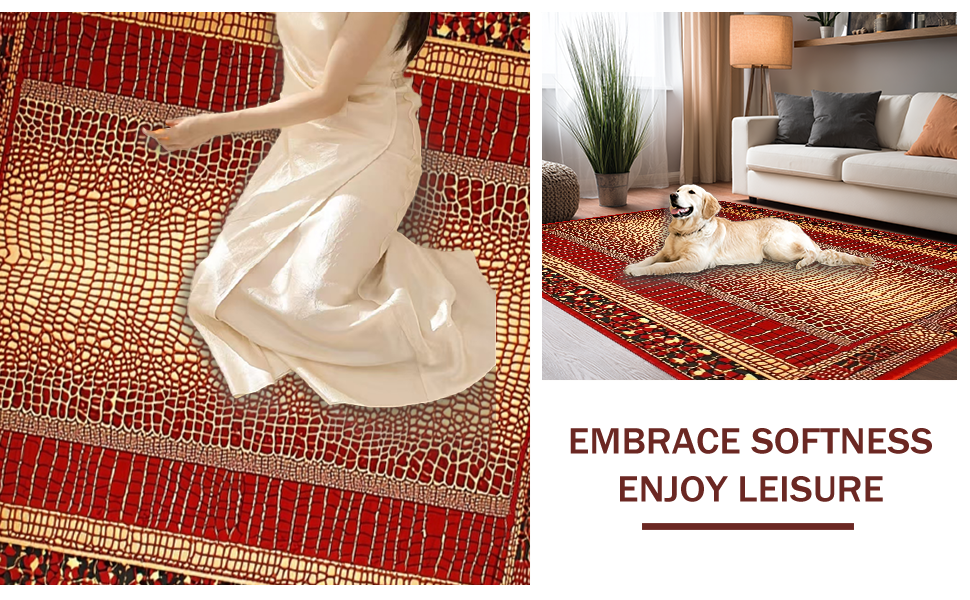 Ultra Soft Area Rug, Non Slip, Stain Resistant, Washable Area Rugs for Living Room, Bedroom, Rustic Earth Tones Textured Appeal(Red) Overview: