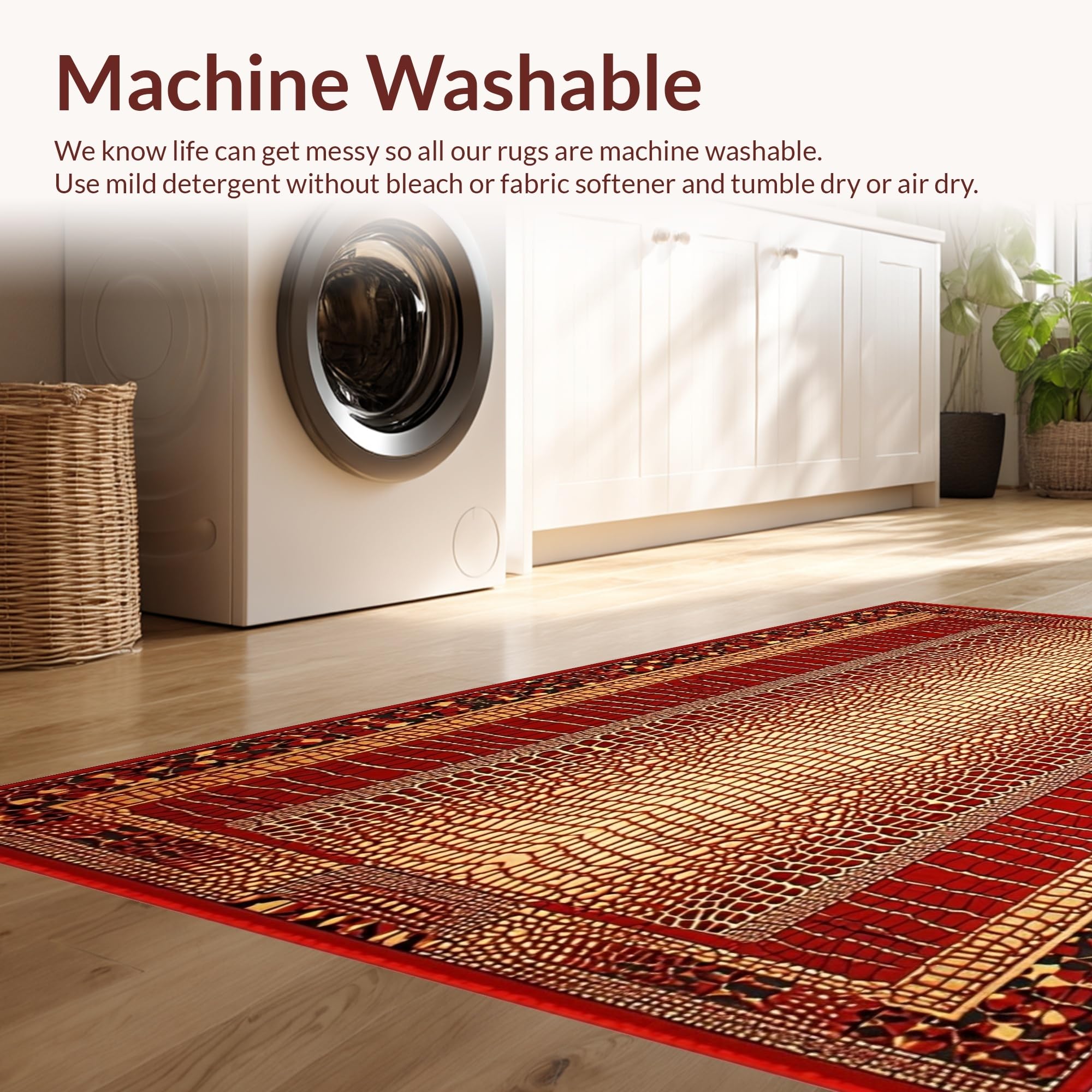 - Machine Washable: Our rugs can be easily thrown in the wash machine.