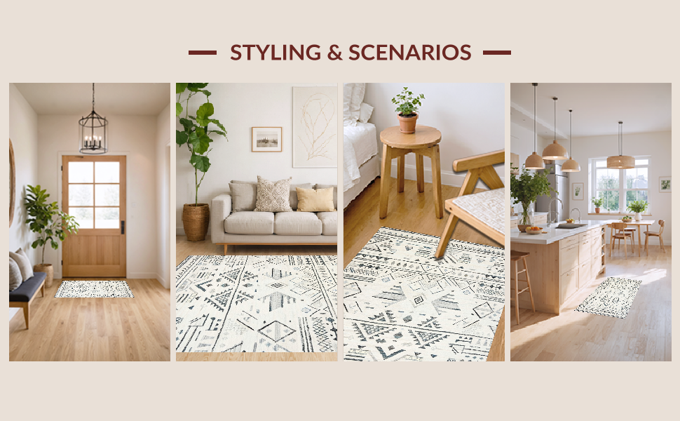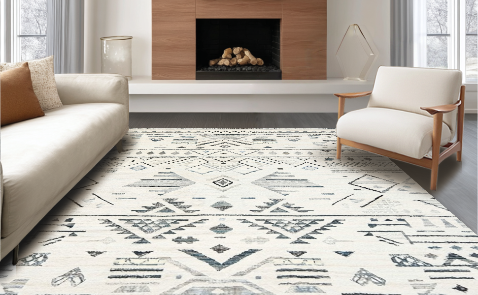 Ultra Soft Area Rug, Non Slip, Stain Resistant, Washable Area Rugs for Living Room, Bedroom, Rustic Earthy Diamond Design(Gray) Overview: