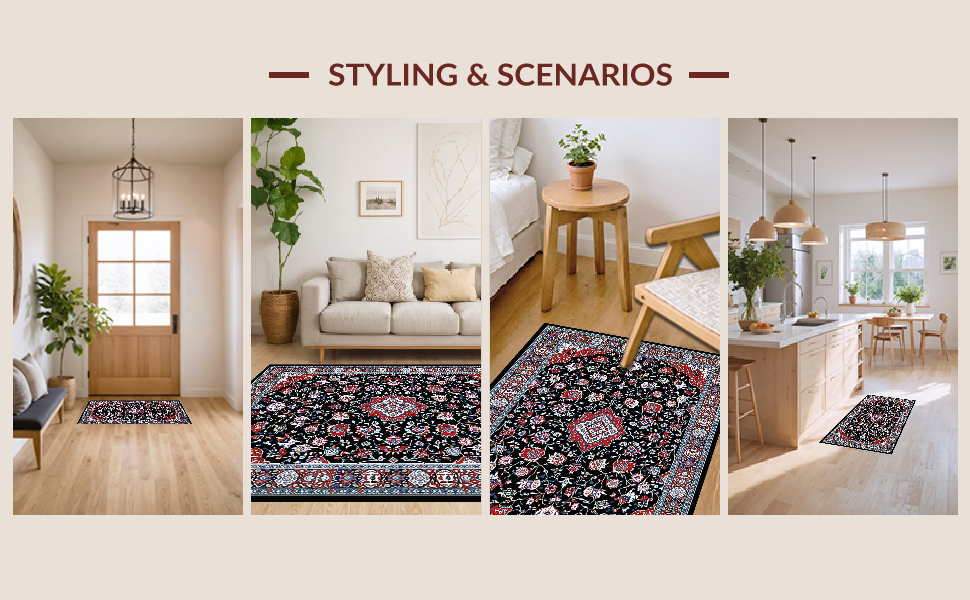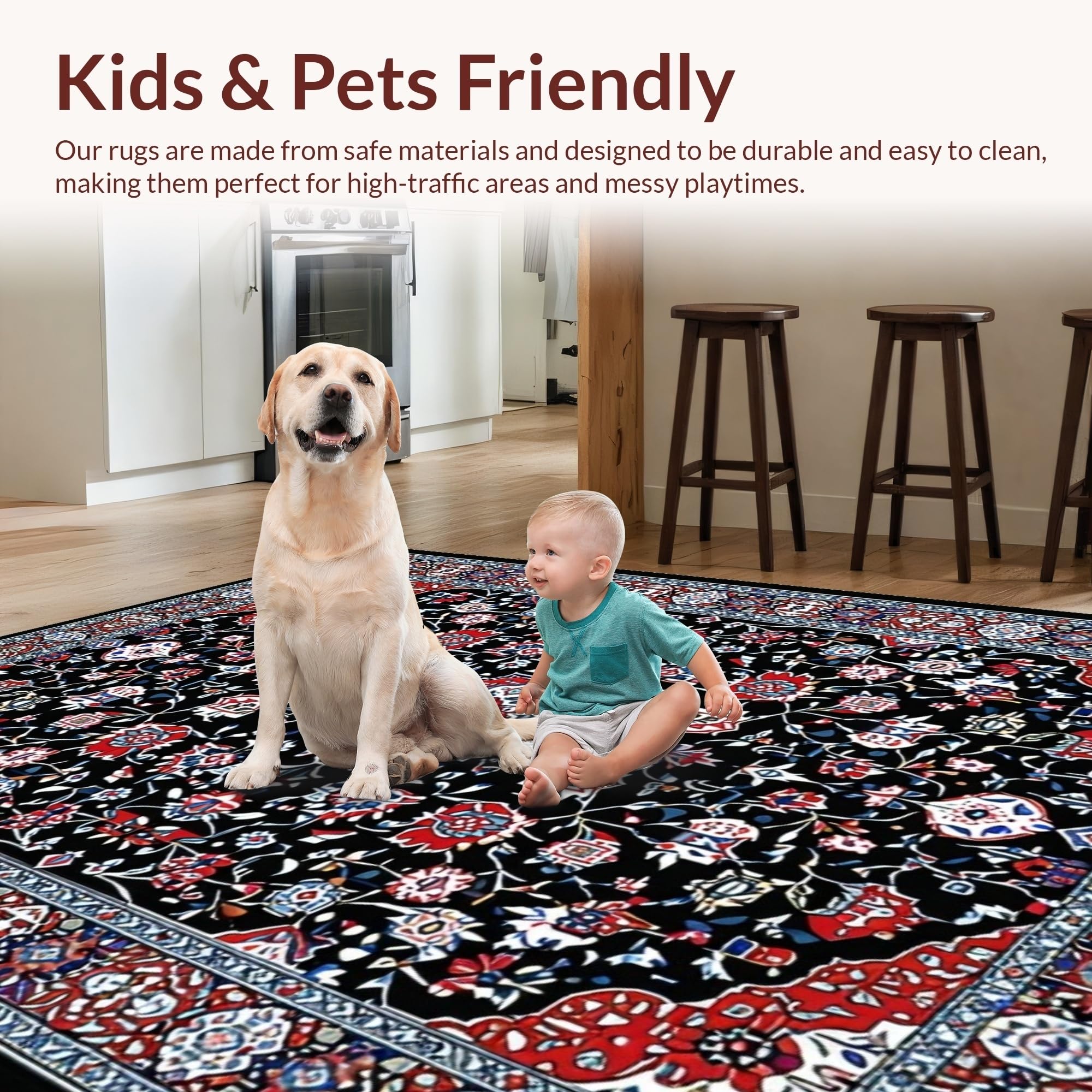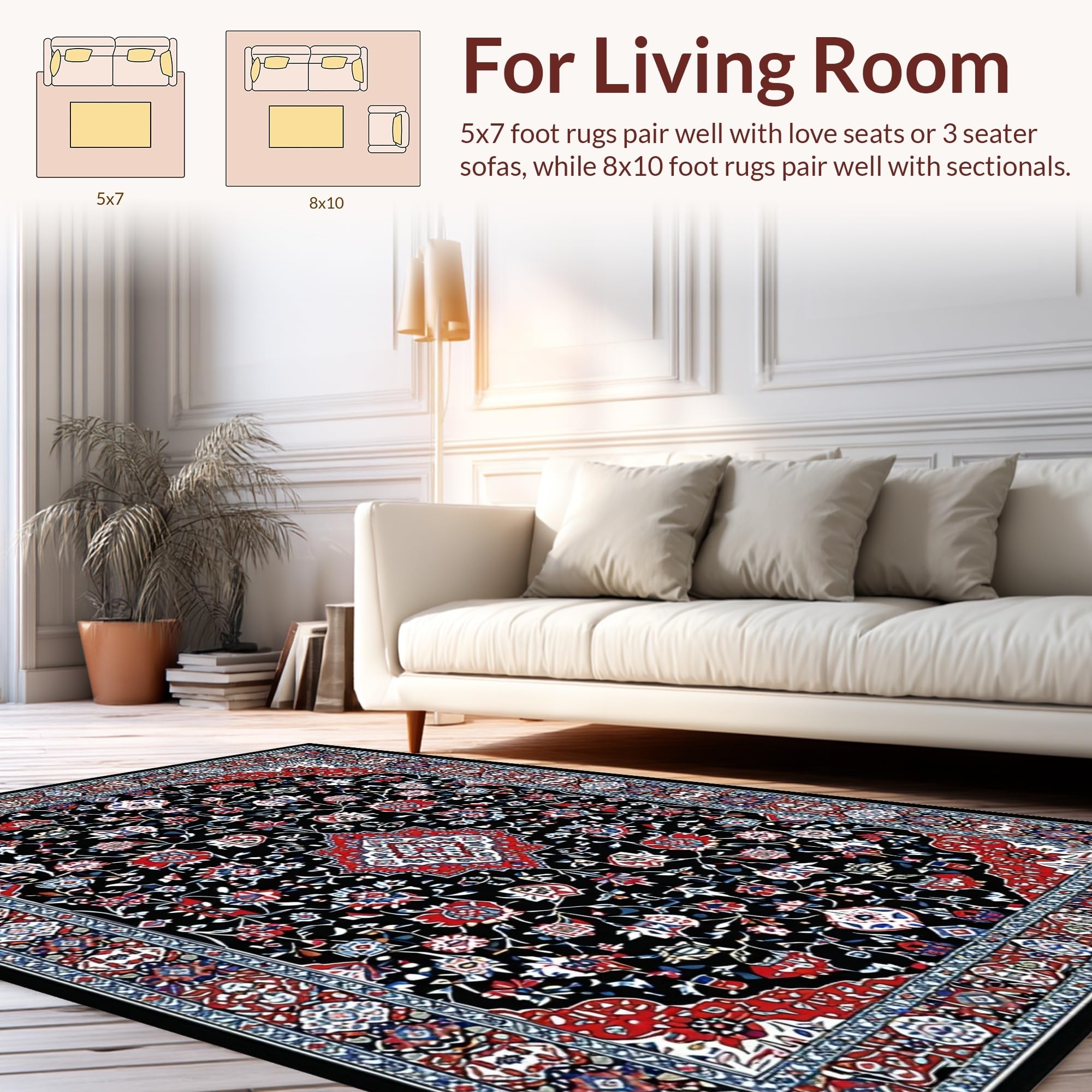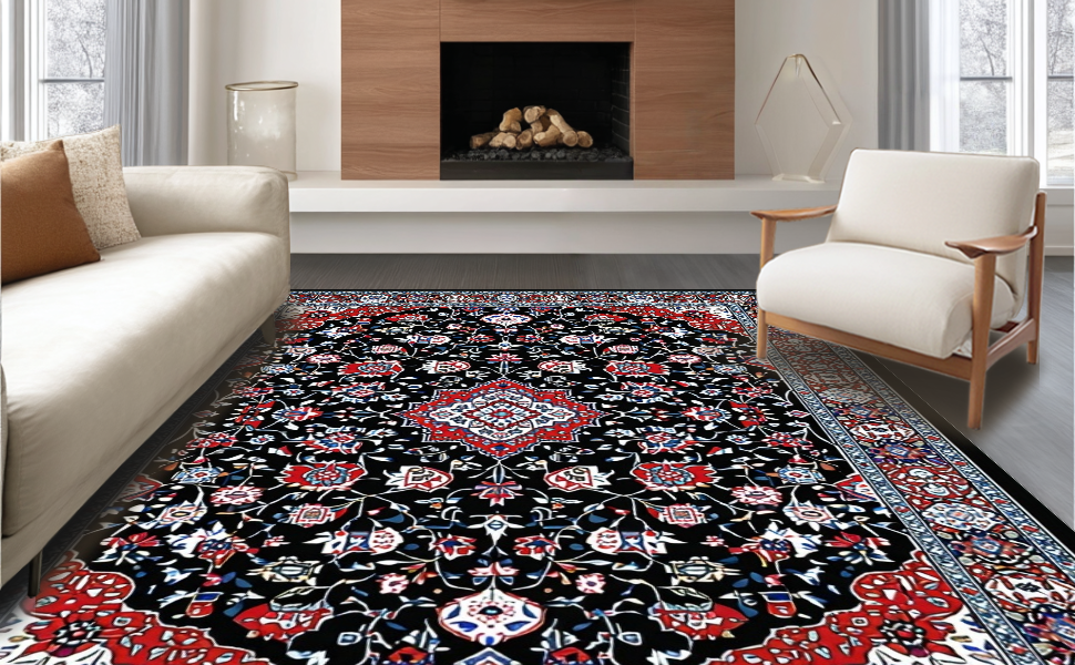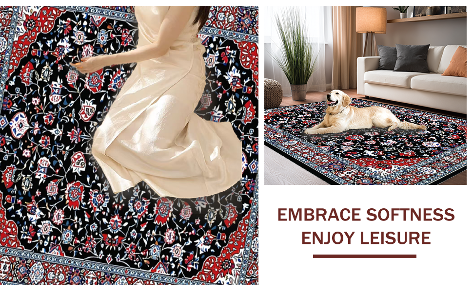Ultra Soft Area Rug, Non Slip, Stain Resistant, Washable Area Rugs for Living Room, Bedroom, Rustic Earthy Petal Arrangement(Black) Overview: