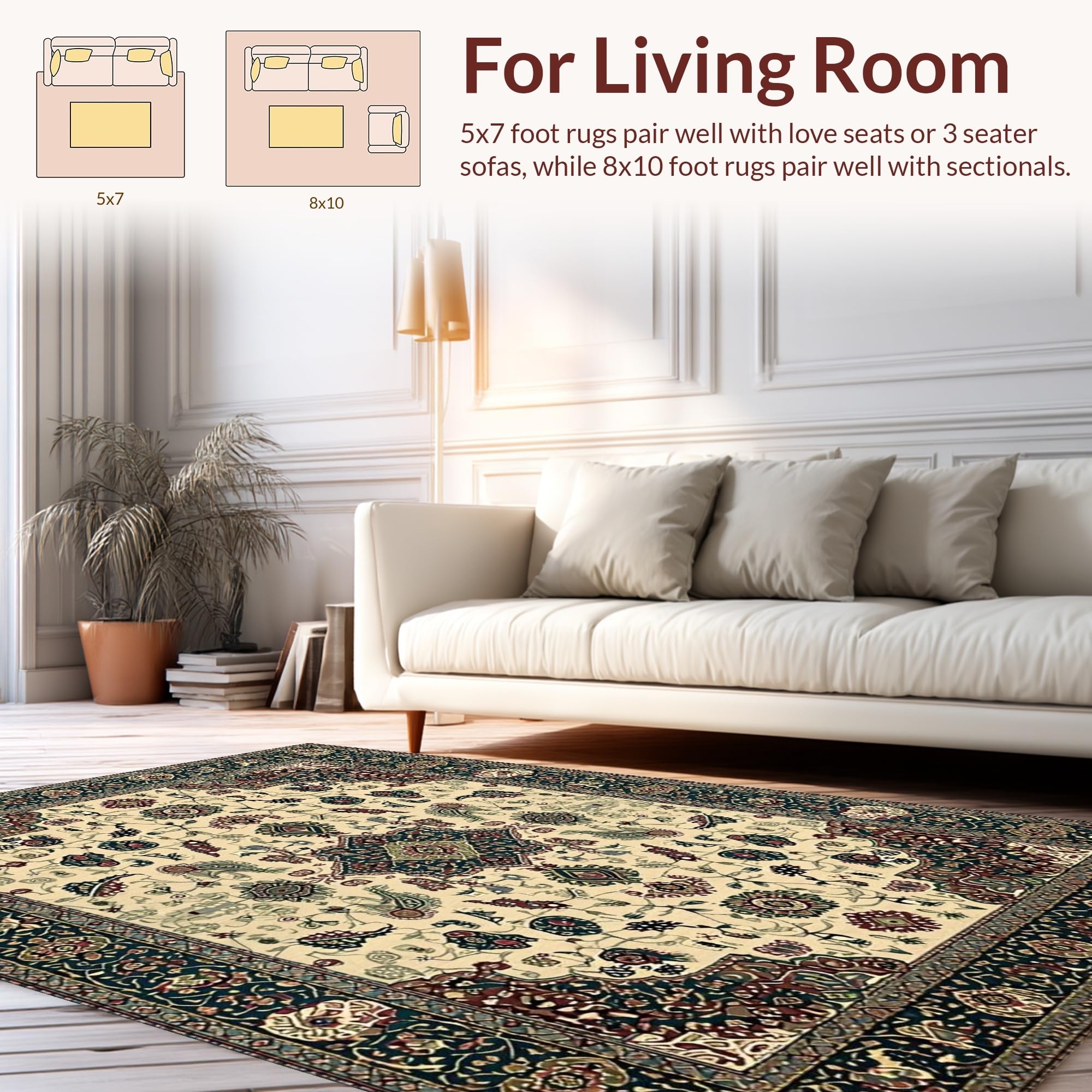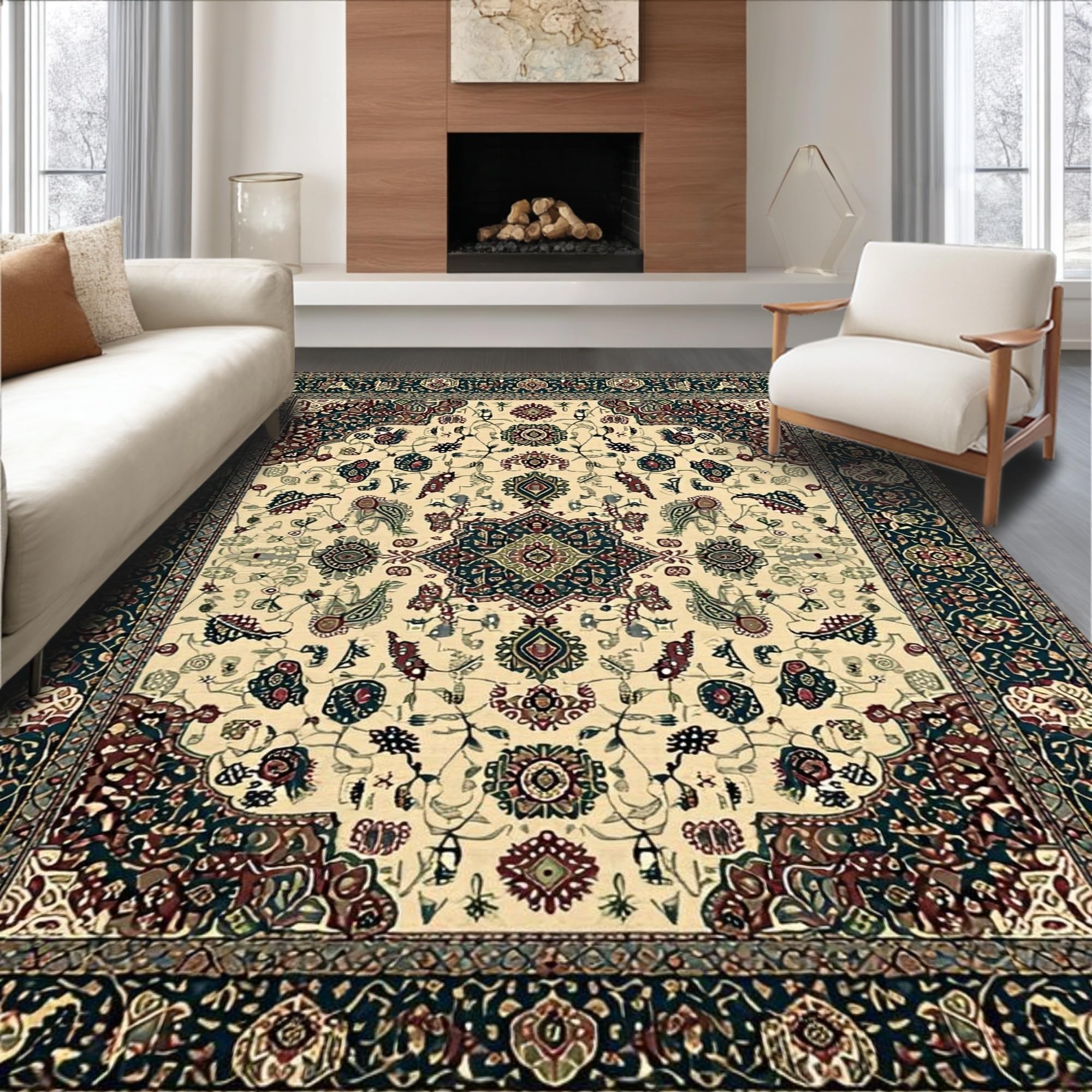 Ultra Soft Area Rug, Non Slip, Stain Resistant, Washable Area Rugs for Living Room, Bedroom, Rustic Earthy Tones Medallion Motif(Beige) Overview: