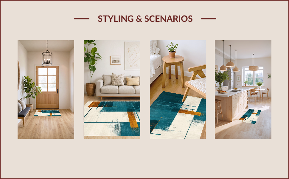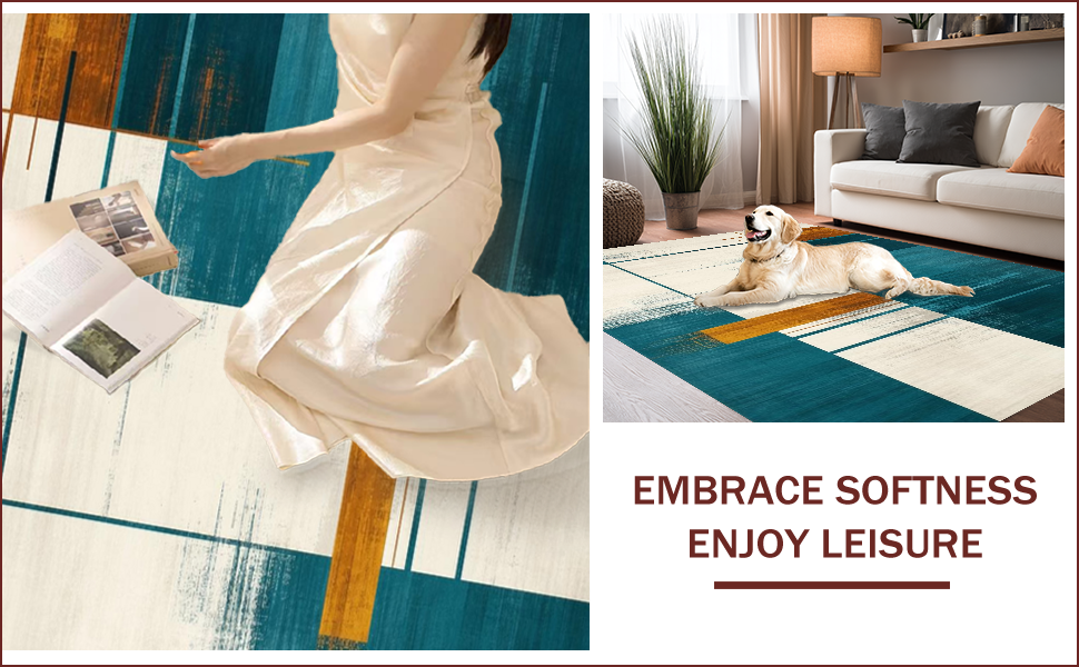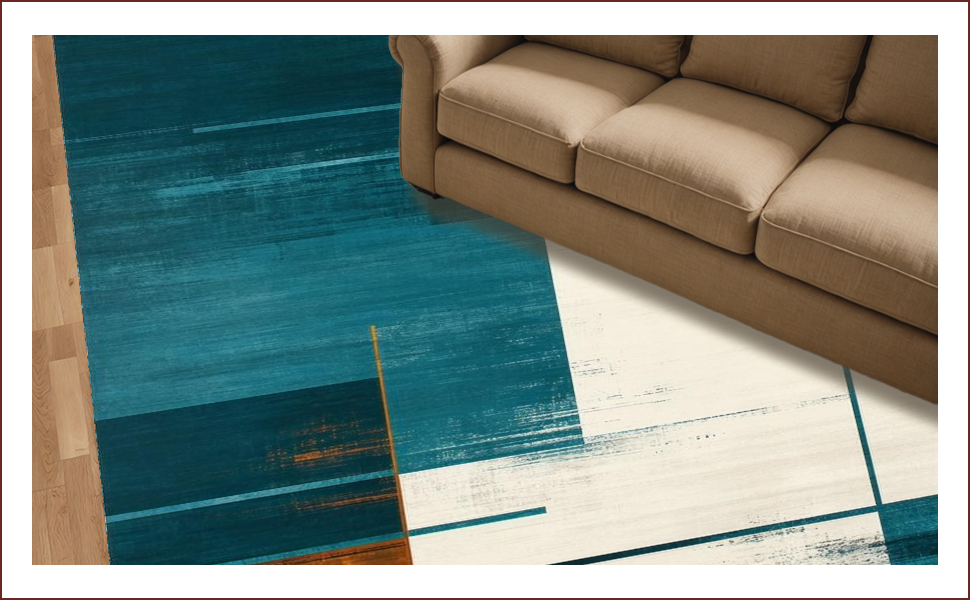Ultra Soft Area Rug, Non Slip, Stain Resistant, Washable Area Rugs for Living Room, Bedroom, Rustic Earthy Tones with Modern Flair(Blue) Overview: