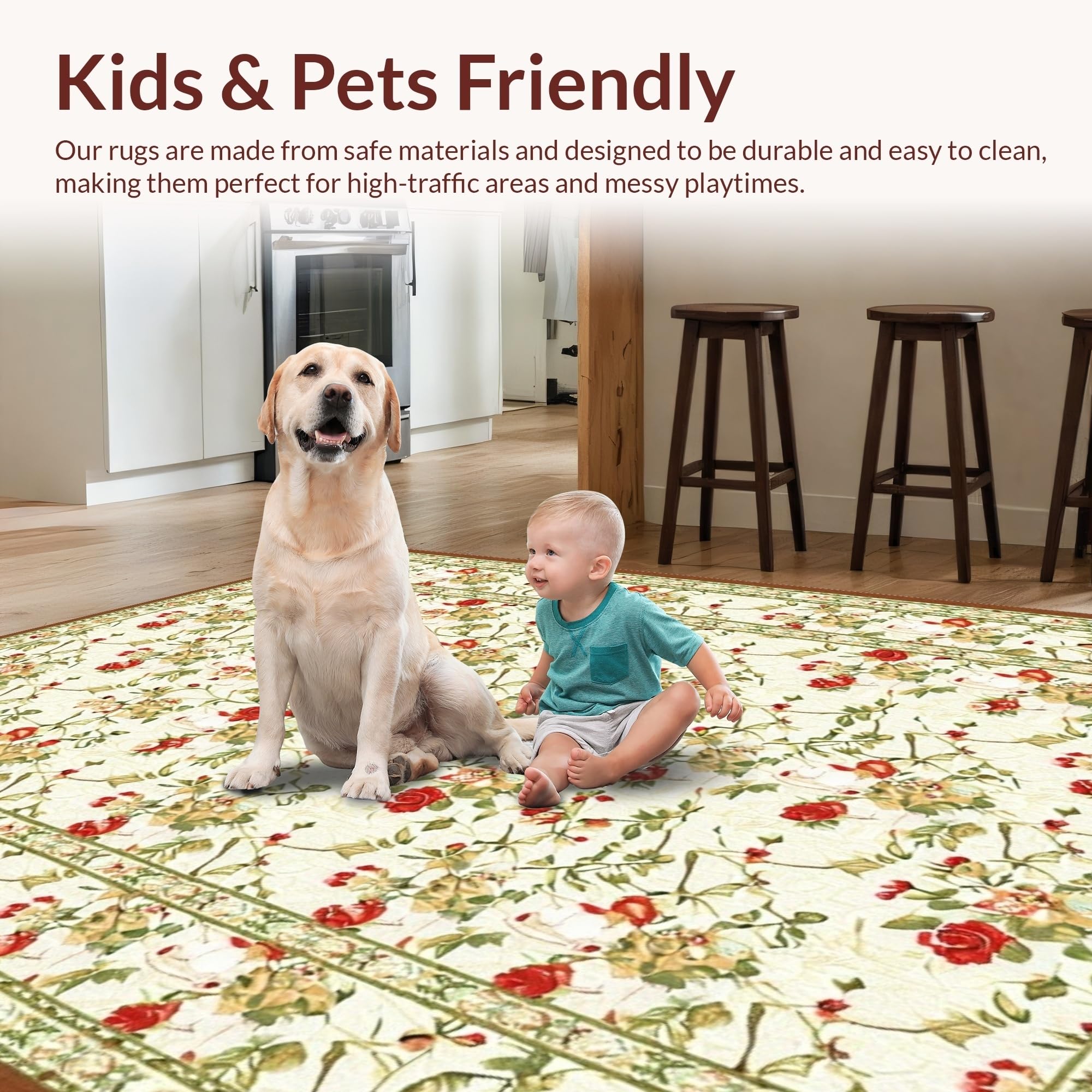 Ultra Soft Area Rug, Non Slip, Stain Resistant, Washable Area Rugs for Living Room, Bedroom, Rustic Easter-Themed Natural Fiber(Beige) Overview: